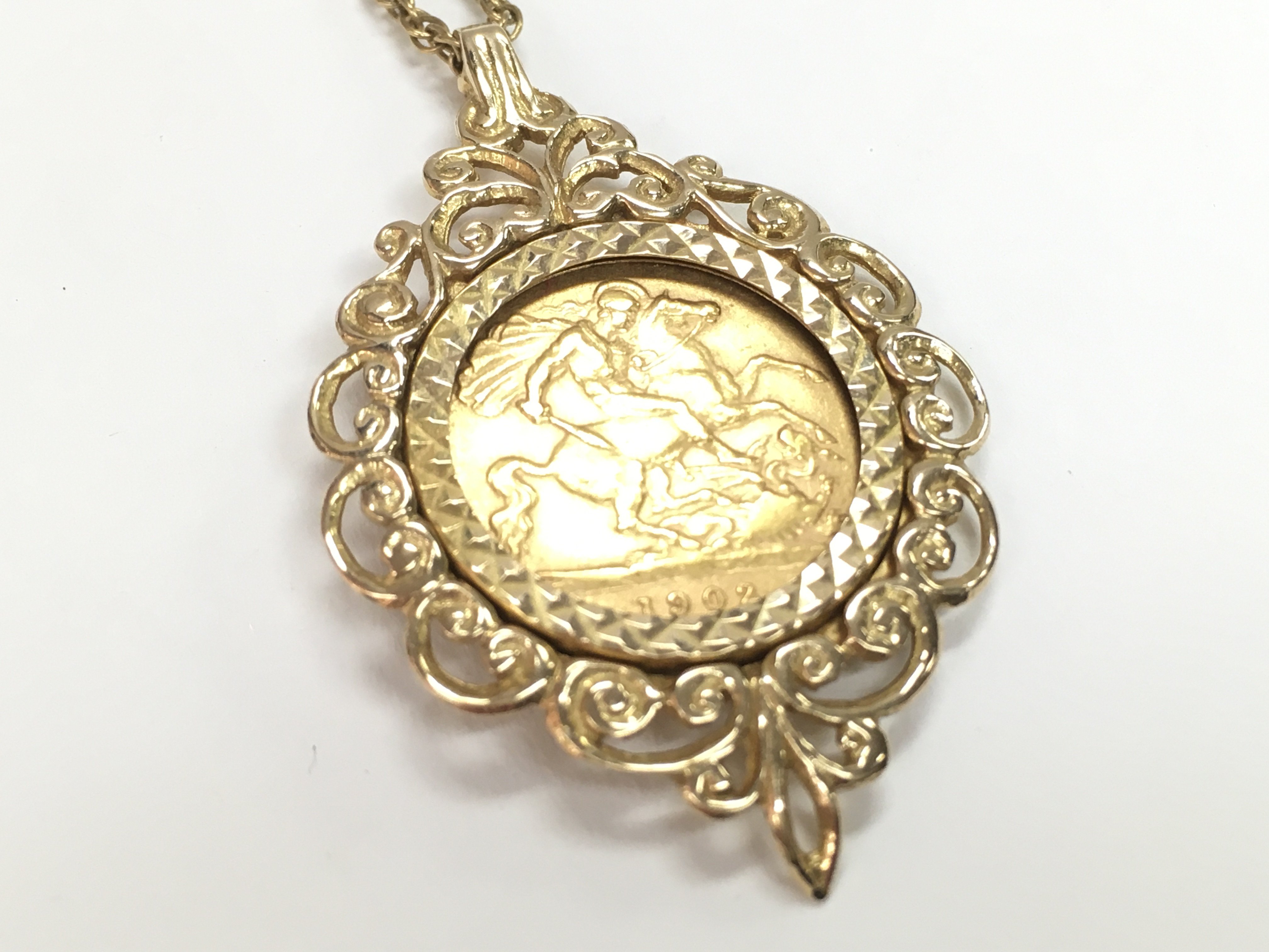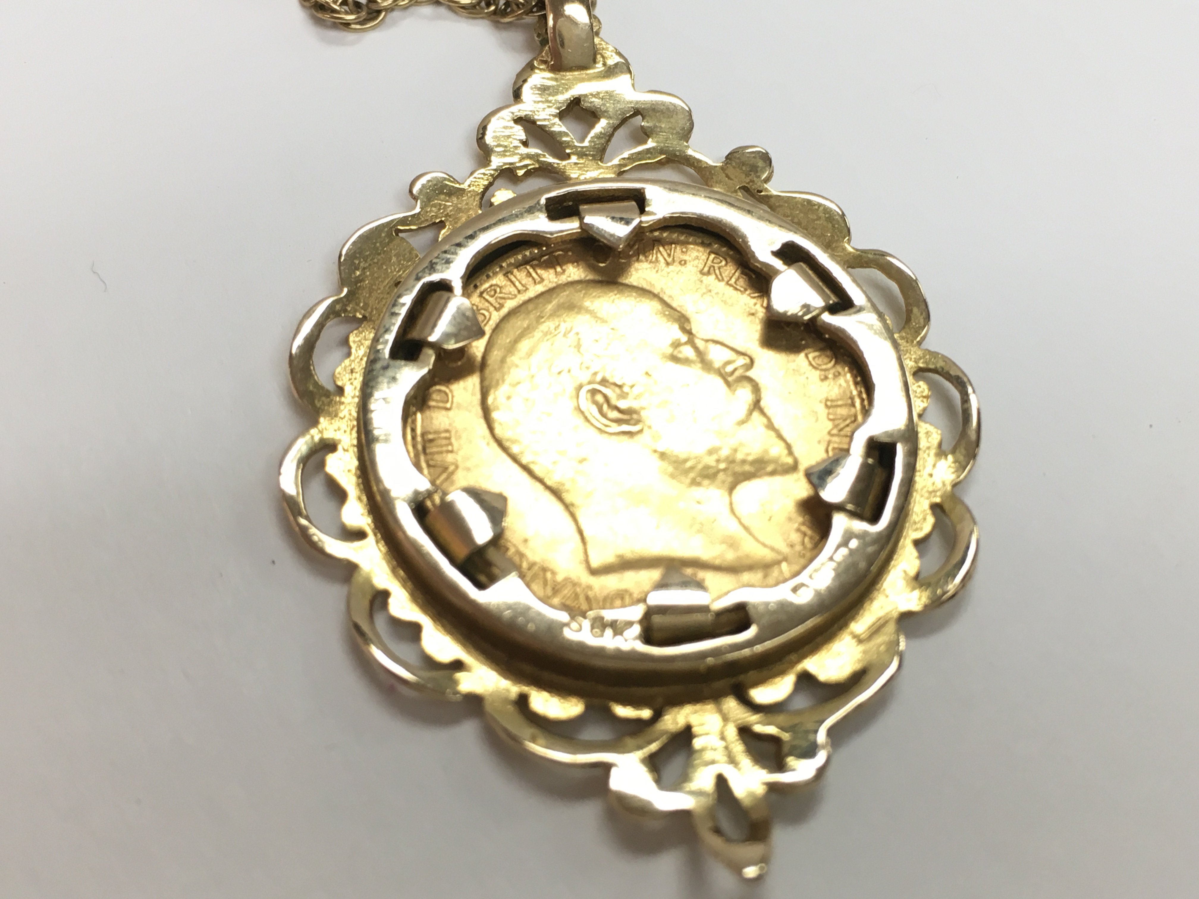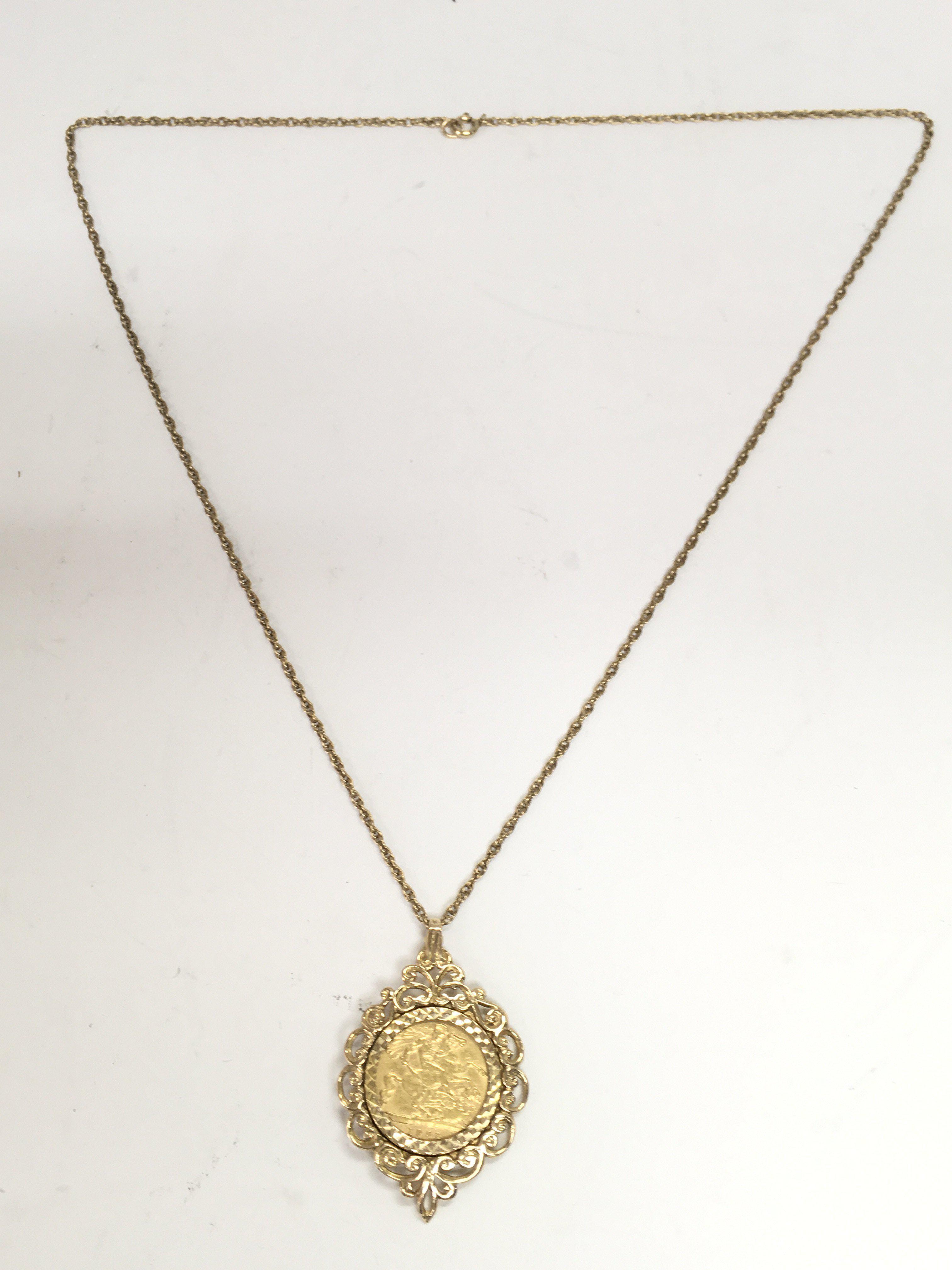 A 1902 half sovereign mount and chain, total weight 11.8g postage category A