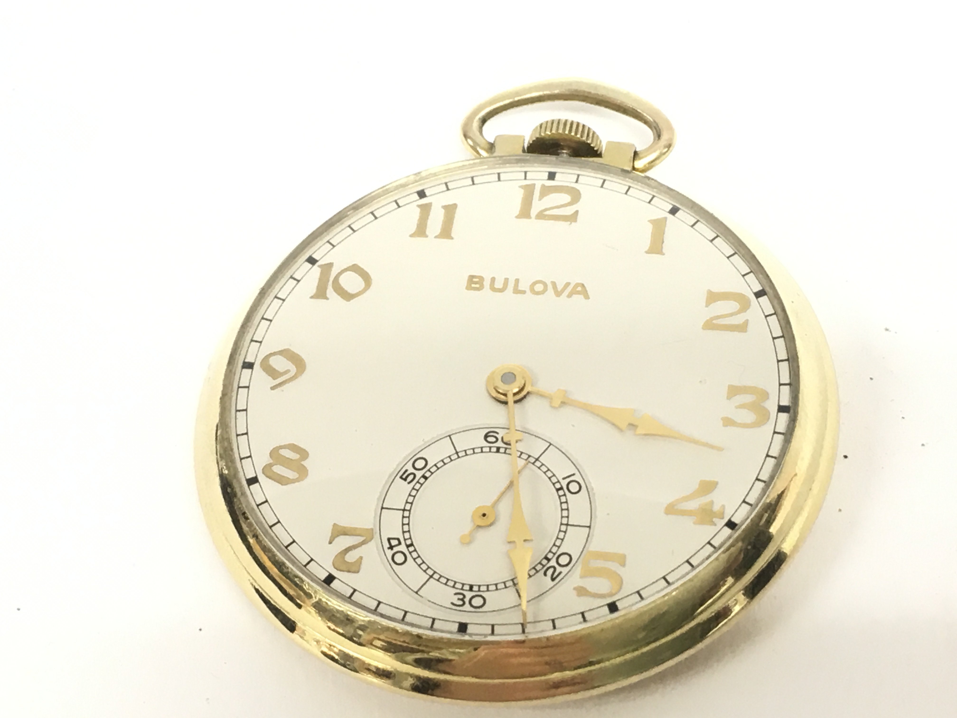 A Bulova gold plated pocket watch (seen working). Postage category A