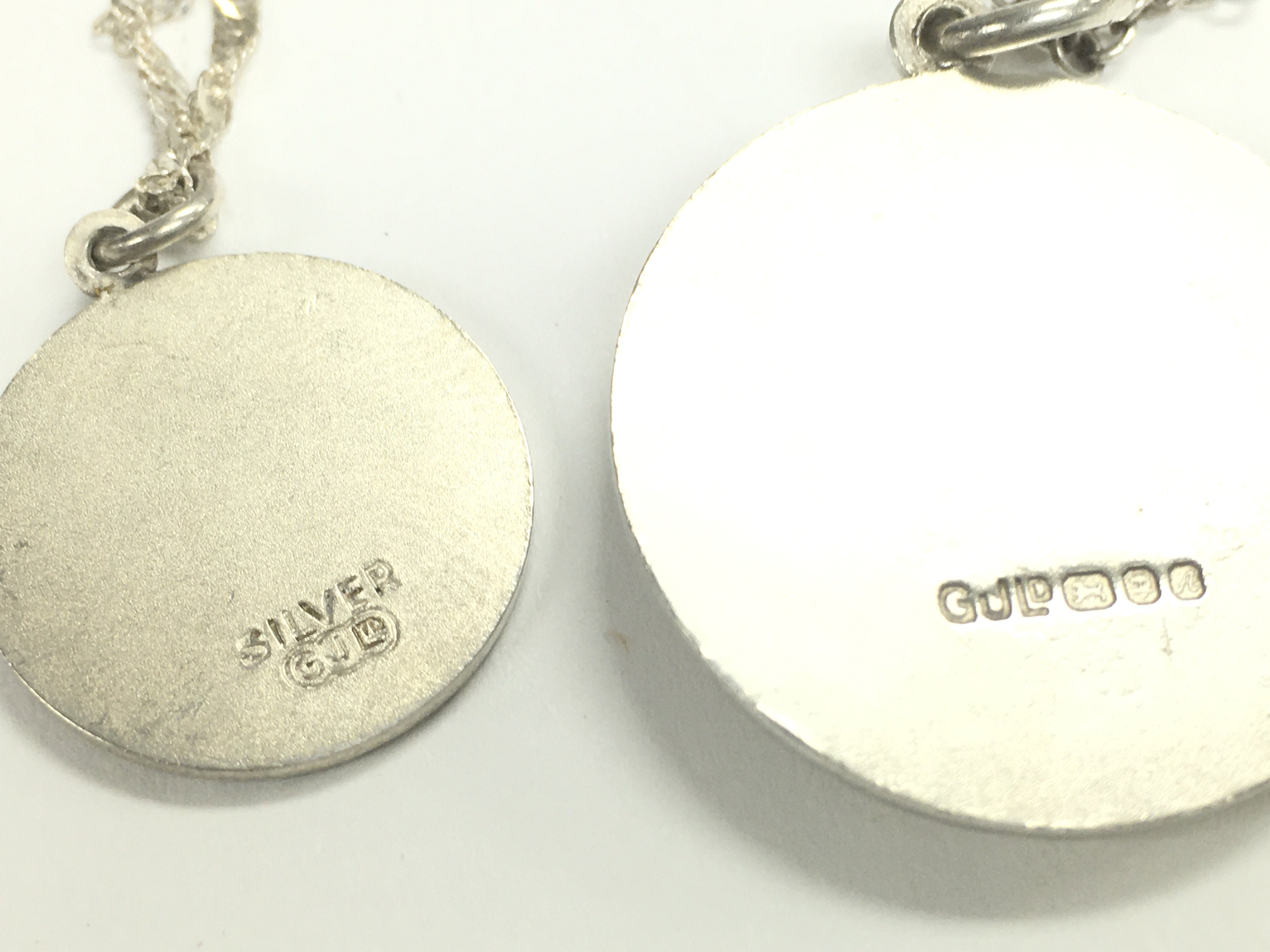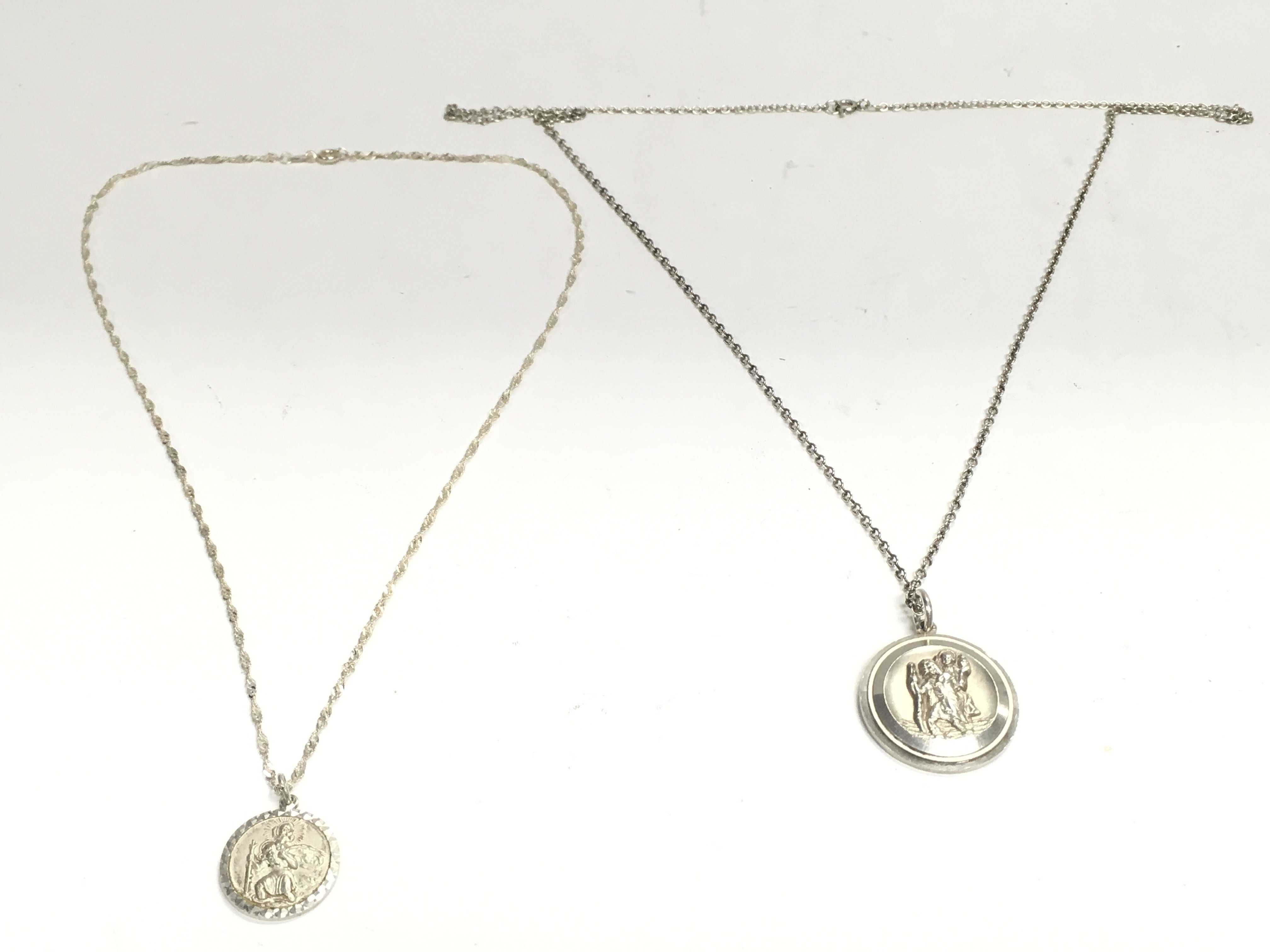 Two silver St Christophers on silver chains by Georg Jensen. Postage category A