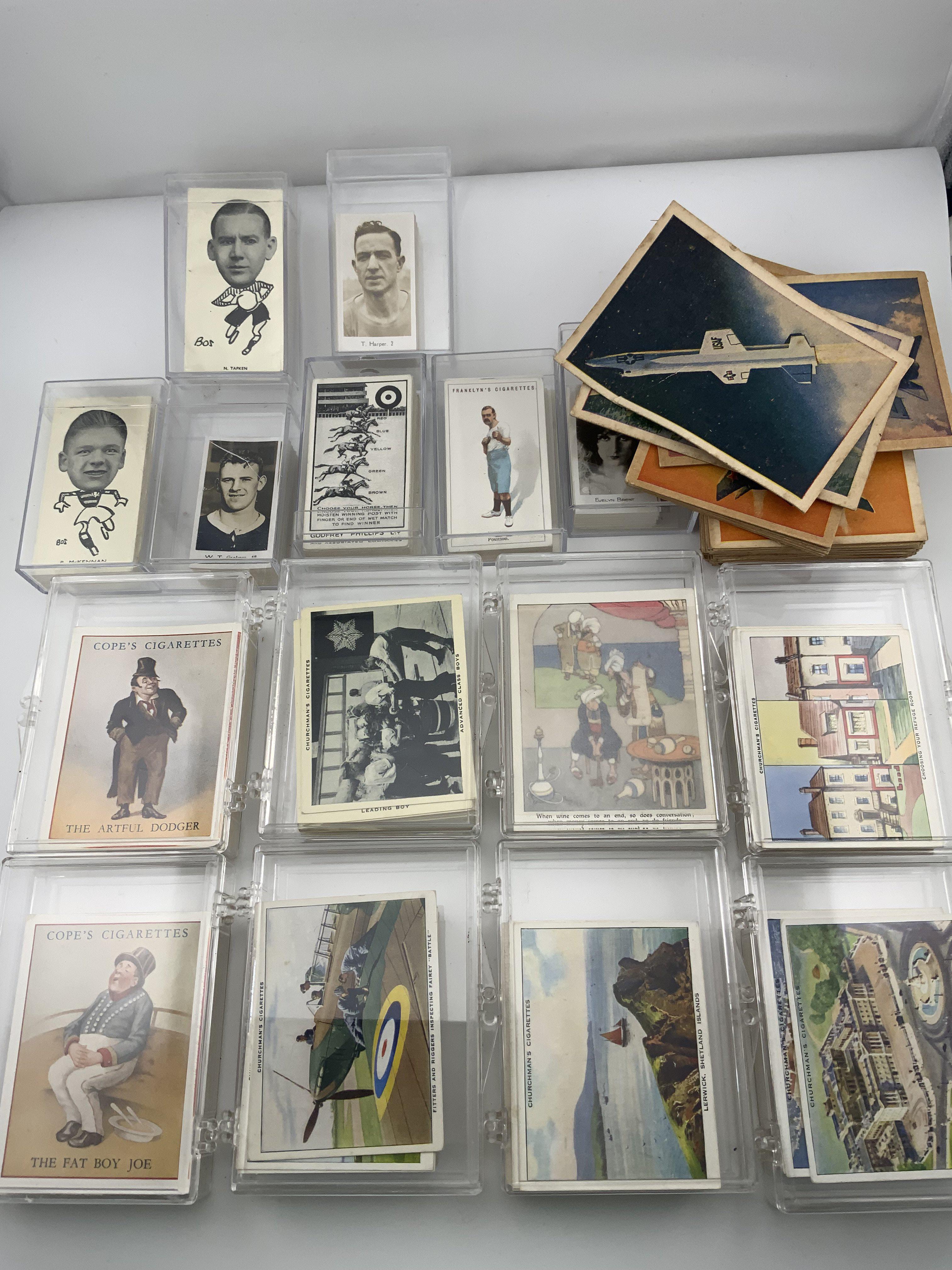 A large collection of mostly complete cigarette and sweet card sets, to include makes such as Copes Cigarettes, Franklyn, Churchman’s, John Sinclair Ltd, Godfrey Philips and more. (B)