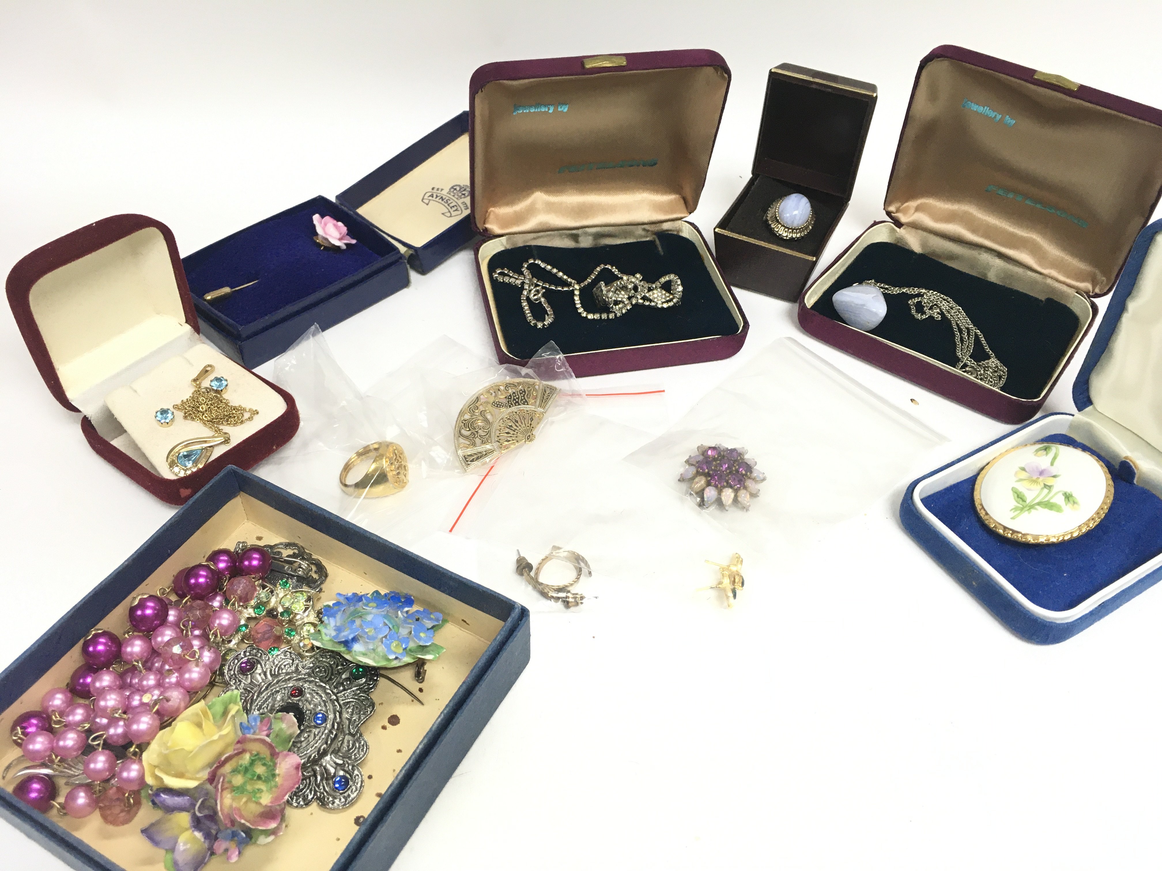 A Collection of costume jewellery including necklaces, rings, brooches etc. postage category C