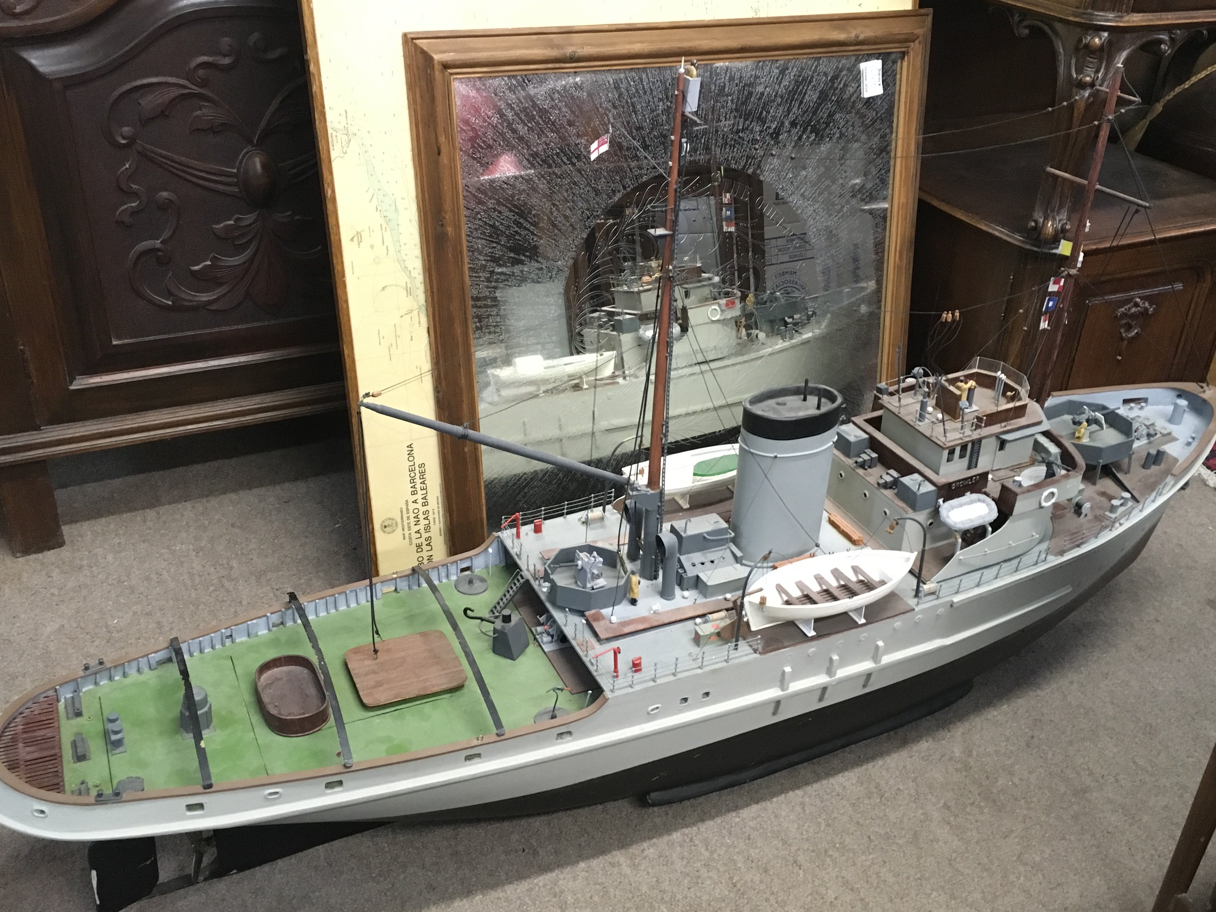 A large motorised model boat , approximate 130cm long. This lot cannot be posted