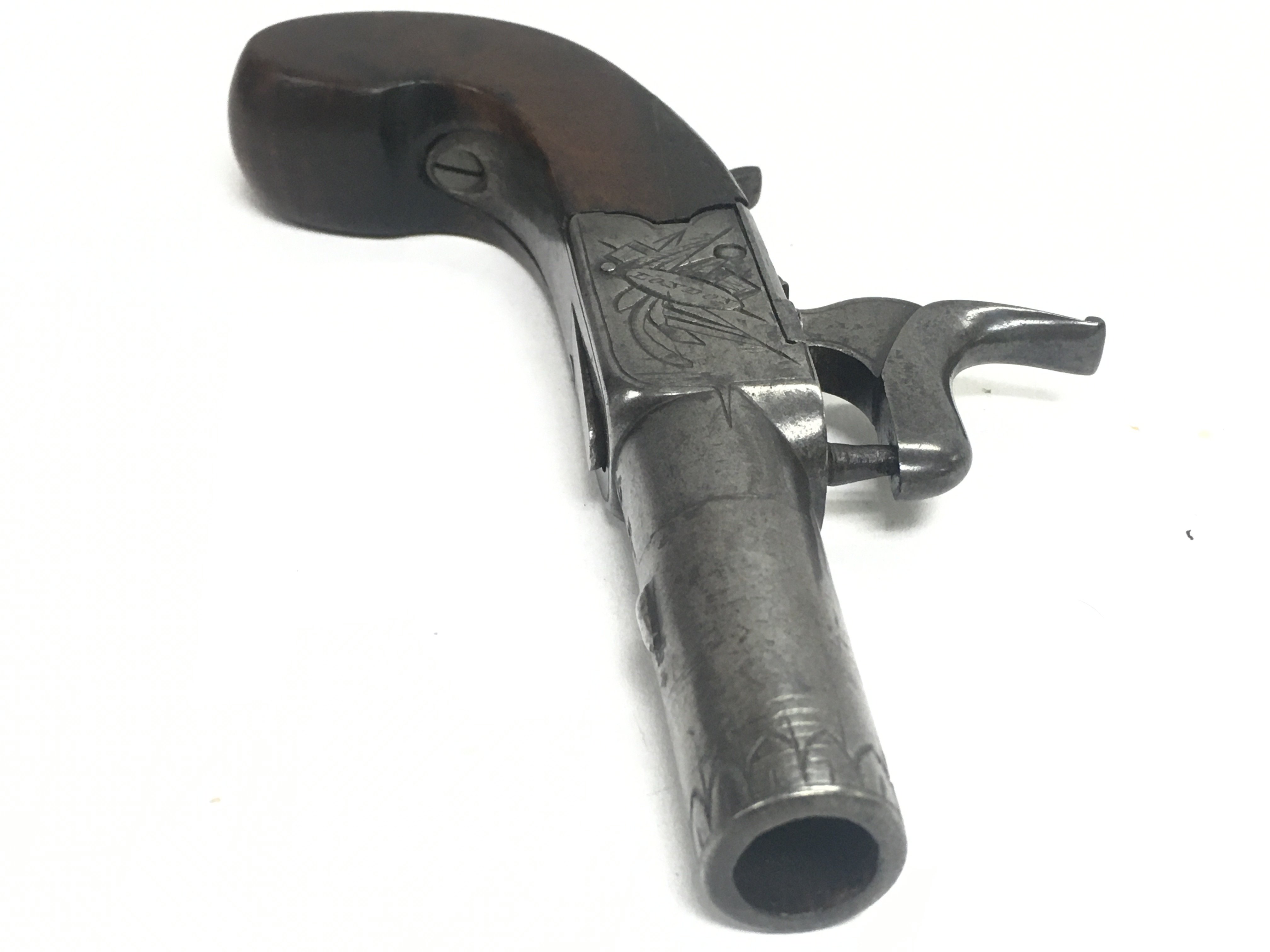 A percussion pocket pistol signed H.Nock, 14cm long. Postage category b