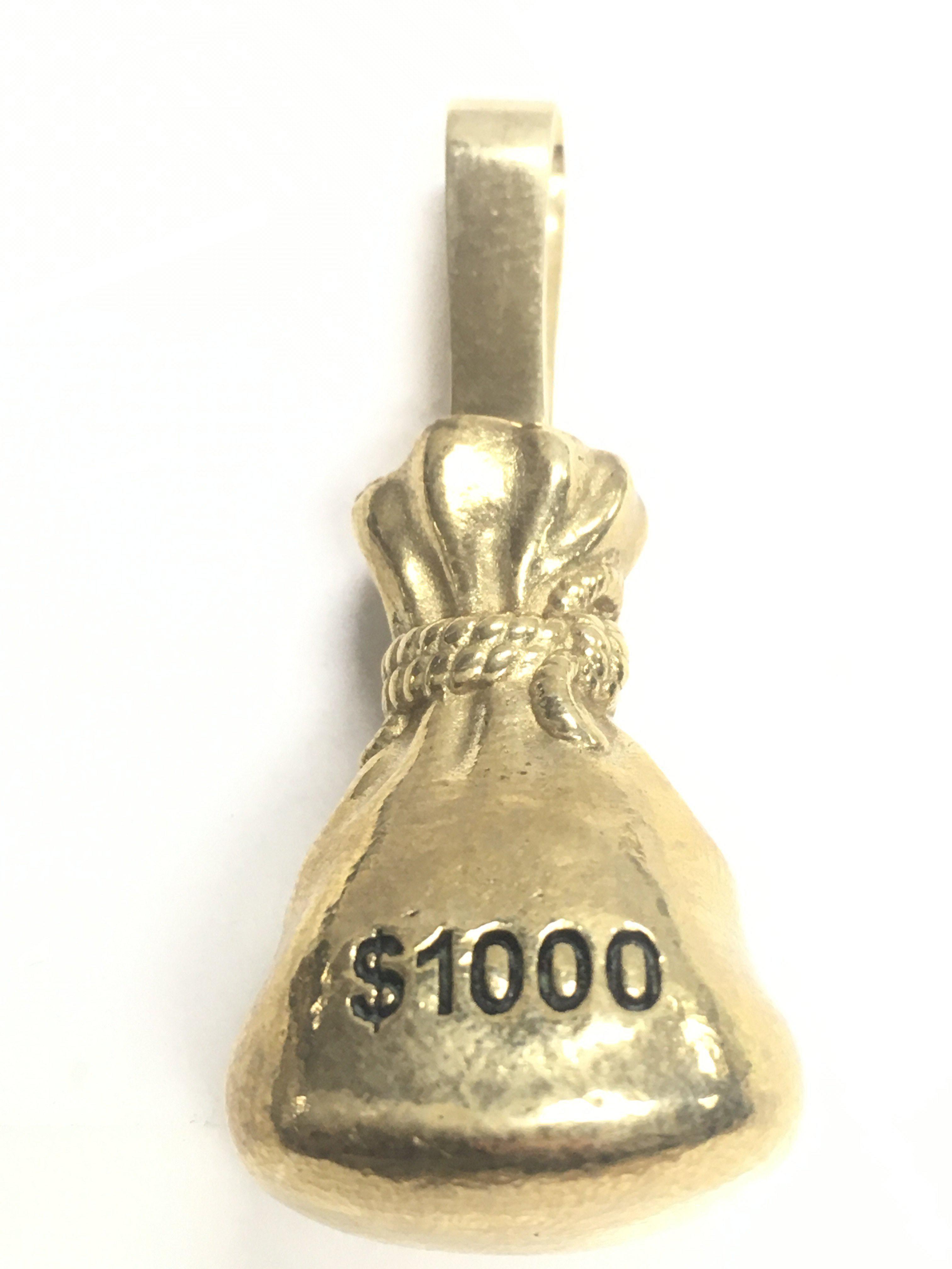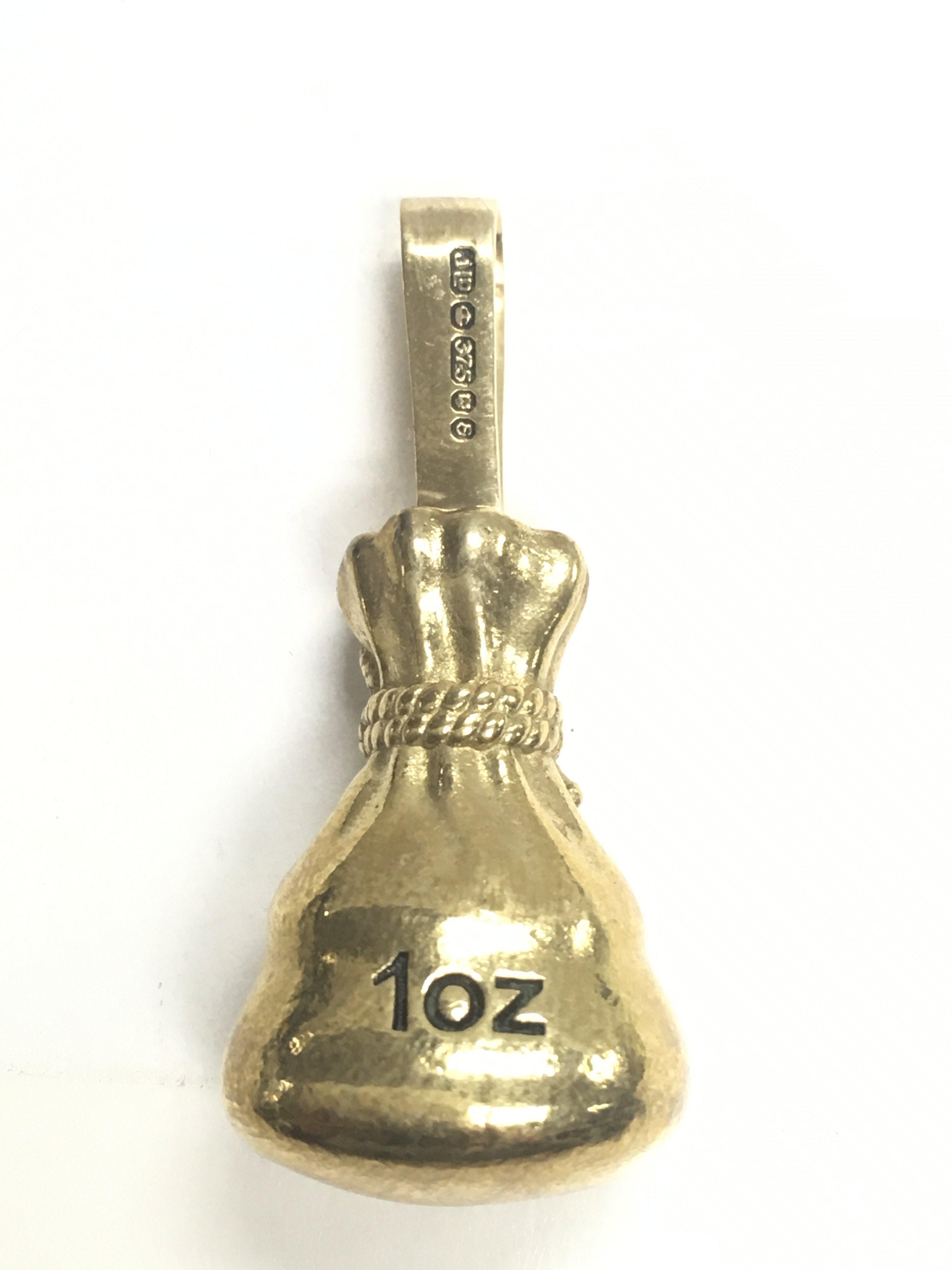 Withdrawn -One ounce 9 carat gold money bag pendant. Postage category A