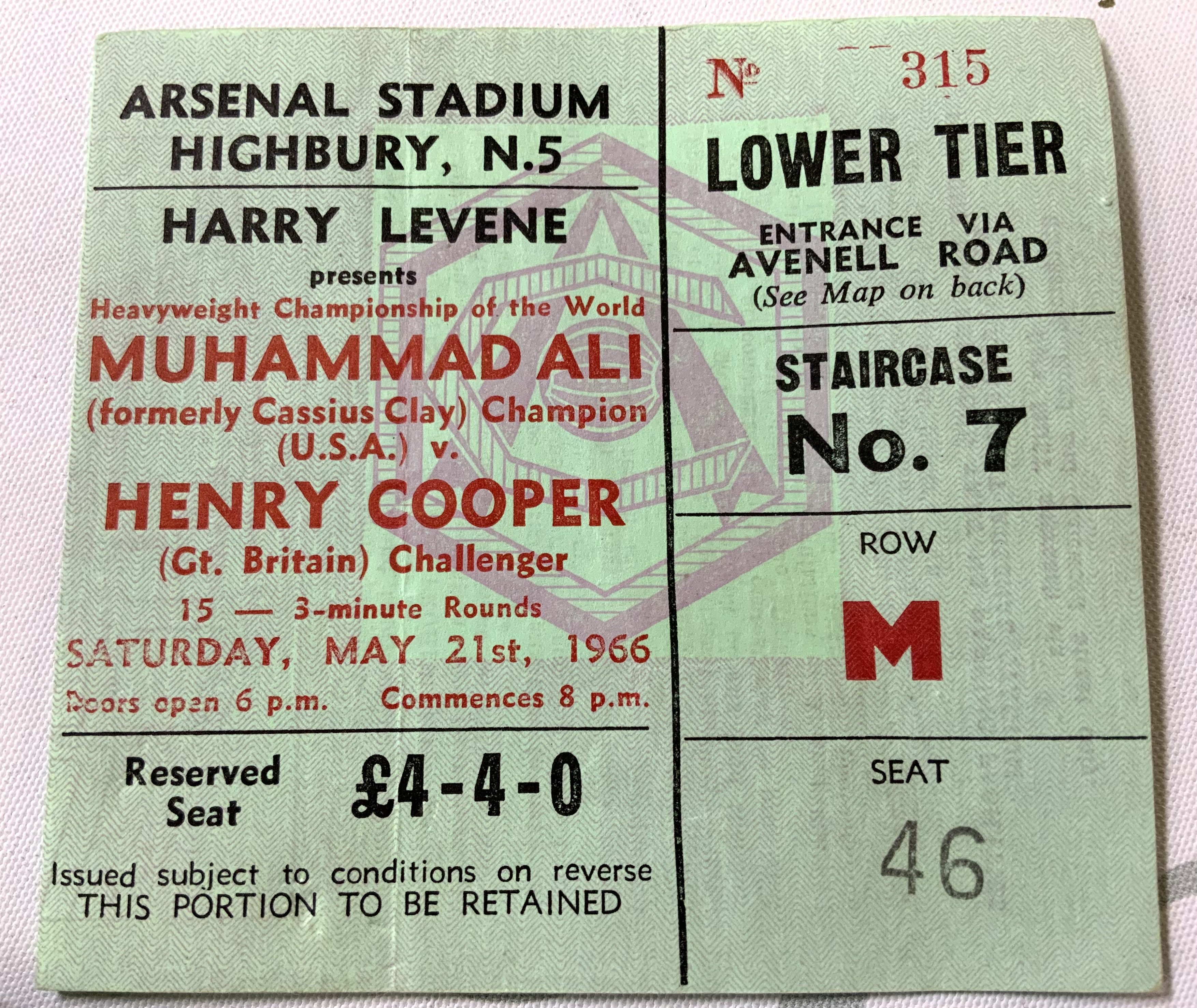 MUHAMMAD ALI v HENRY COOPER, 1966 WORLD HEAVYWEIGHT CHAMPIONSHIP PROGRAMME, "Harry Levene in association with Viewsport Ltd. presents The World Heavyweight Championship, Arsenal Stadium, Highbury, London, 21st May 1966, Official Souvenir Programme 5/-" together with colour insert.