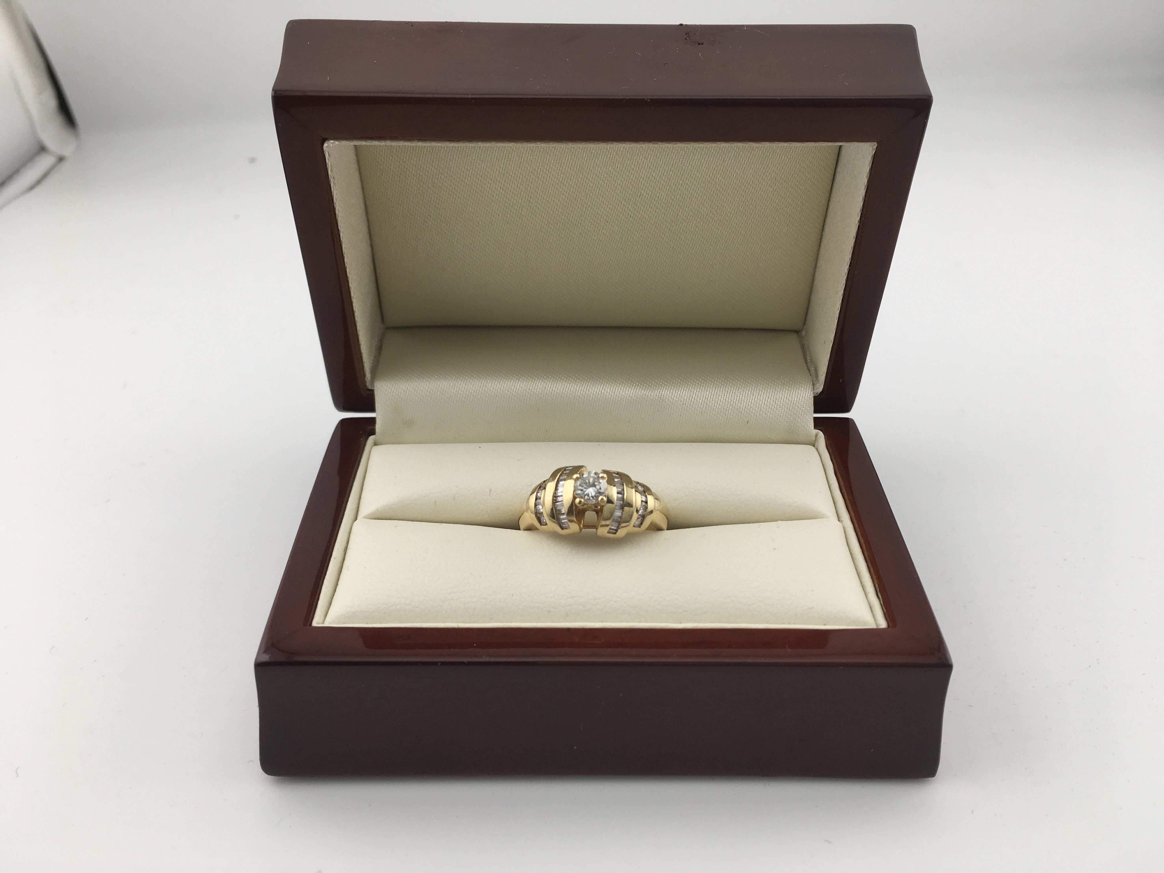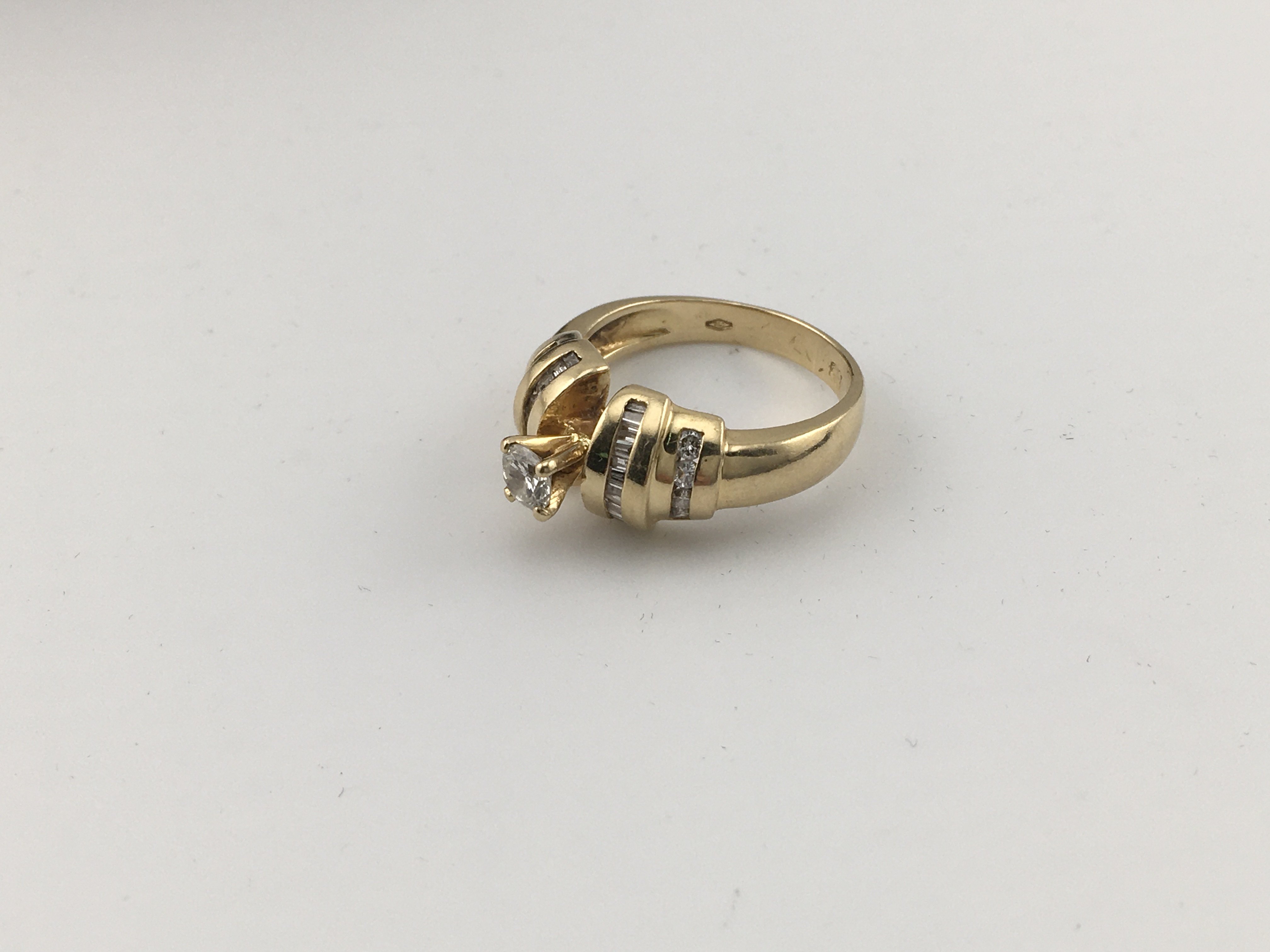 An 18ct diamond set cluster ring set with brilliant cut and baguette cut diamonds. Approx weight M Approx weight 6.7grams.