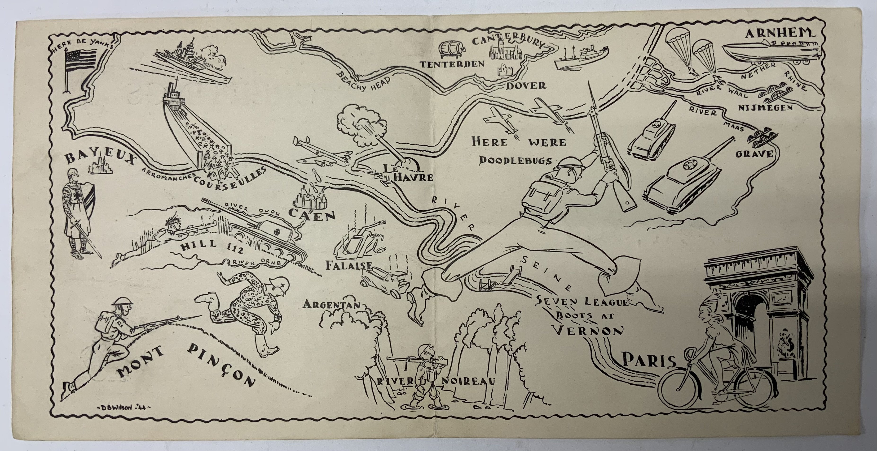 Military interest, a 1945 Christmas greetings card, relating to Hill 112, France. Personal inscription to reverse. (No Reserve).