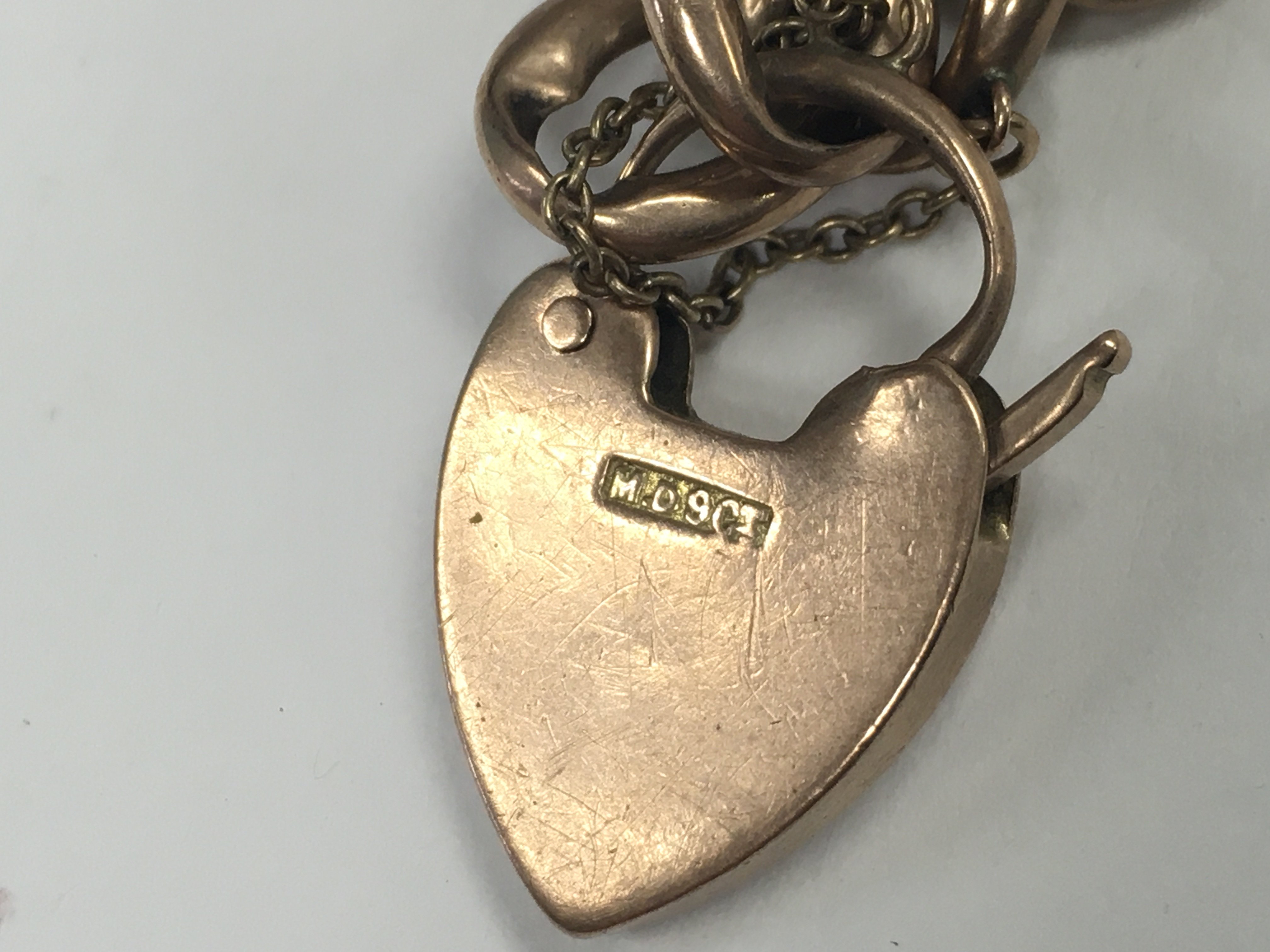 A 9 carat gold bracelet with a heart clasp, 15.2g total weight. postage category A