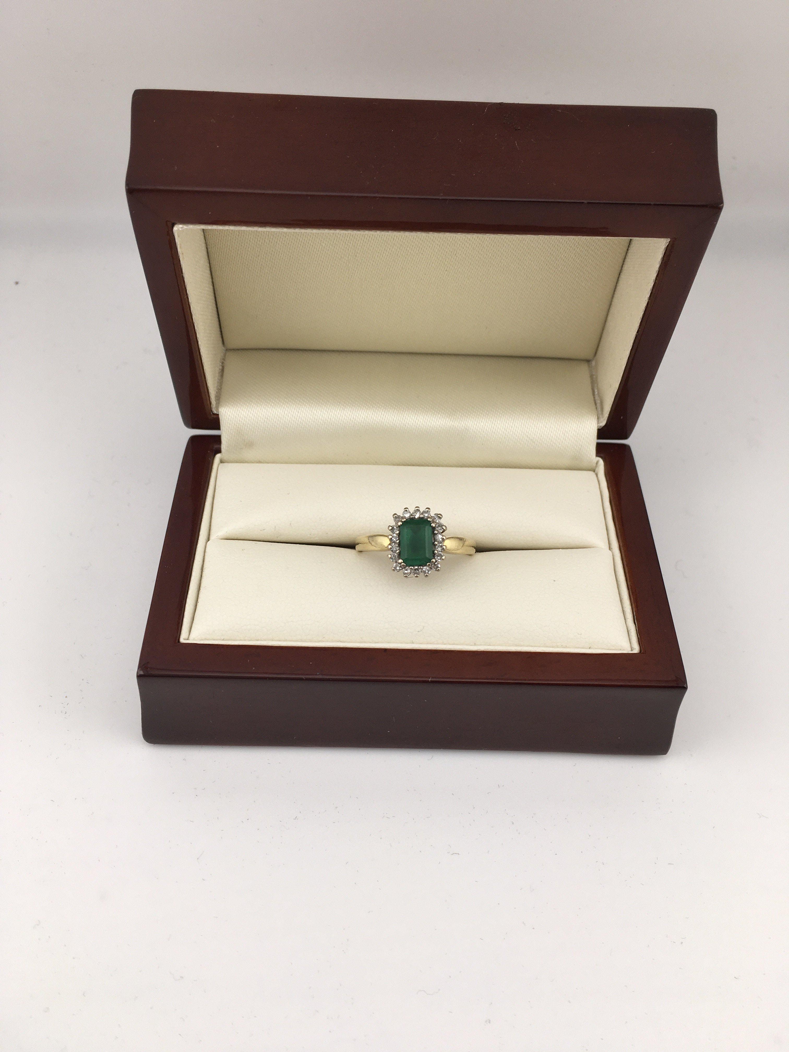 An 18ct gold diamond and emerald set ring. Approx weight 4.2grams, Approx size M 1/2.
