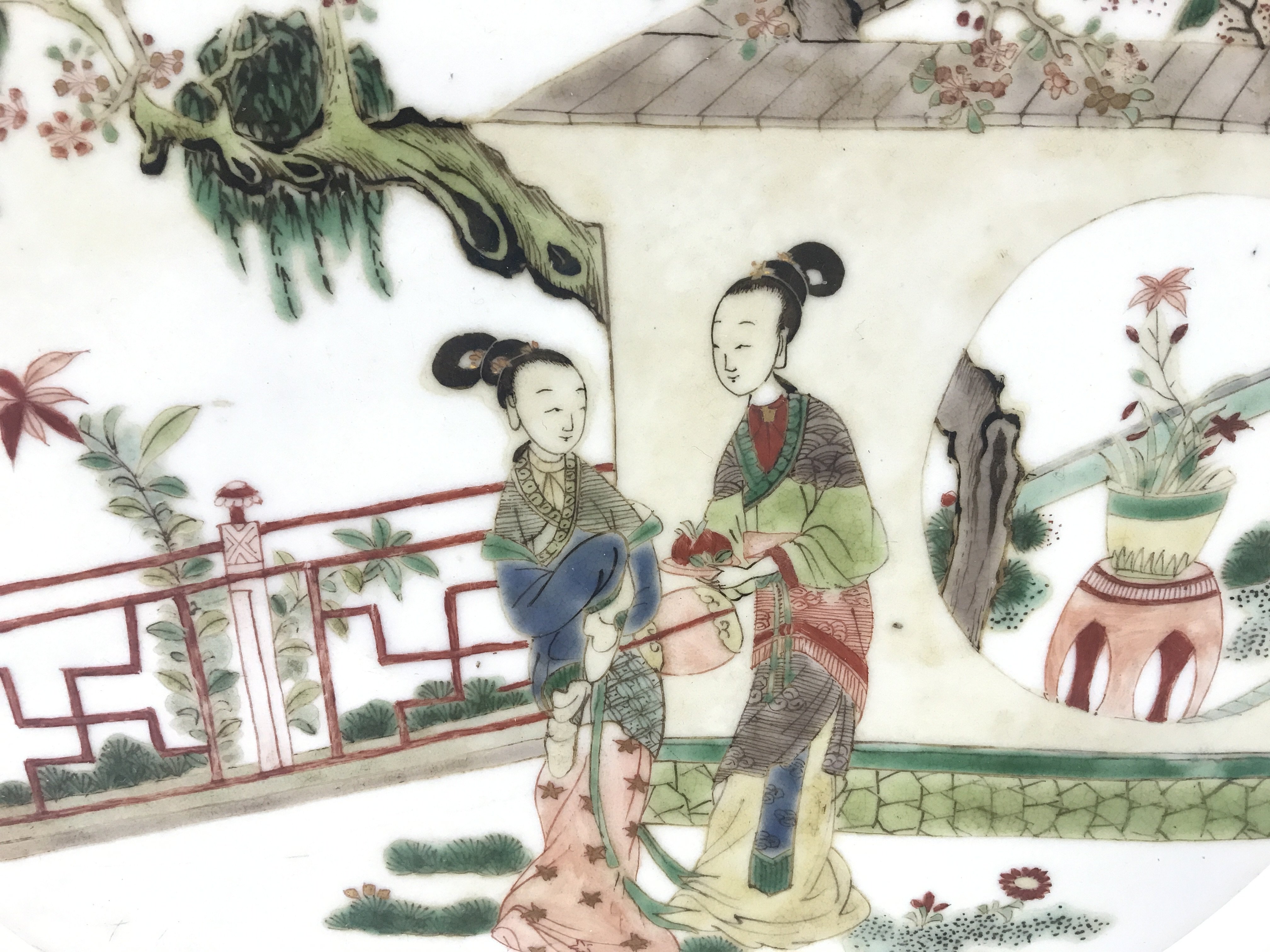 A Chinese Famille Verte porcelain panel, 22cm wide. This lot cannot be posted