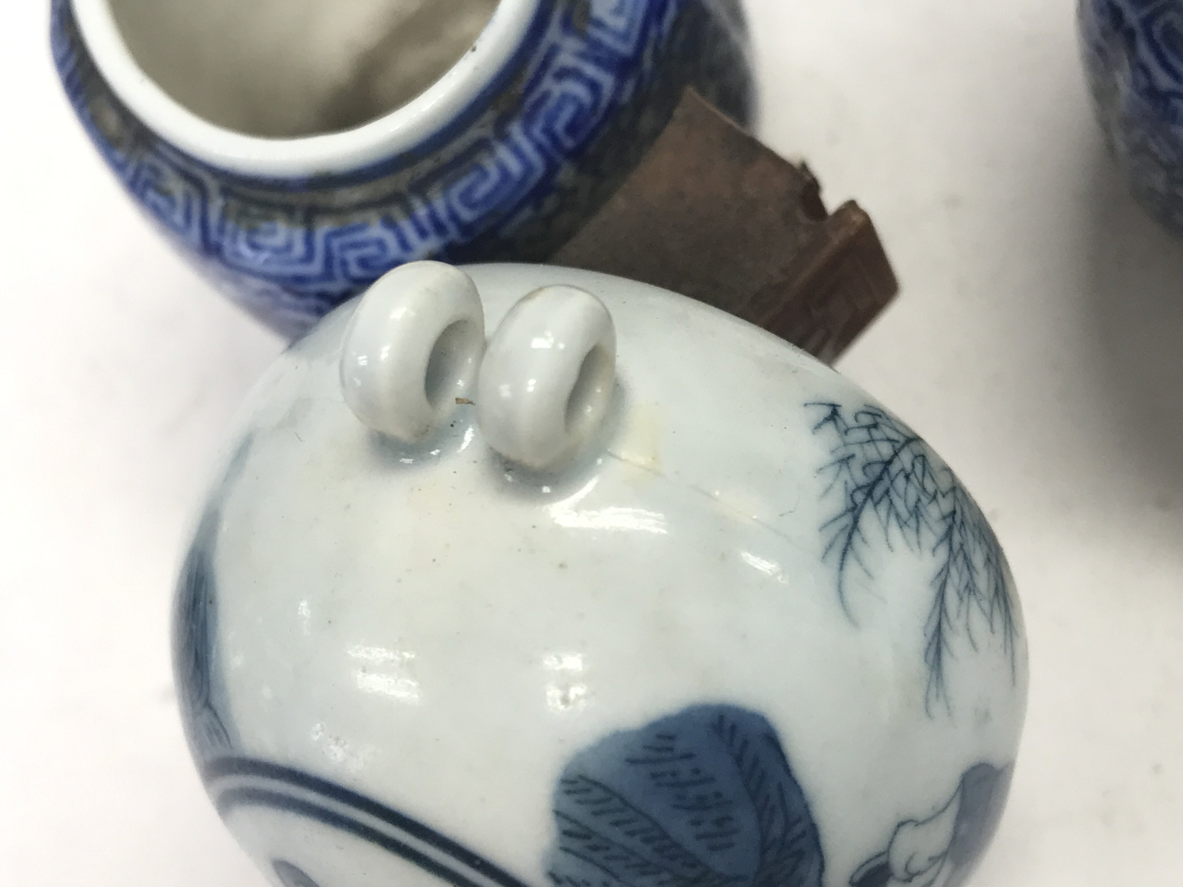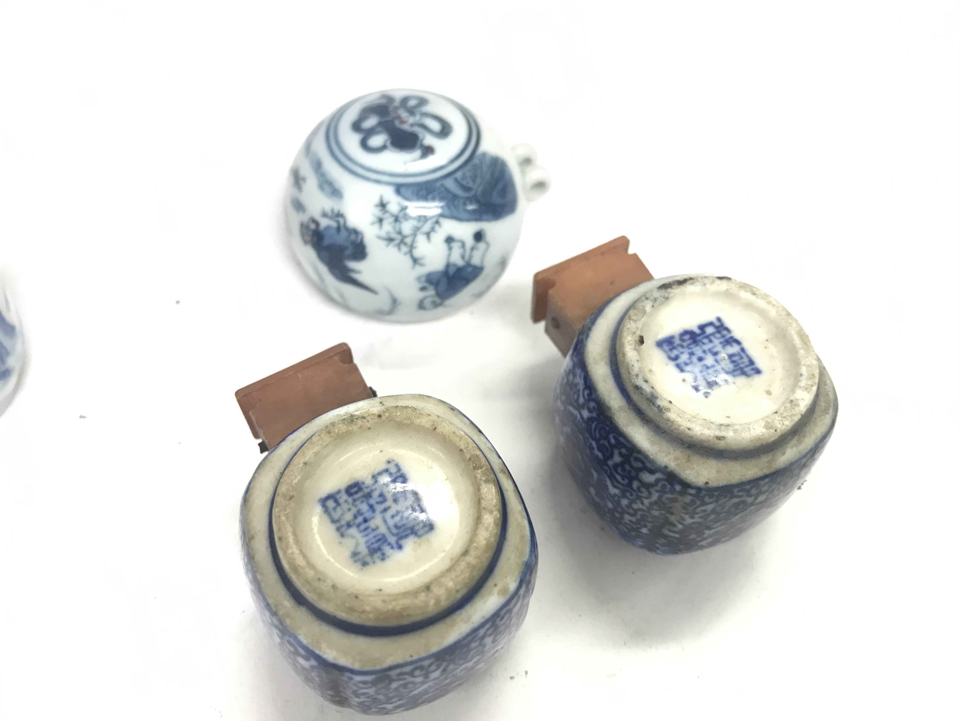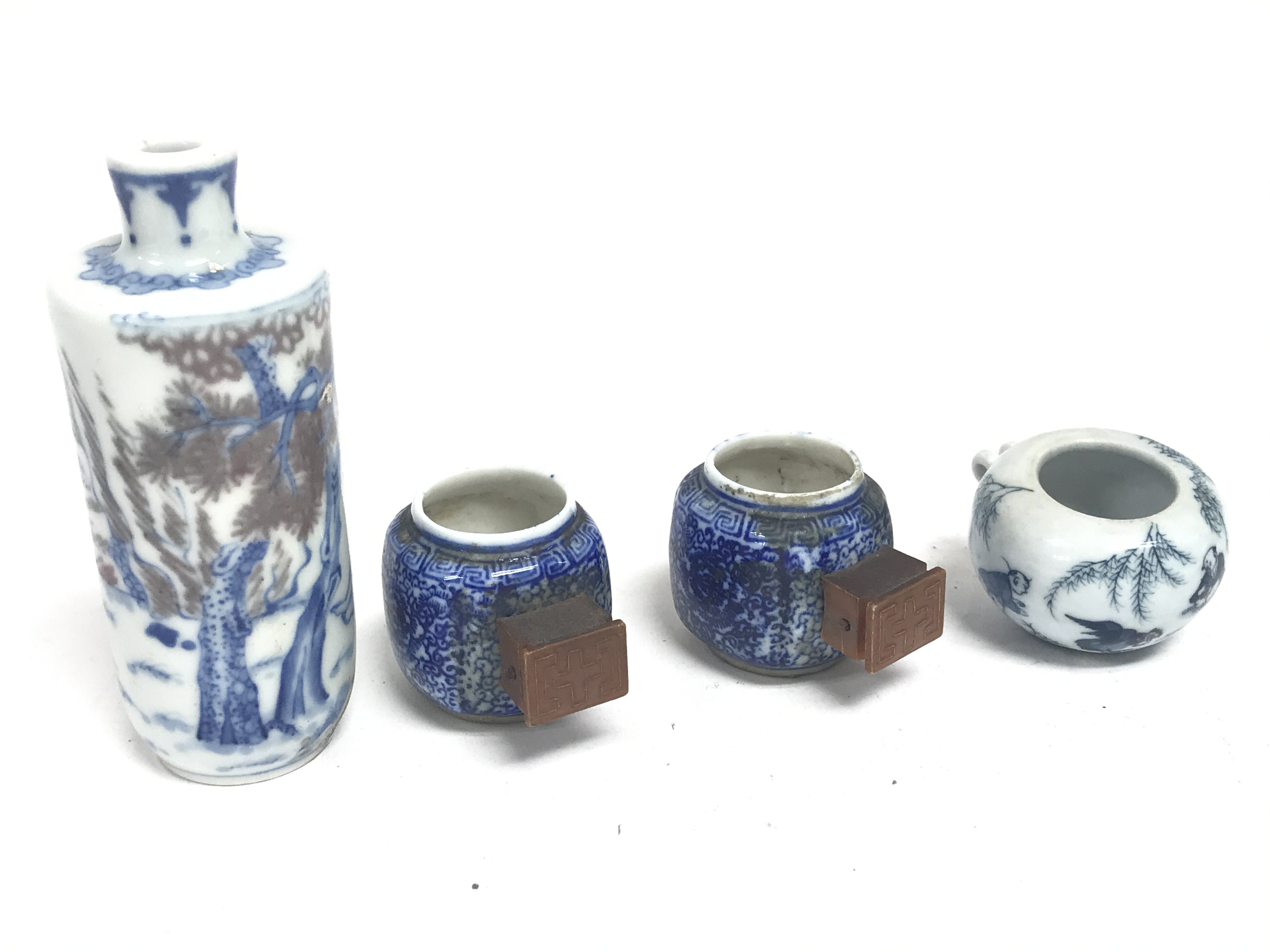 Chinese porcelain seal boxes, small snuff bottle. This lot cannot be posted