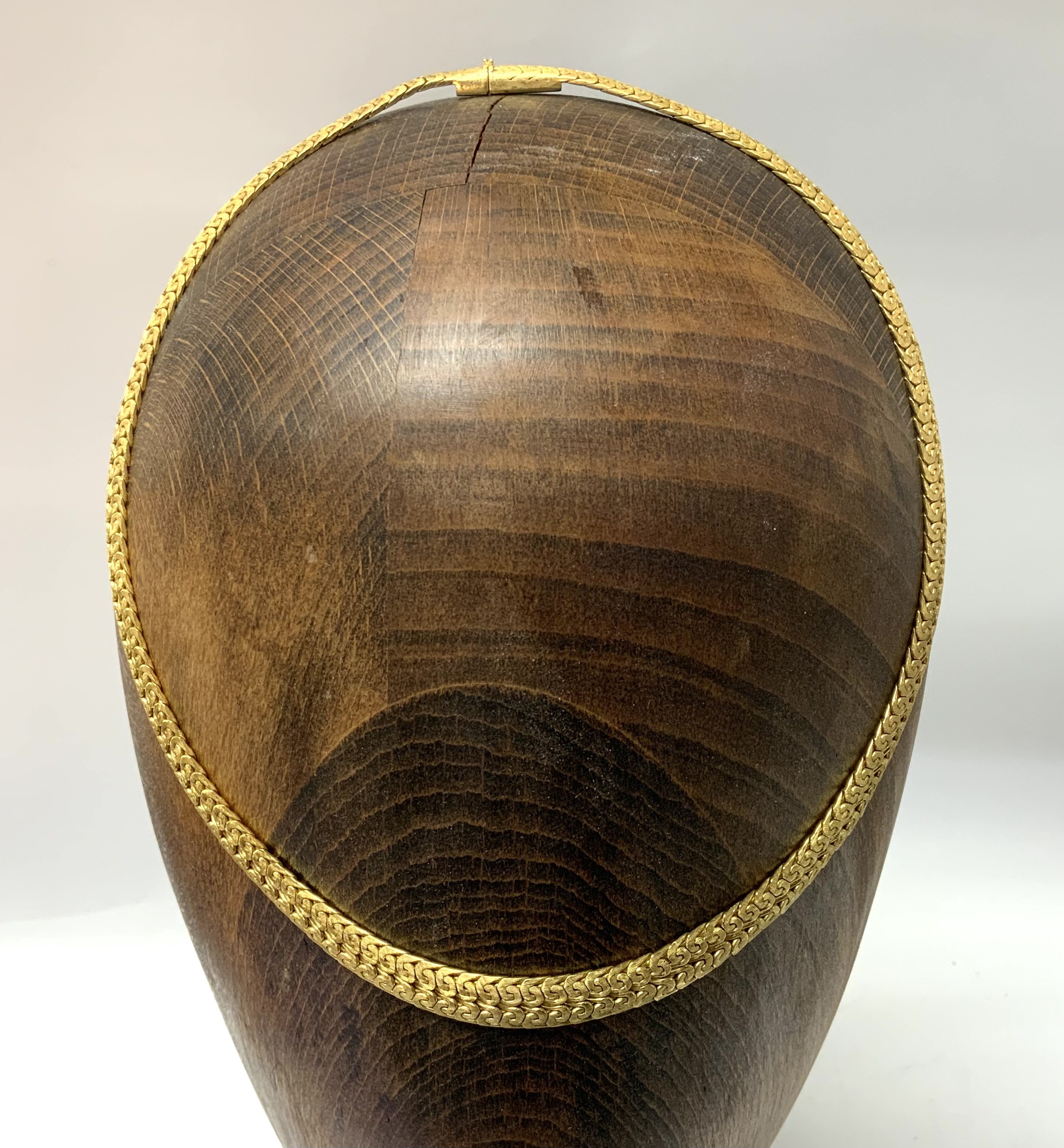 A heavy 18ct yellow gold weave design necklace. Total weight 56.42g (A) approx 40cm.