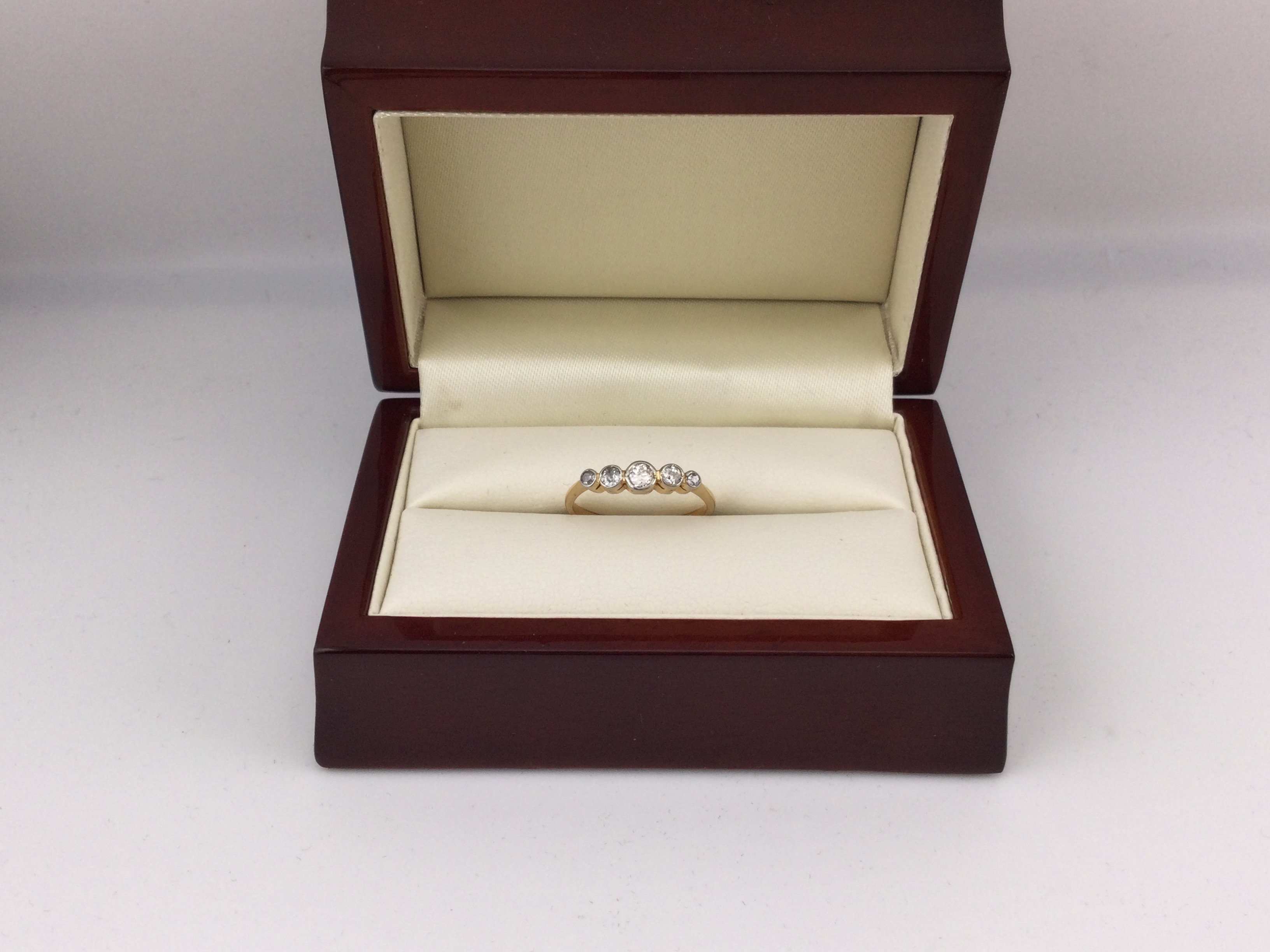 An 18ct gold five stone diamond ring. Approx weigh 1.9grams, approx size O.