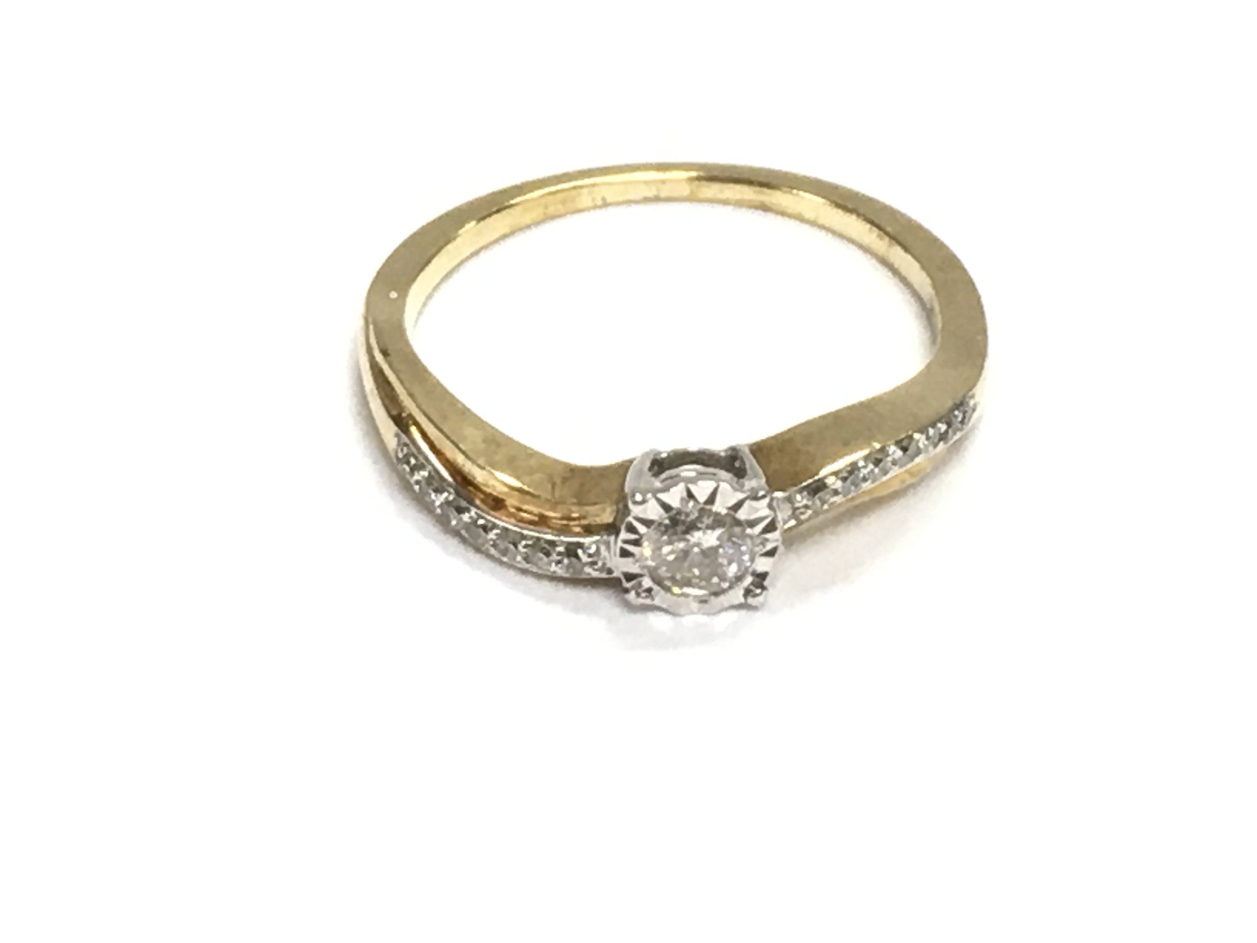 A 9ct gold solitaire style diamond ring with 0.22ct total. Size M and 2.13g Postage A