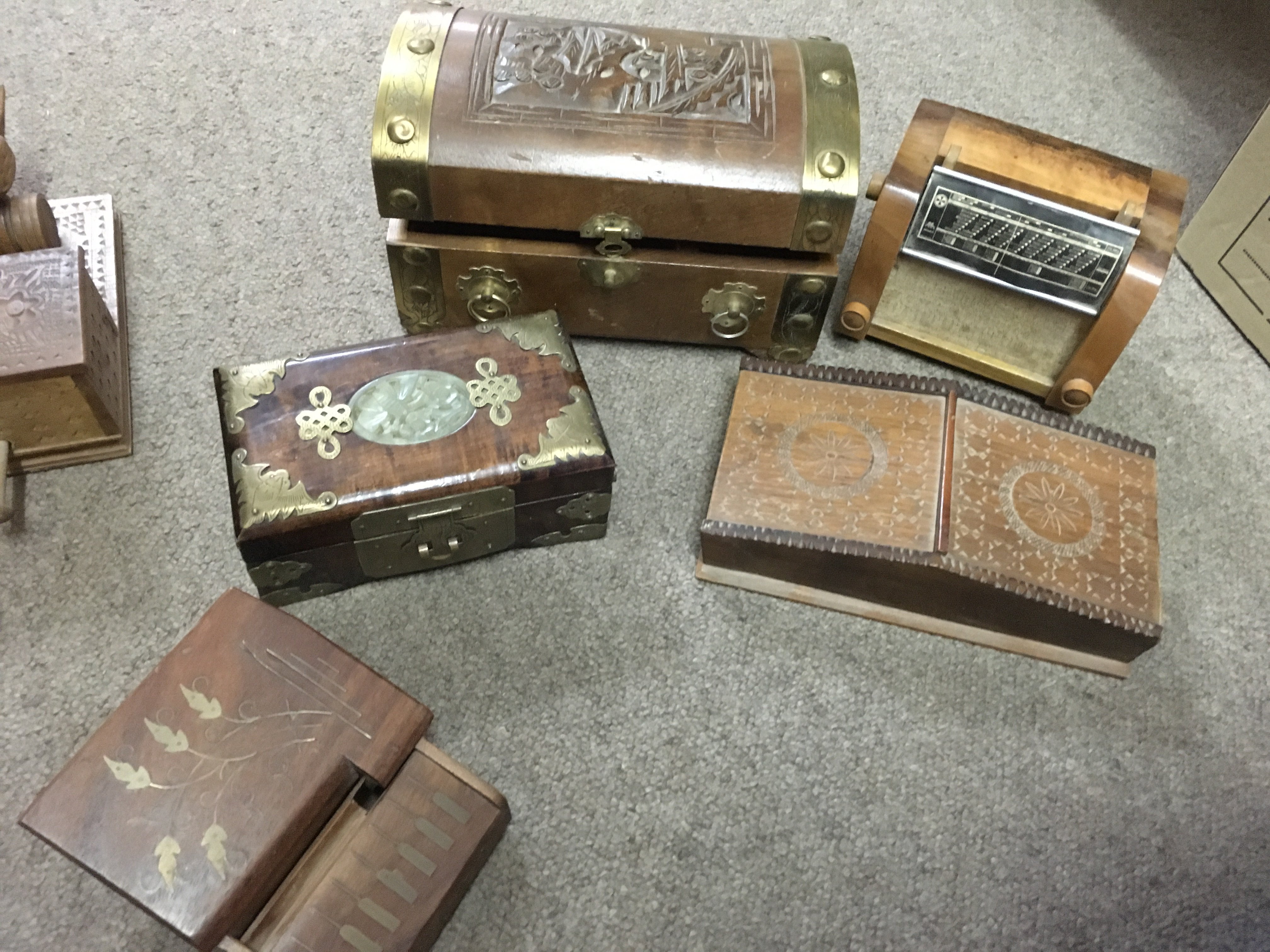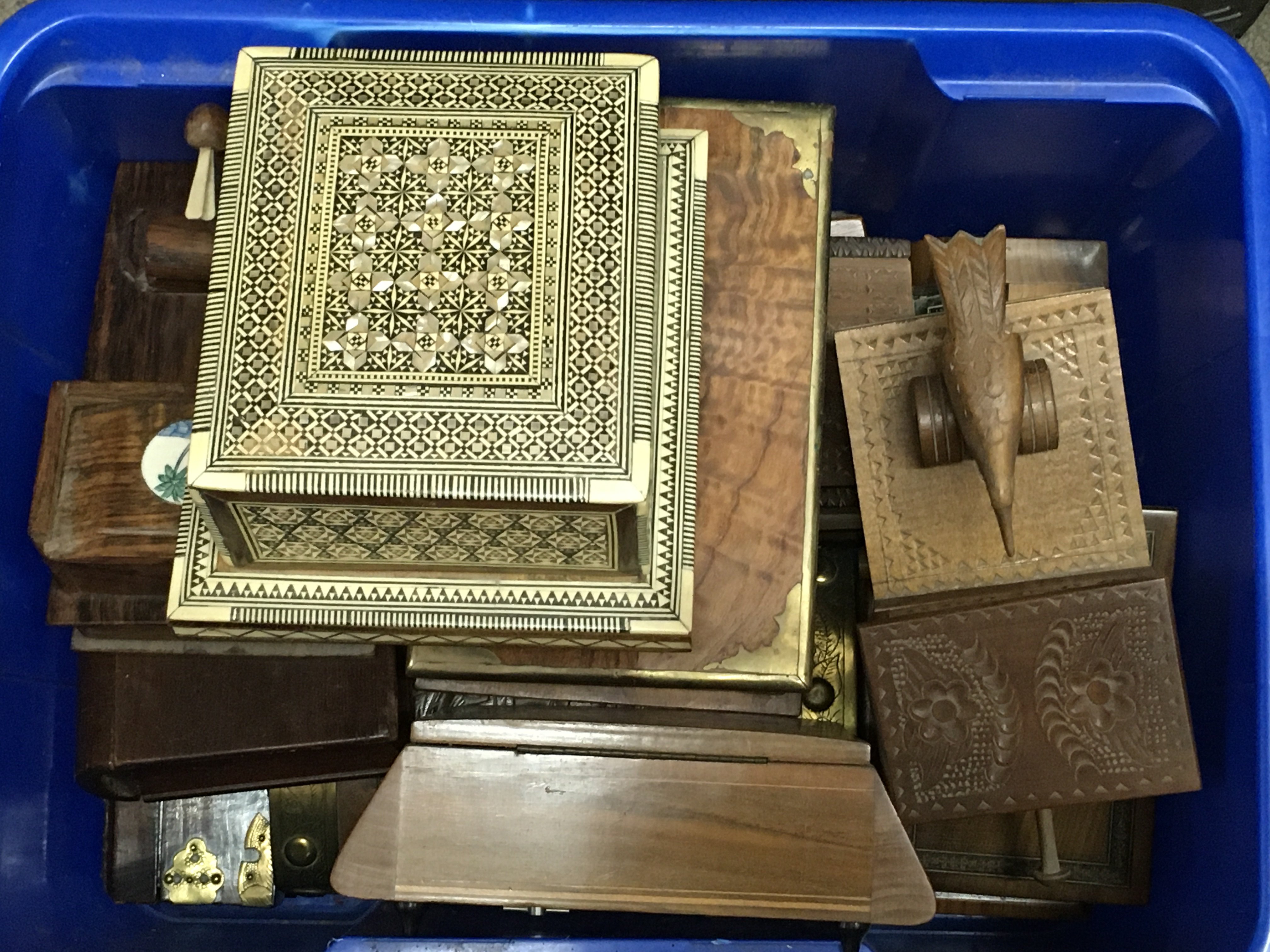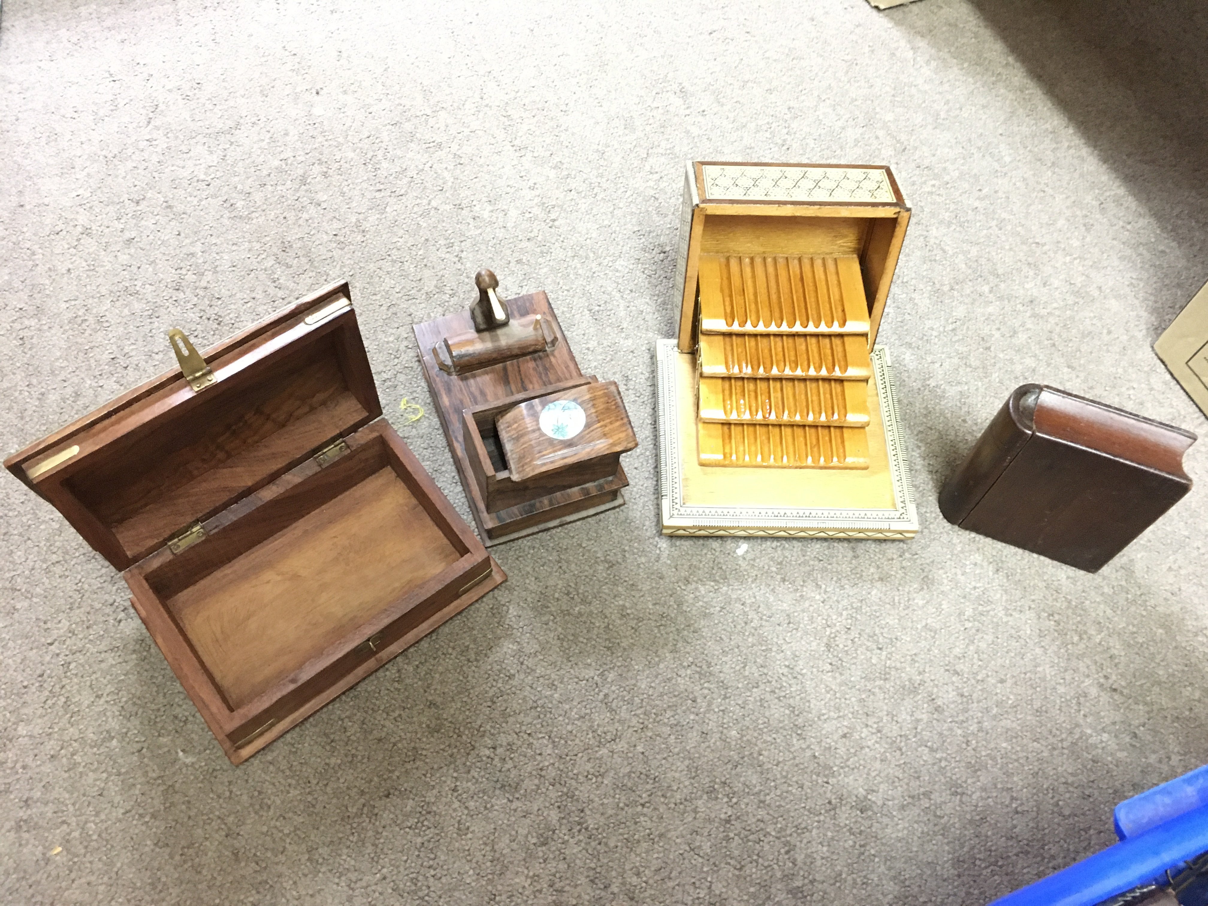 A Collection of vintage wooden cigarette/ cigar boxes. Some musical examples. Postage category C. NO RESERVE