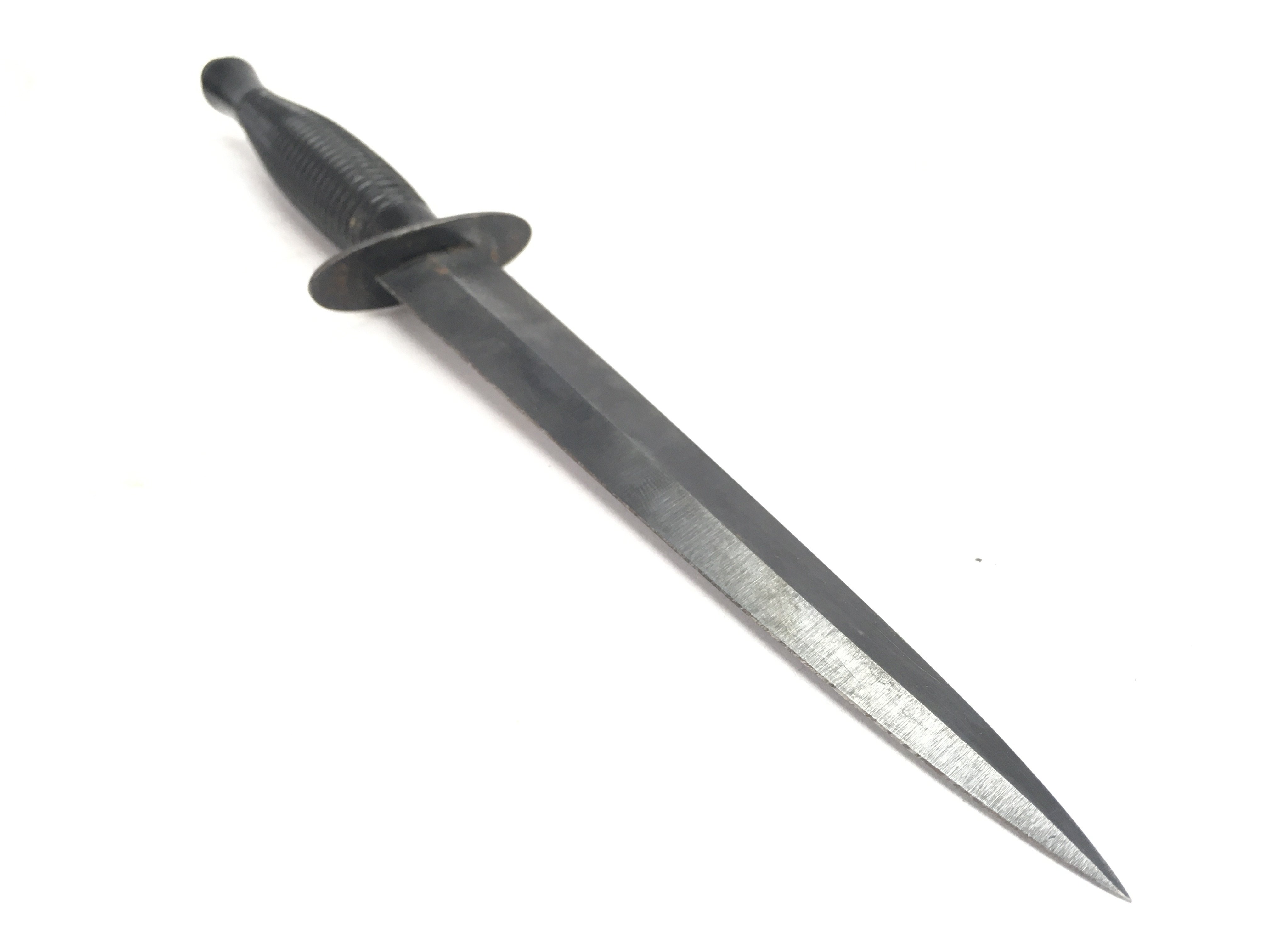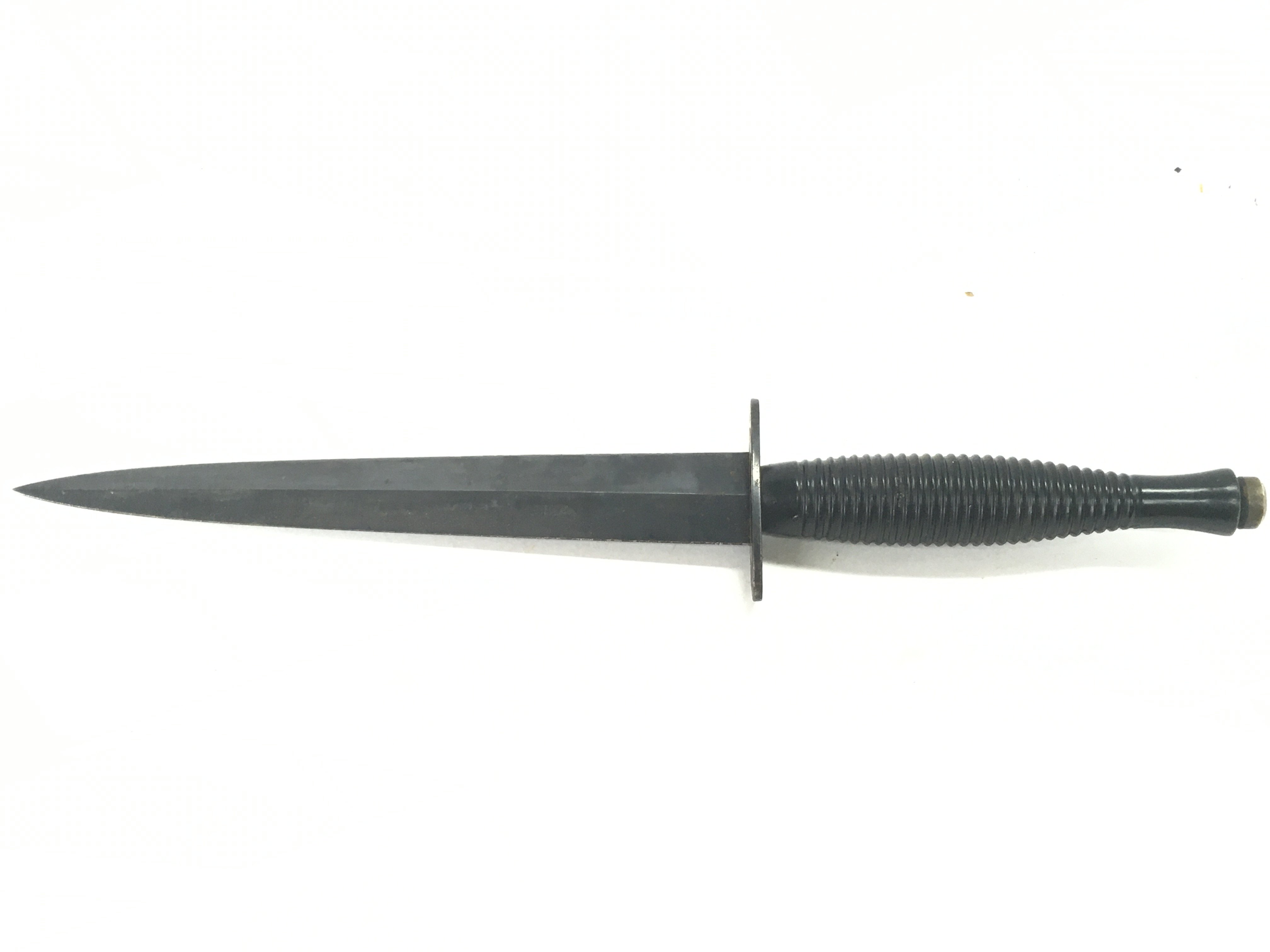 A Fairbairn Sykes fighting knife, third pattern made by William Rodgers, Sheffield. Blade 18cm long , 30cm long total length. This lot cannot be posted