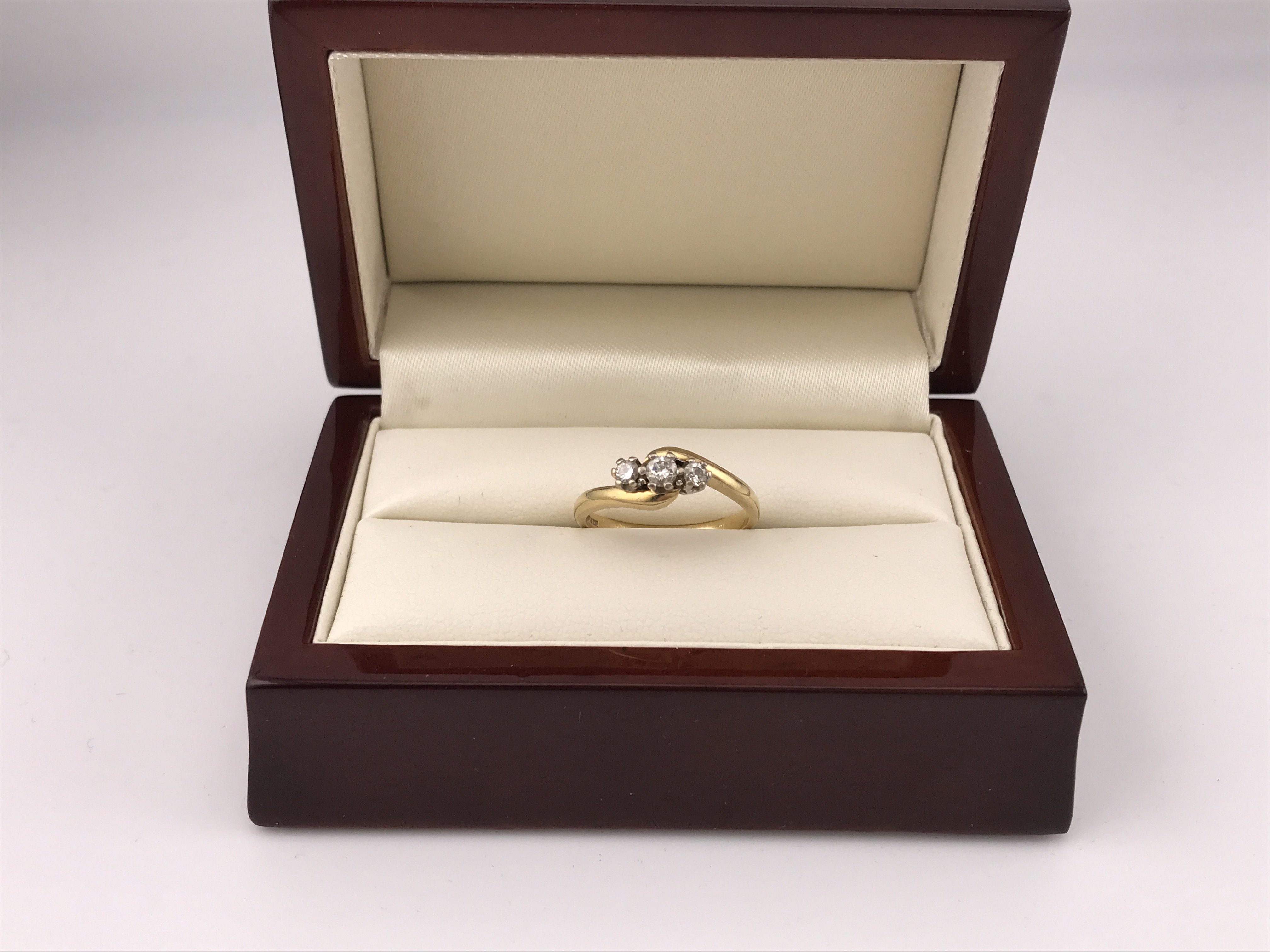 An 18ct three stone diamond ring. Approx weight 3.7grams, approx size N1/2.