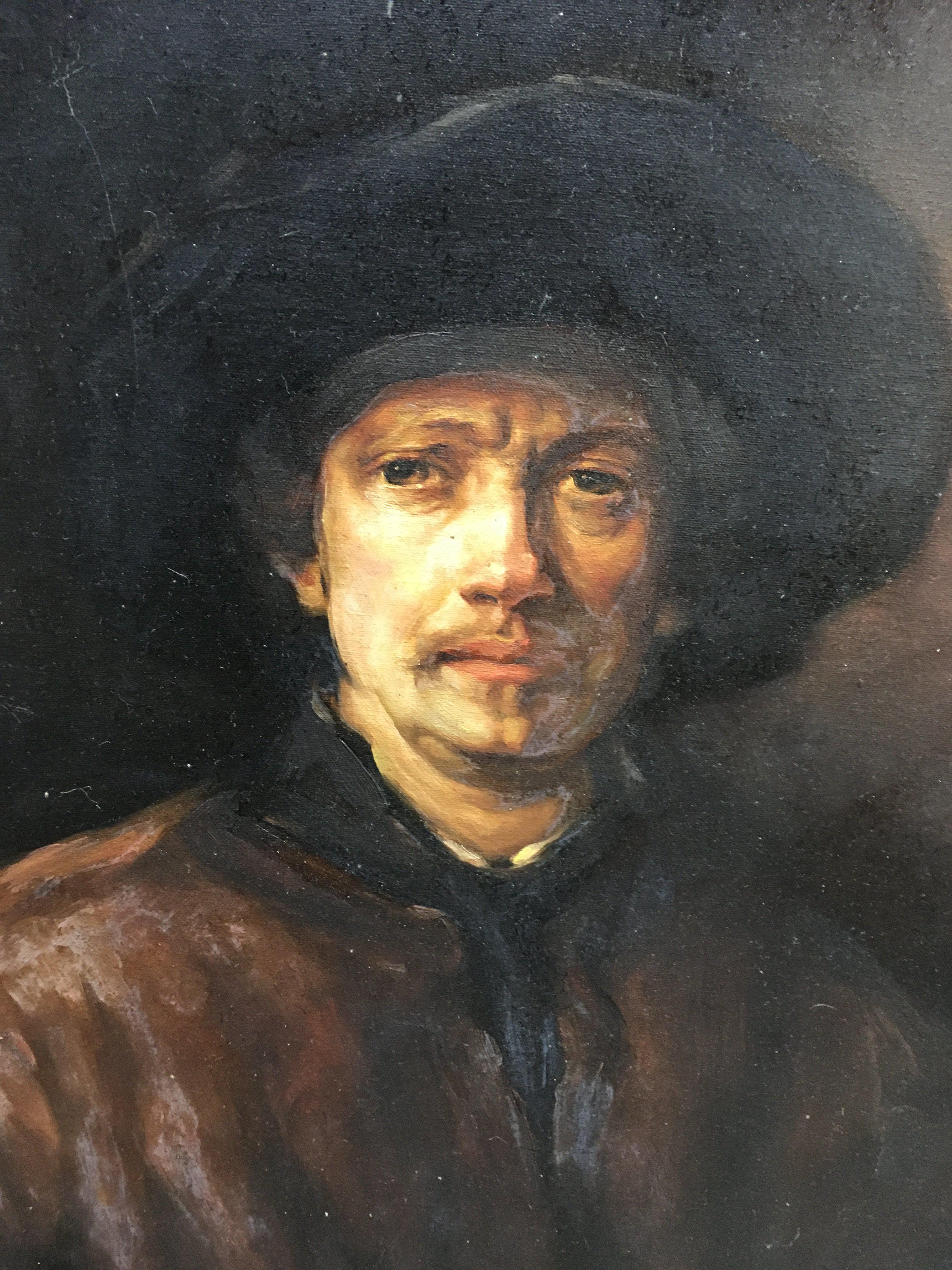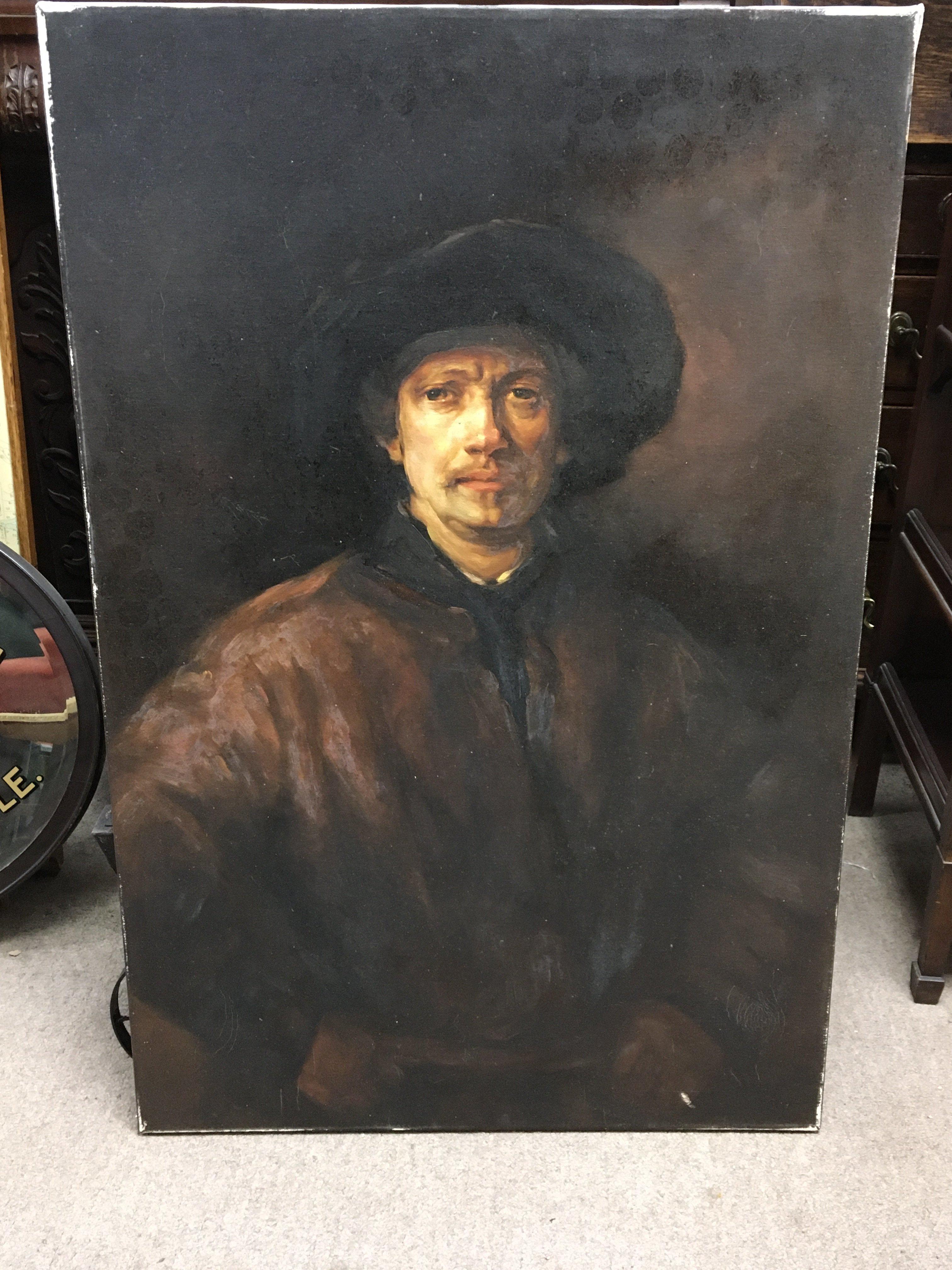 An unframed oil on canvas, Rembrant self portrait dimensions 61x91cm. This lot cannot be posted. NO RESERVE