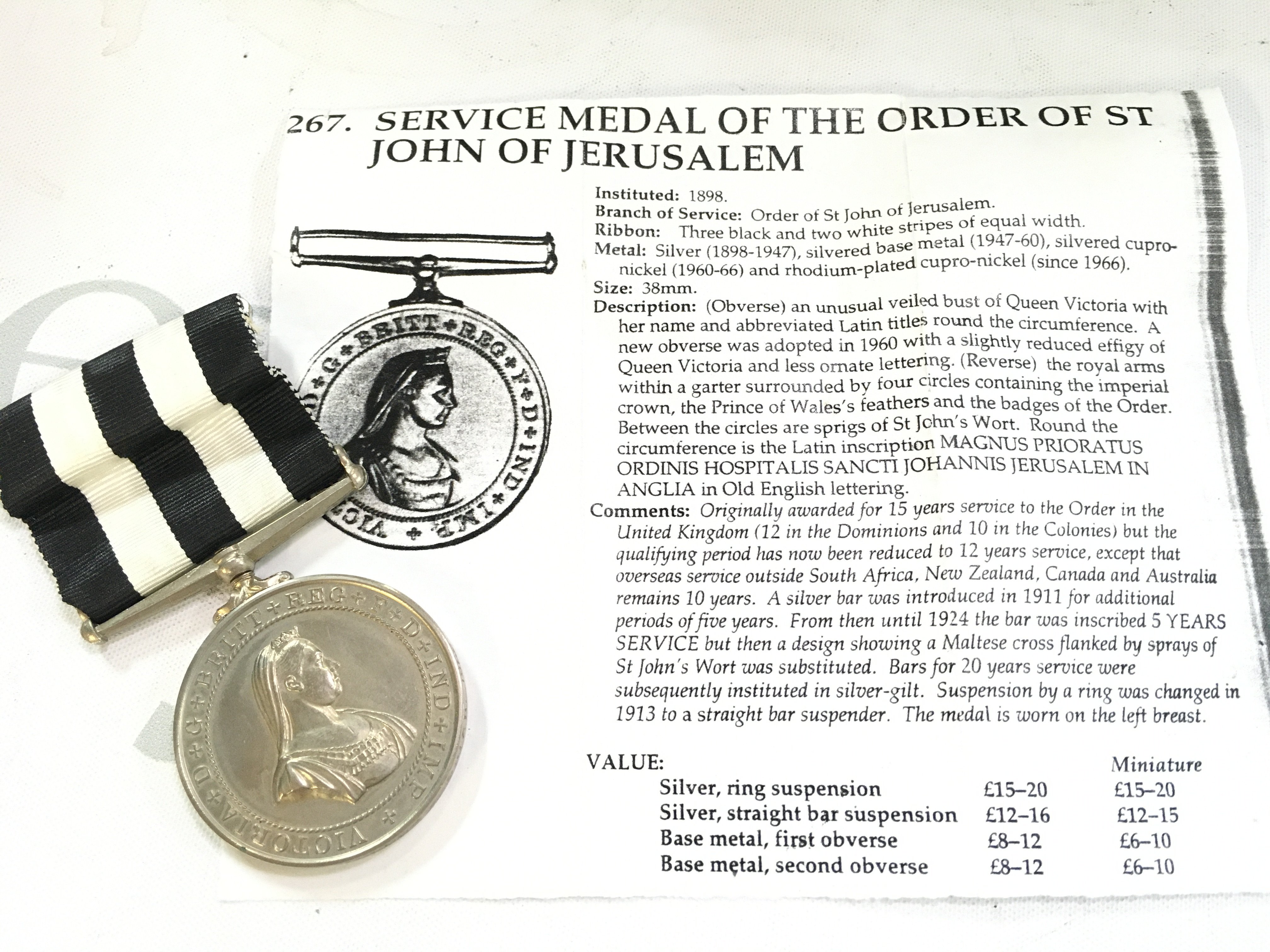 A Service Medal of the Order of St John of Jerusalem, postage category A. NO RESERVE