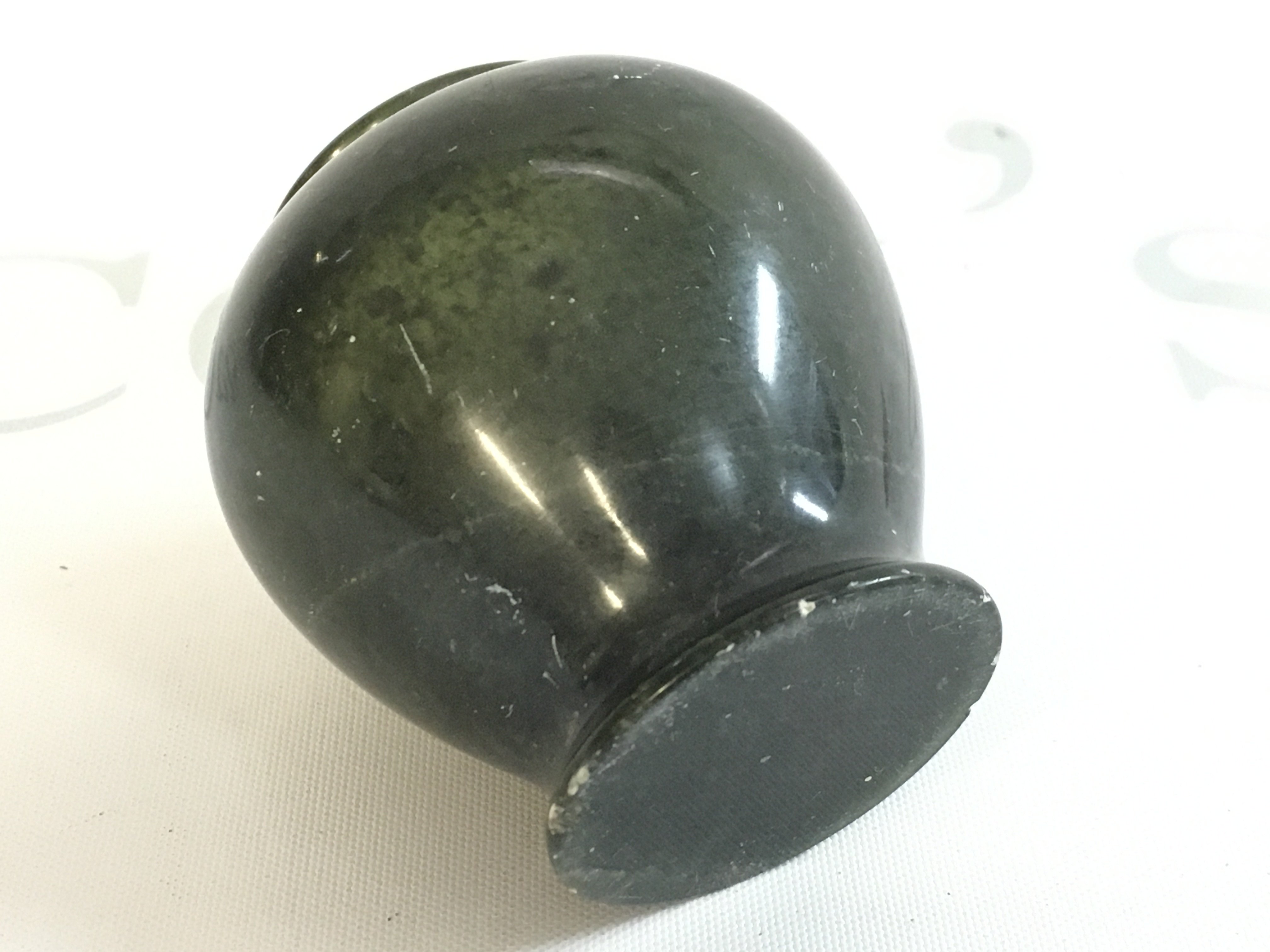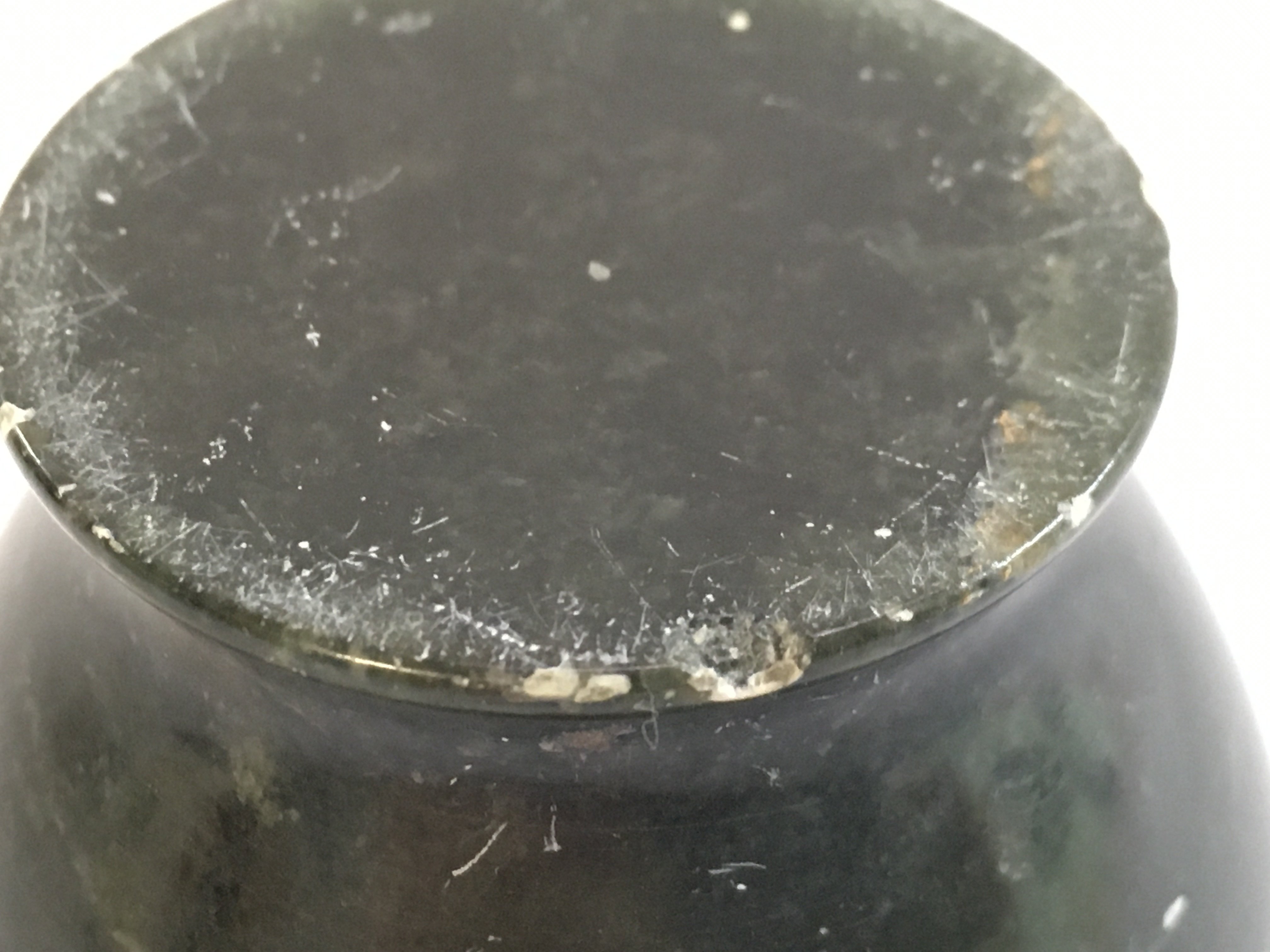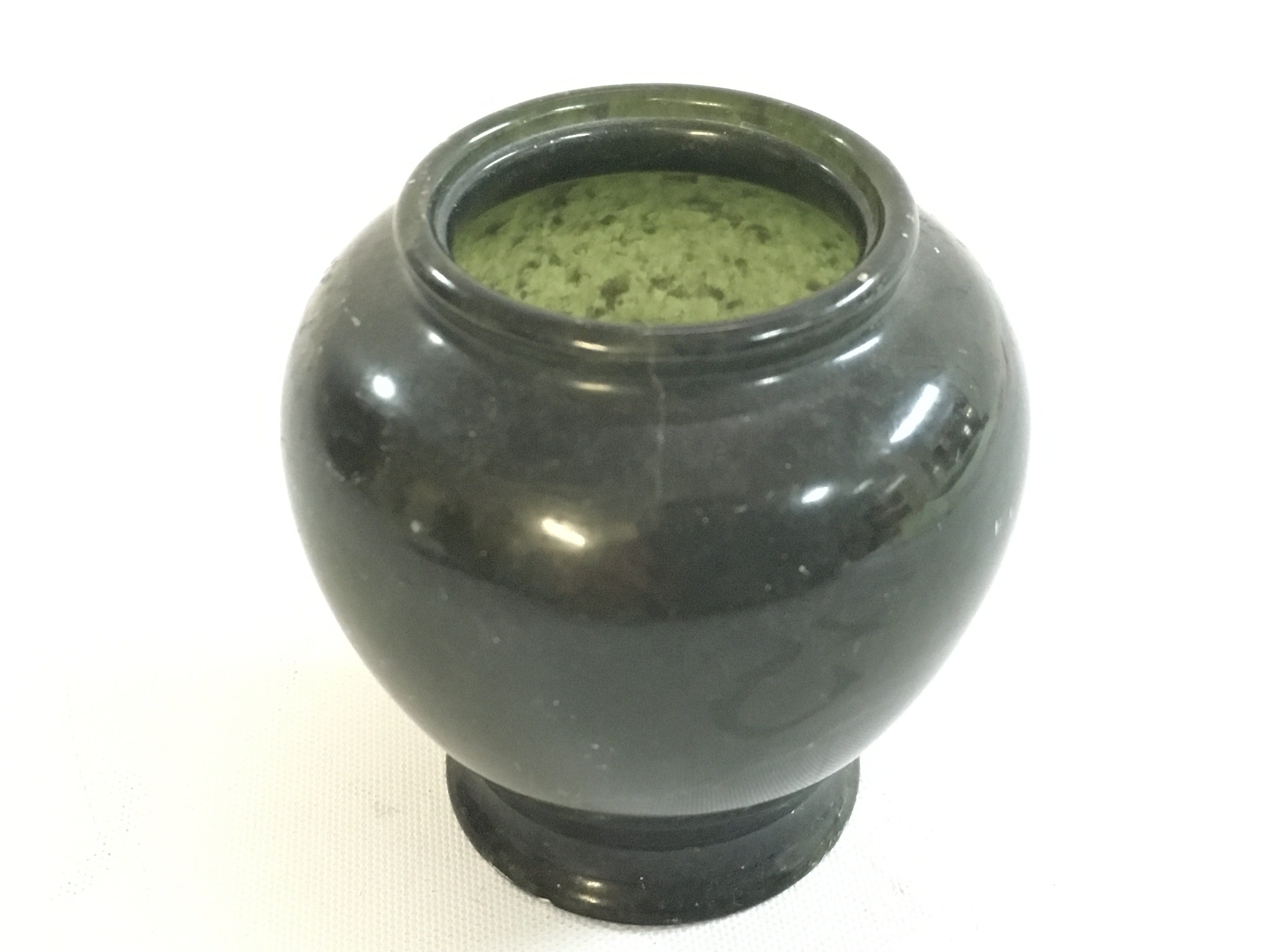 A Chinese miniature Spinach jade vase, 6cm tall this lot cannot be posted. Small chip on the base. NO RESERVE