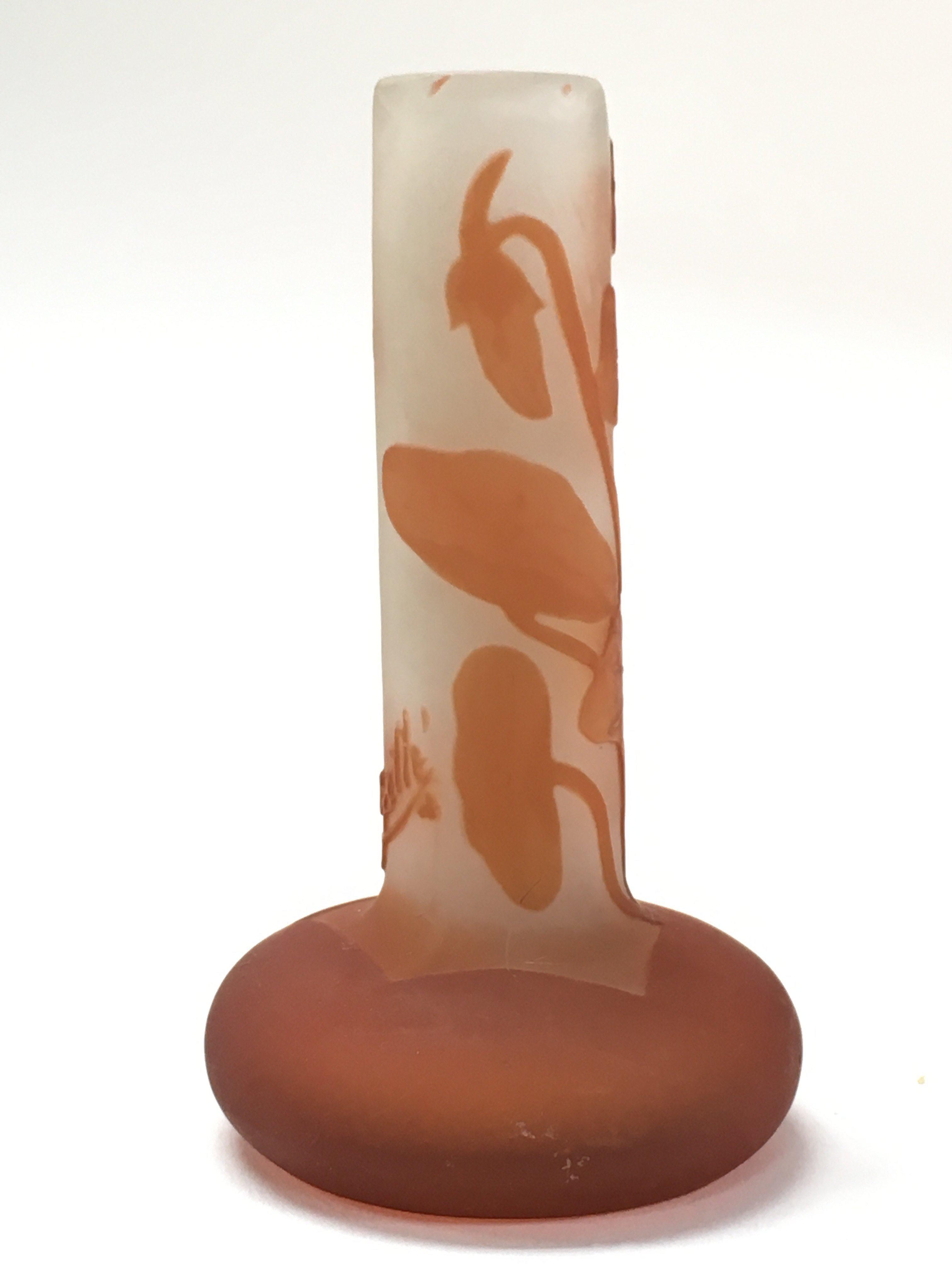 A Galle floral cameo glass vase , 10cm tall. This lot cannot be posted