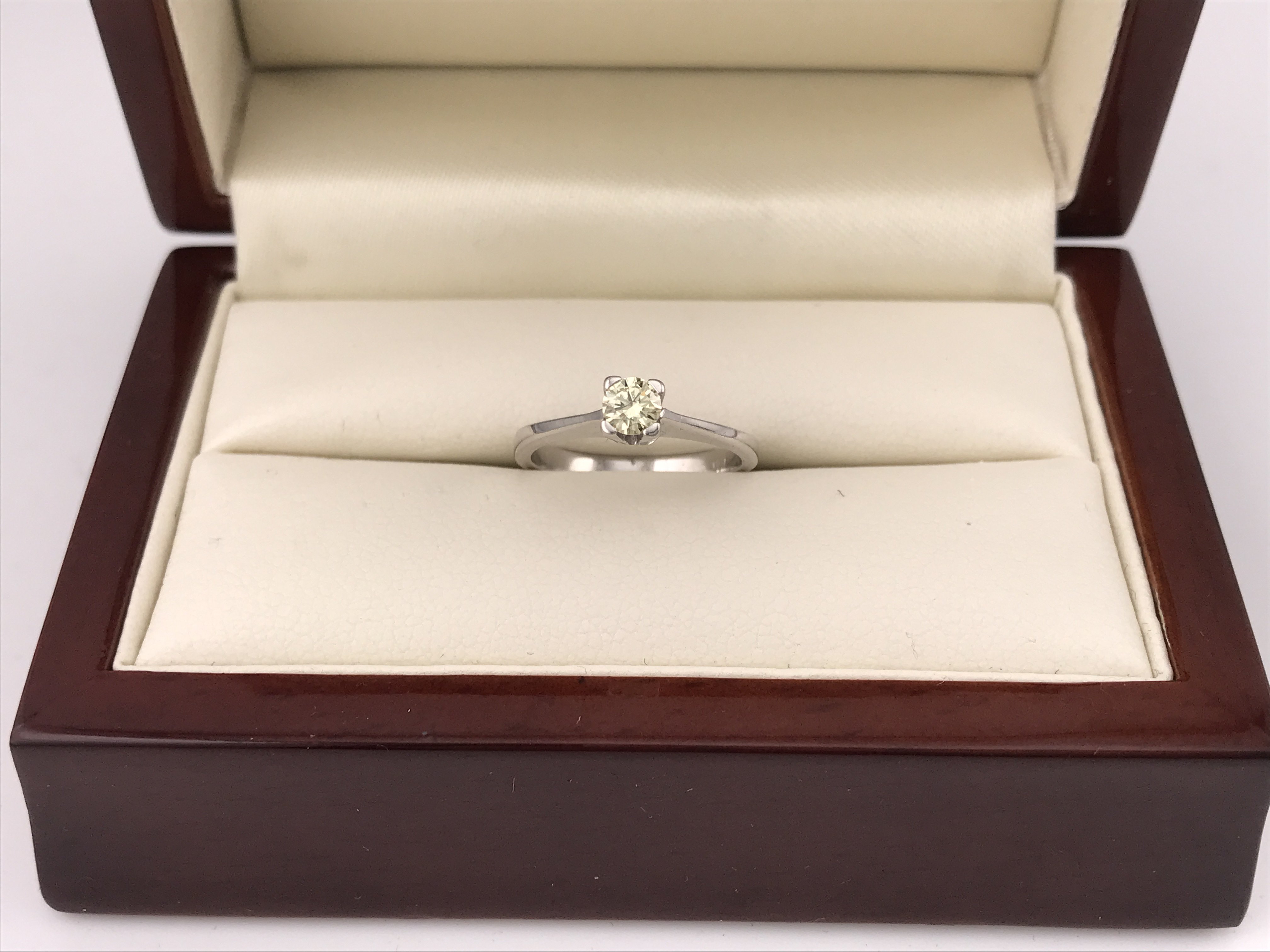 An 18ct white gold solitaire ring ,approx 0.25cts. Approx weight 2.4grams, size I.