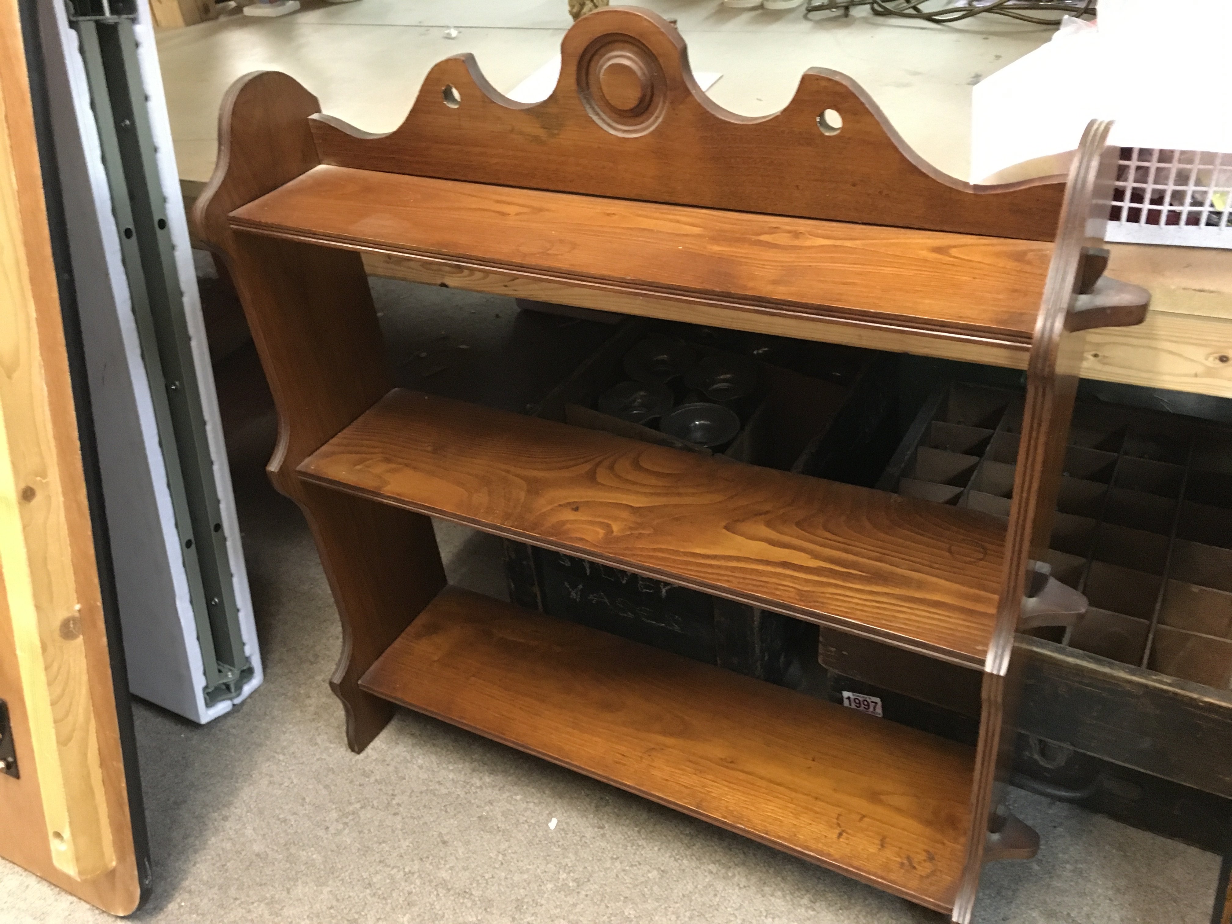 A three tier mahogany bookcase , 72cm tall 63cm wide.