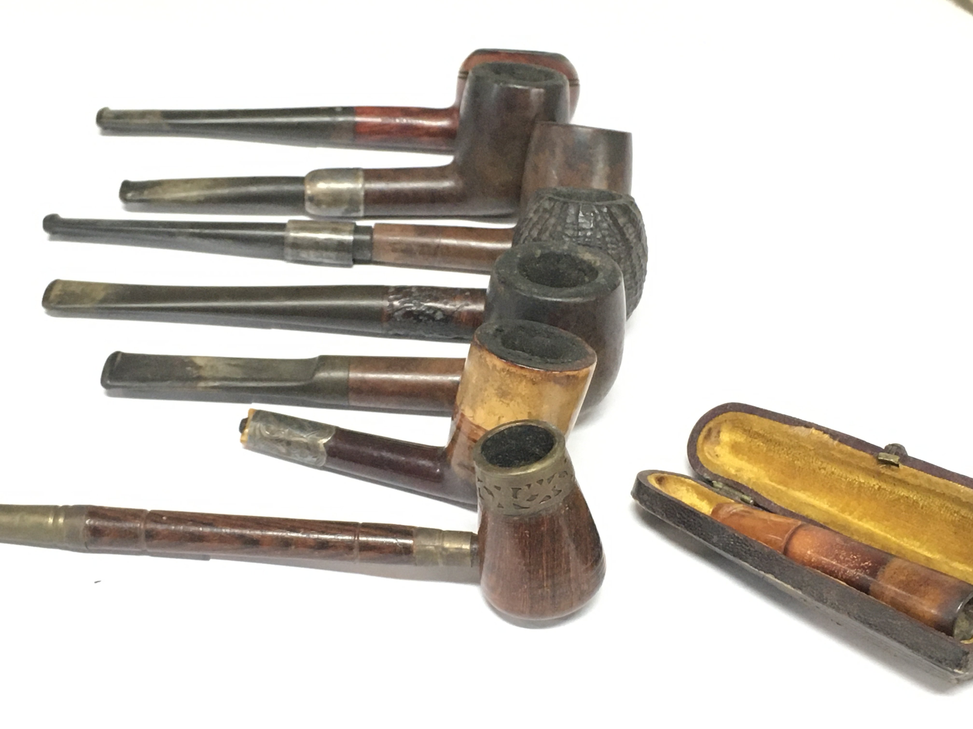 A Collection of pipes including a cased cheroot including some with silver hallmarked parts. Postage category B. NO RESERVE