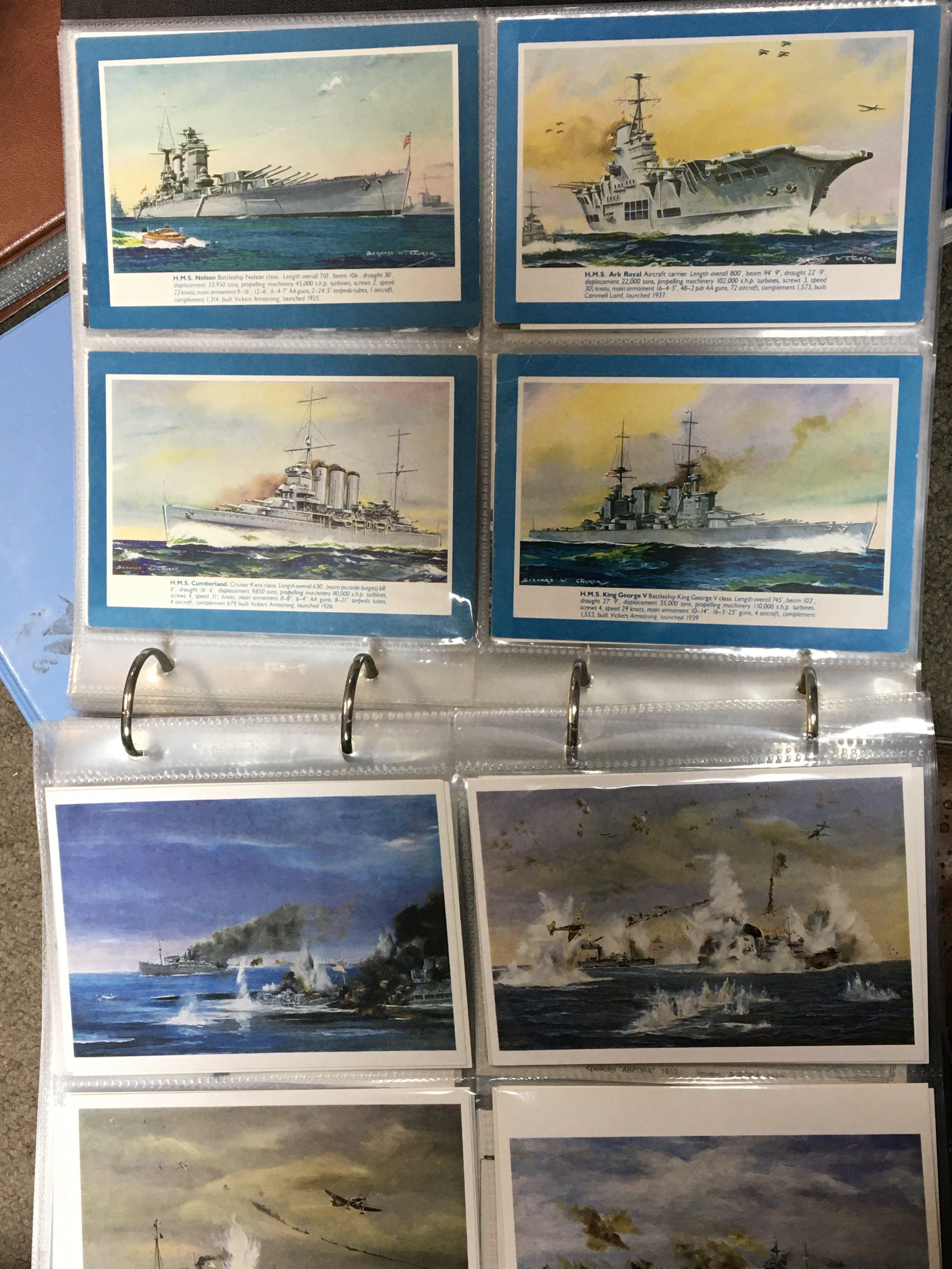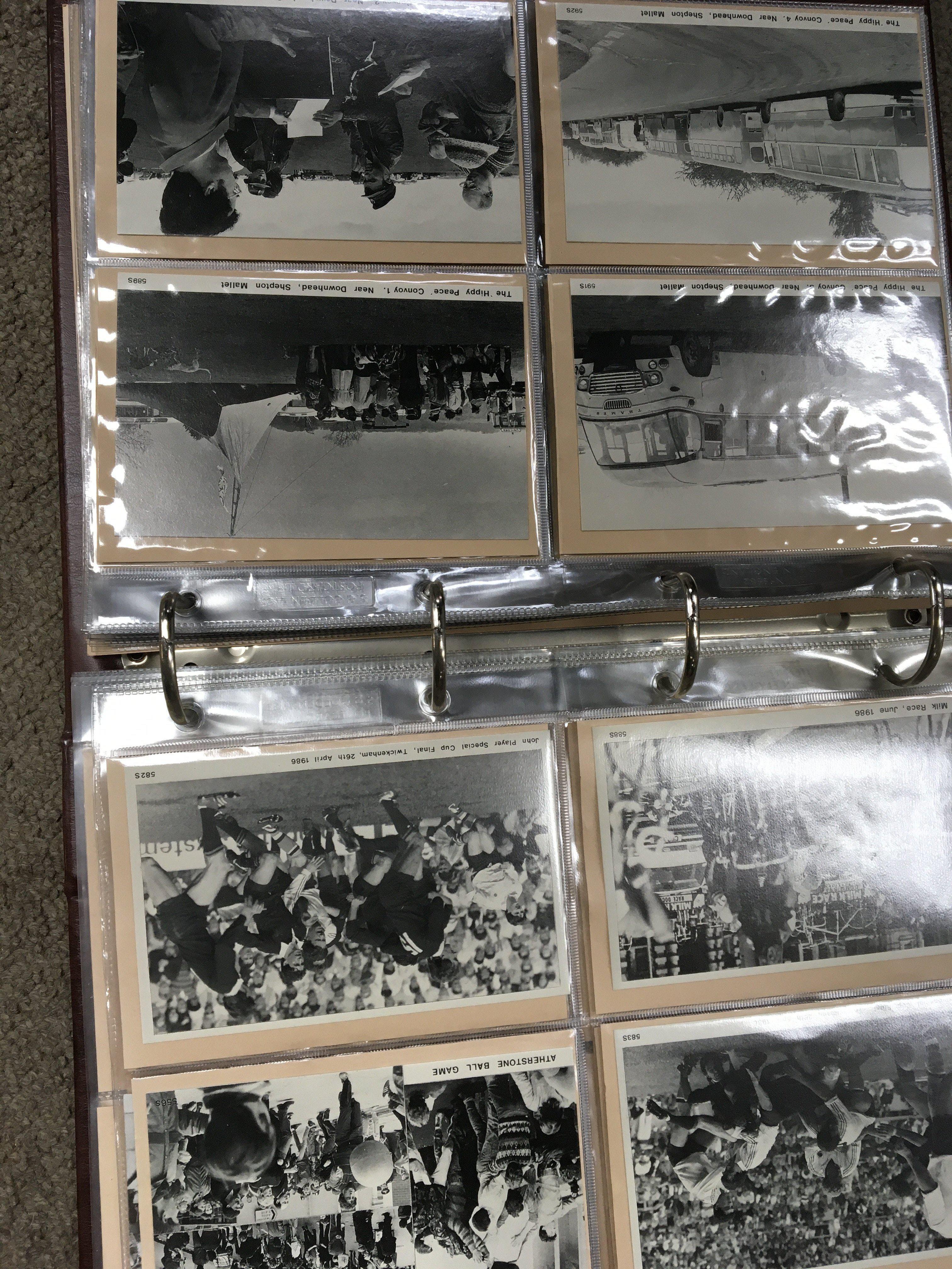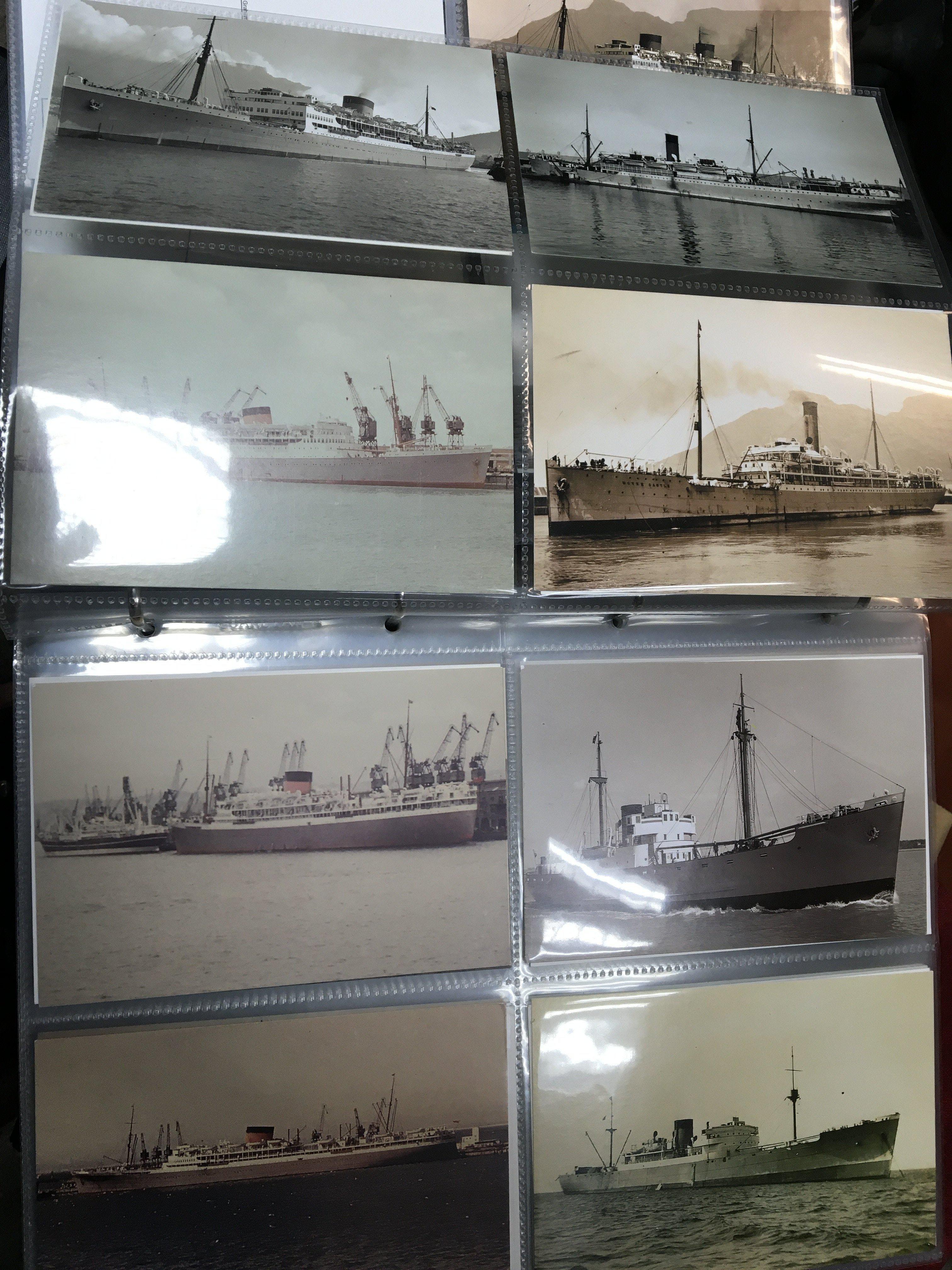 A box containing postcard albums including an interesting album of postcards social History of the 1980s Hippy Peace Convoy Sports The minors strike and many other albums including shipping and some Aviation. NO RESERVE