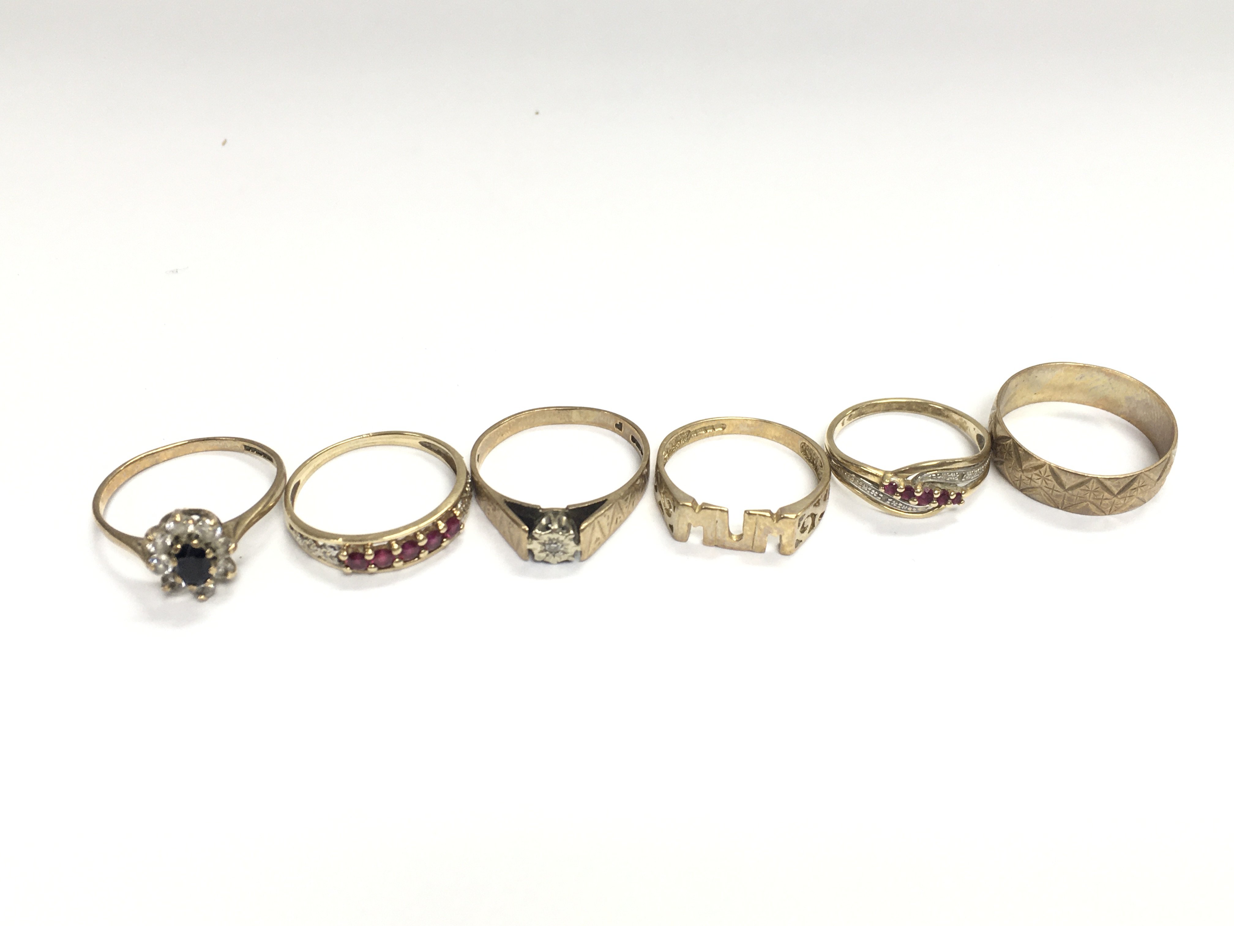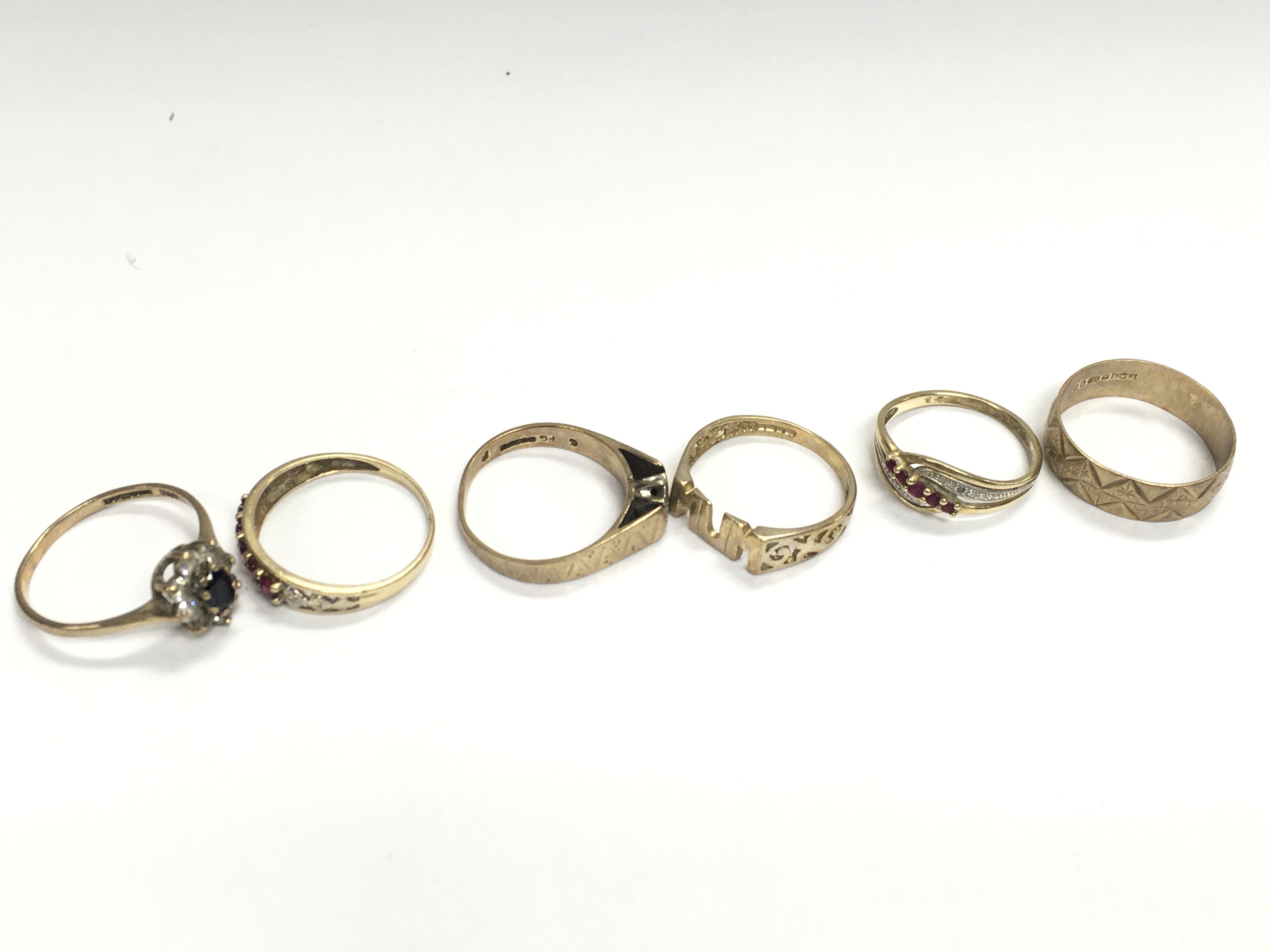 A collection of six 9ct gold rings. Total weight 10.64g Postage A