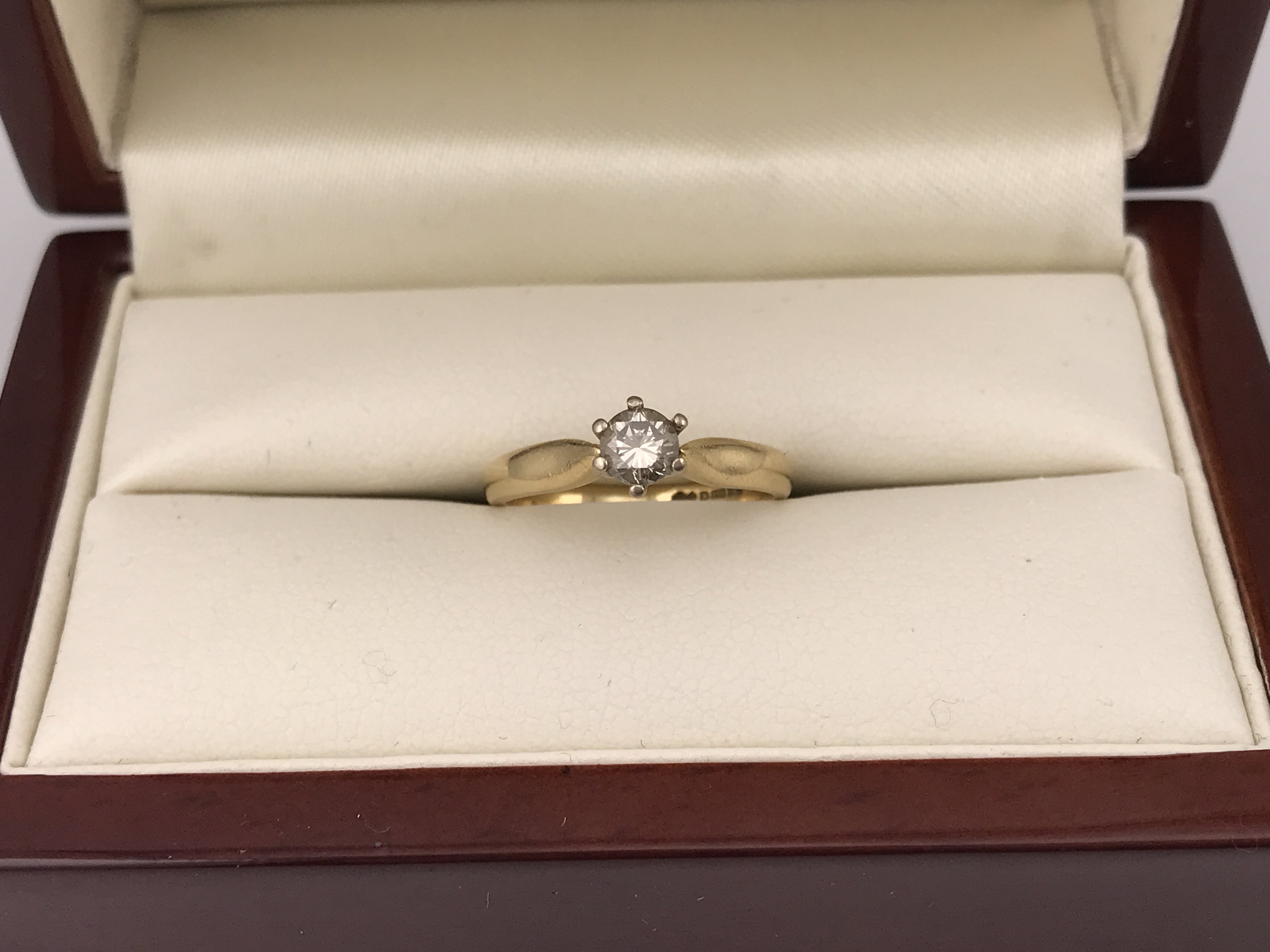 An 18ct yellow gold diamond set solitaire ring, approx 0.30cts. Approx weight 3.24 grams, approx size K.