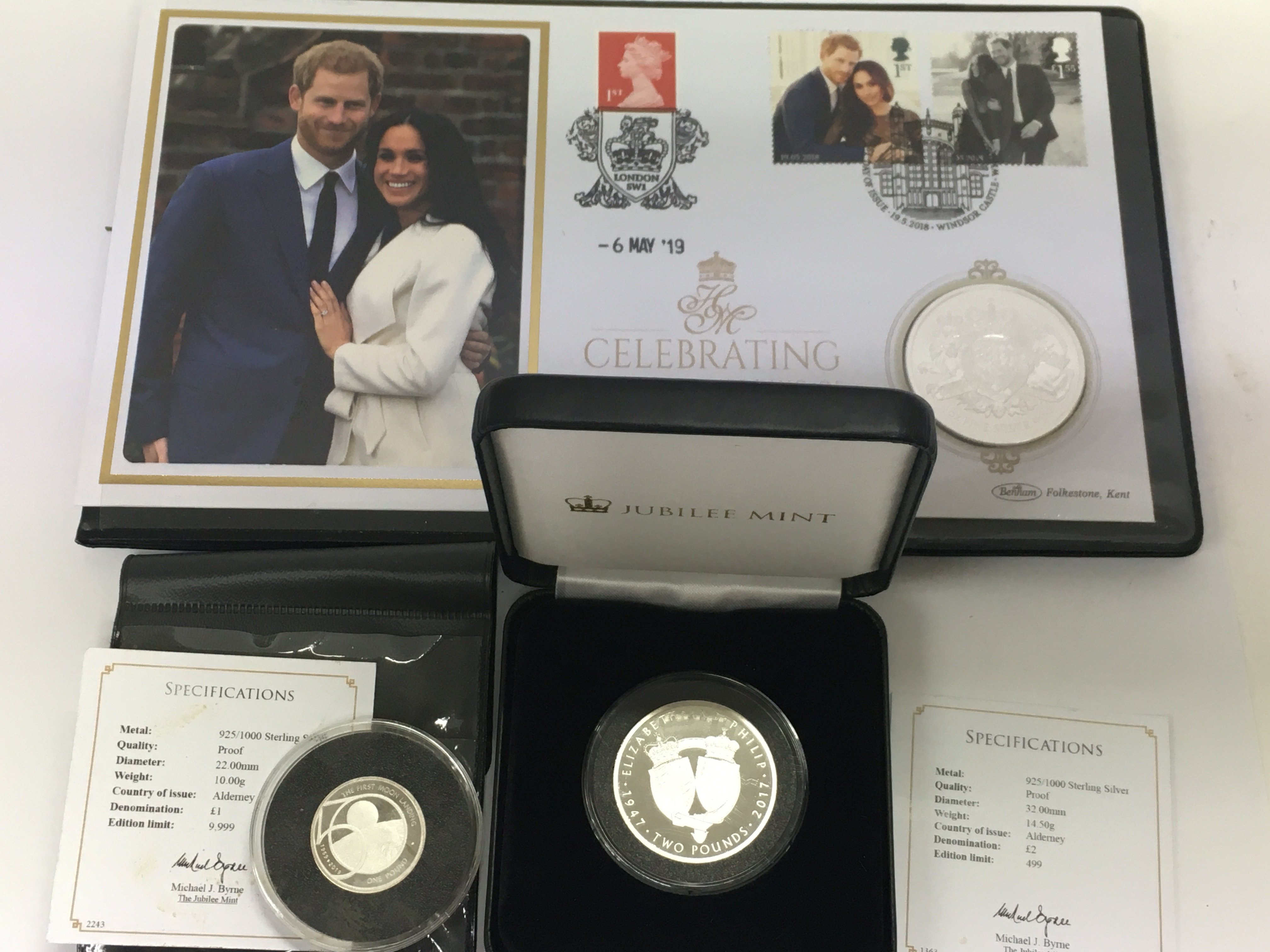Collection of 3 silver coins including a 2019 1oz silver cover. Postage B