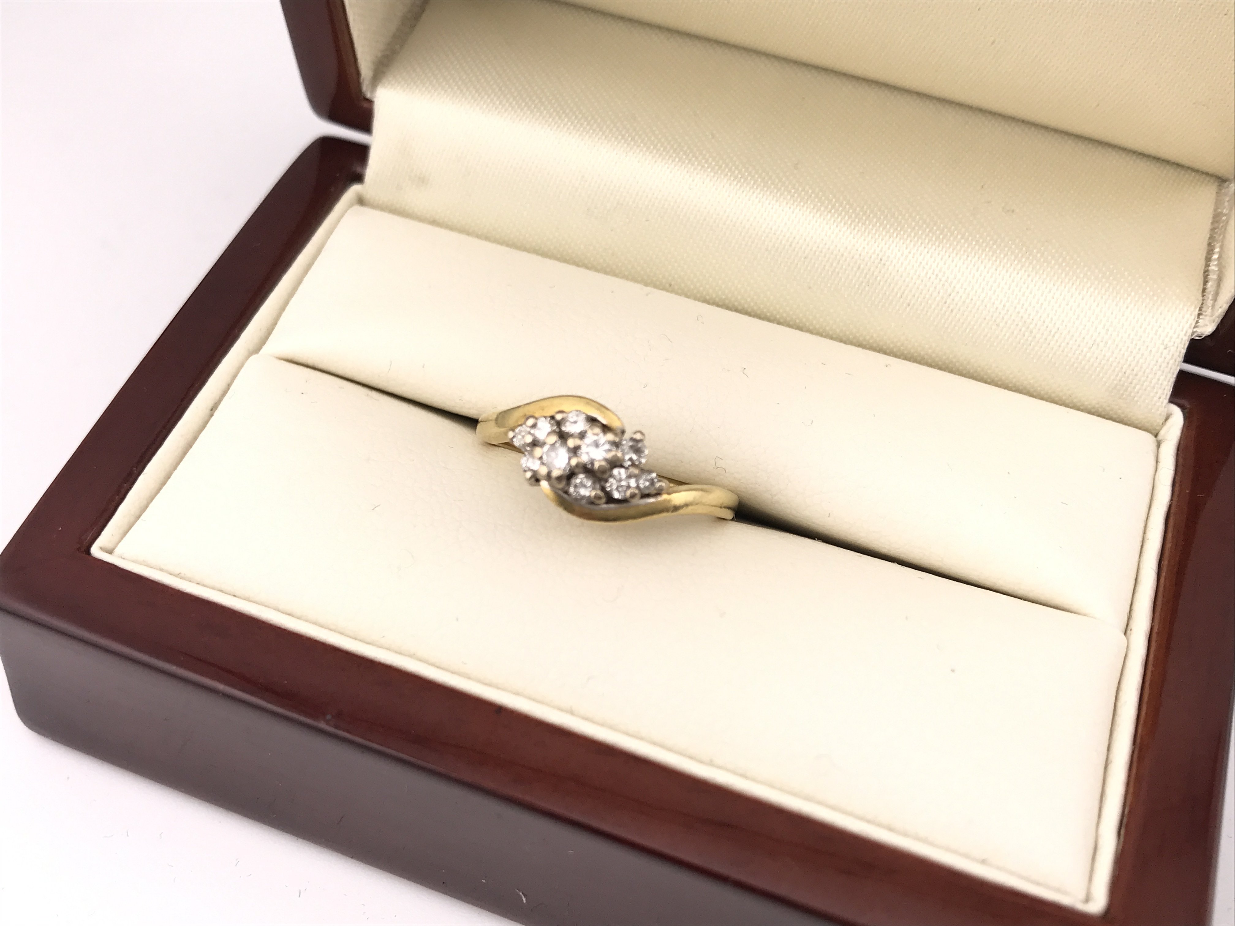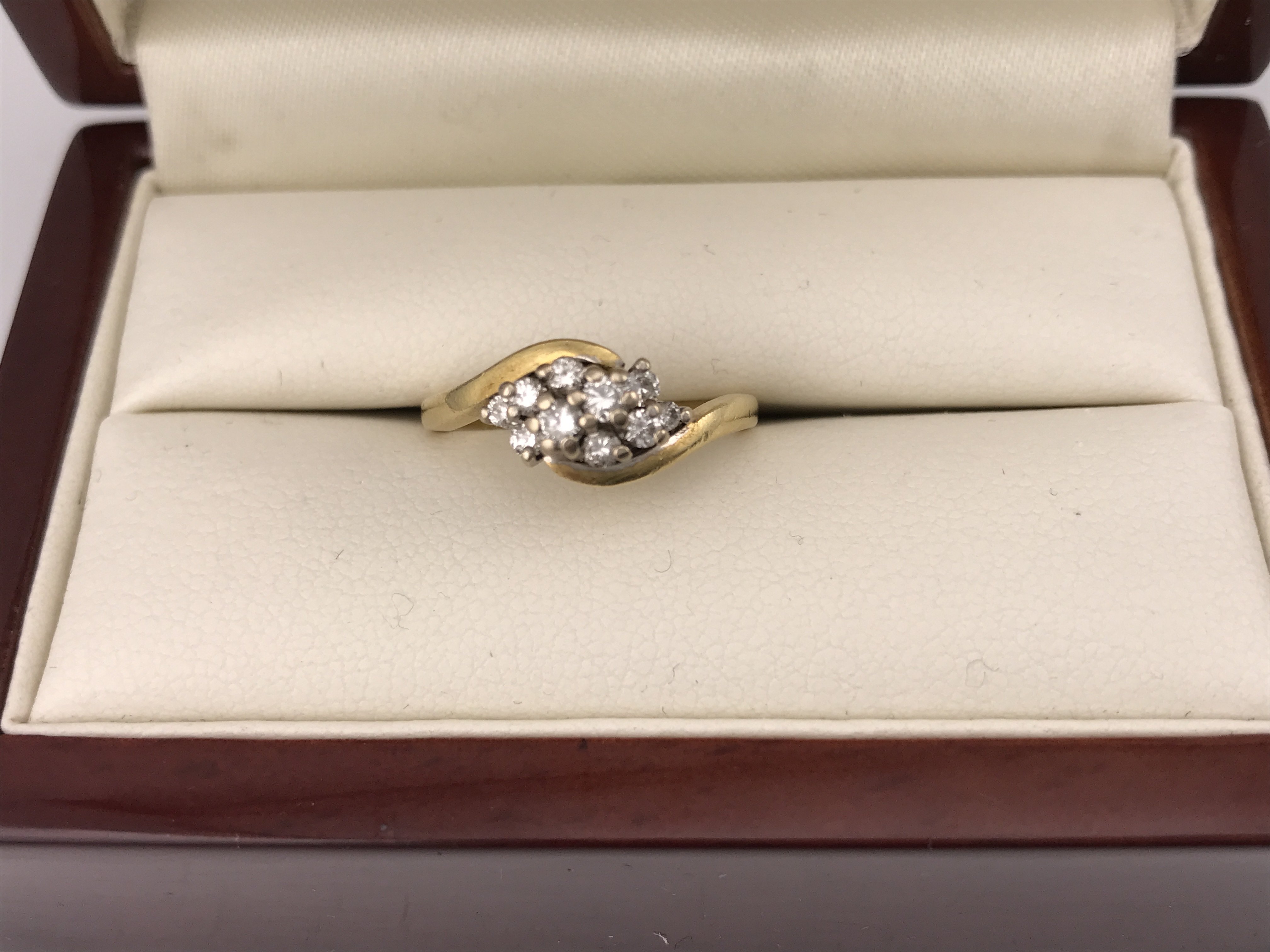 An 18ct diamond crossover cluster style ring. Approx 4.68 grams, size M1/2.