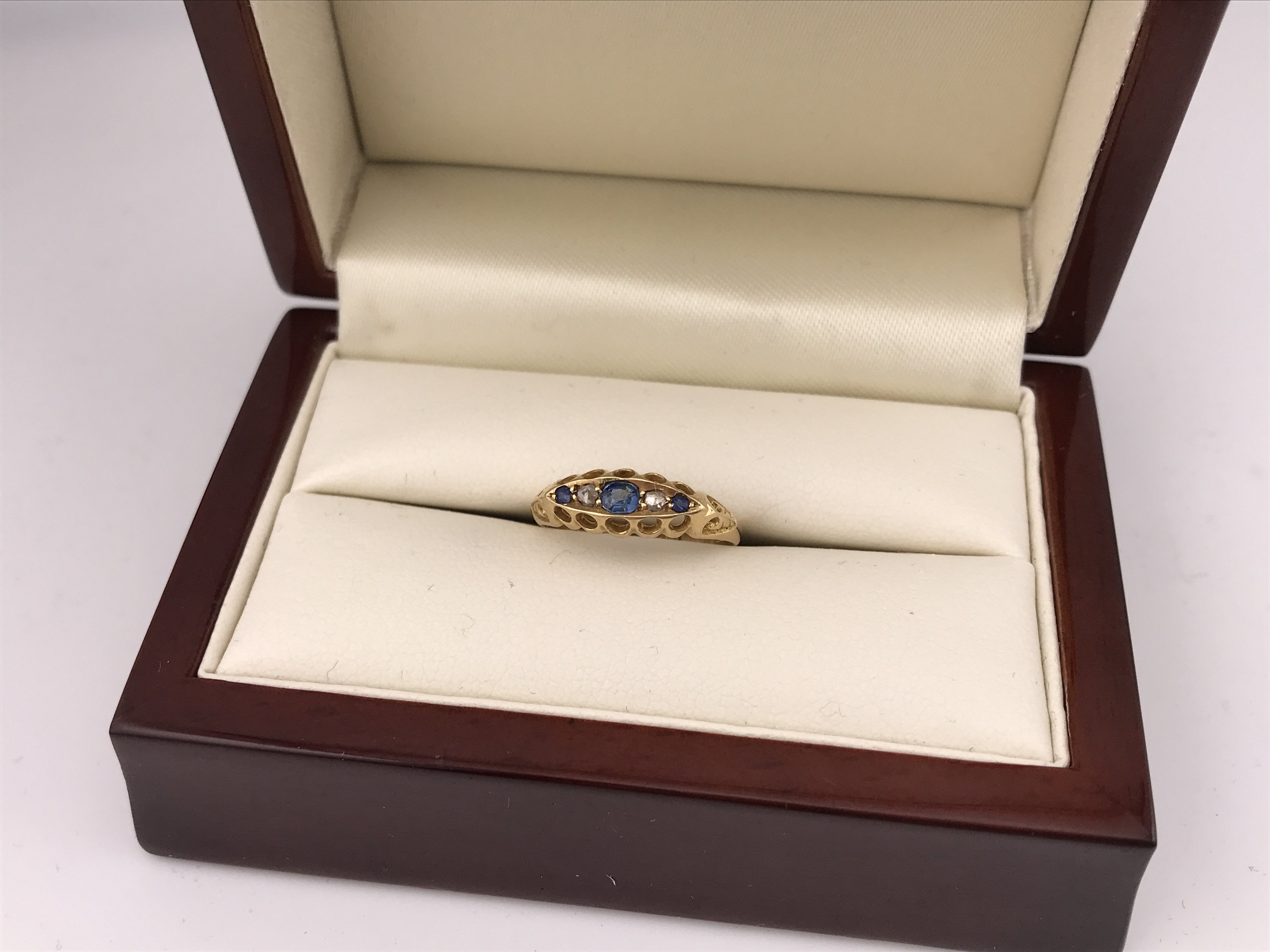 An 18ct diamond and sapphire set ring, approx size N. Approx weight 2.45 grams.