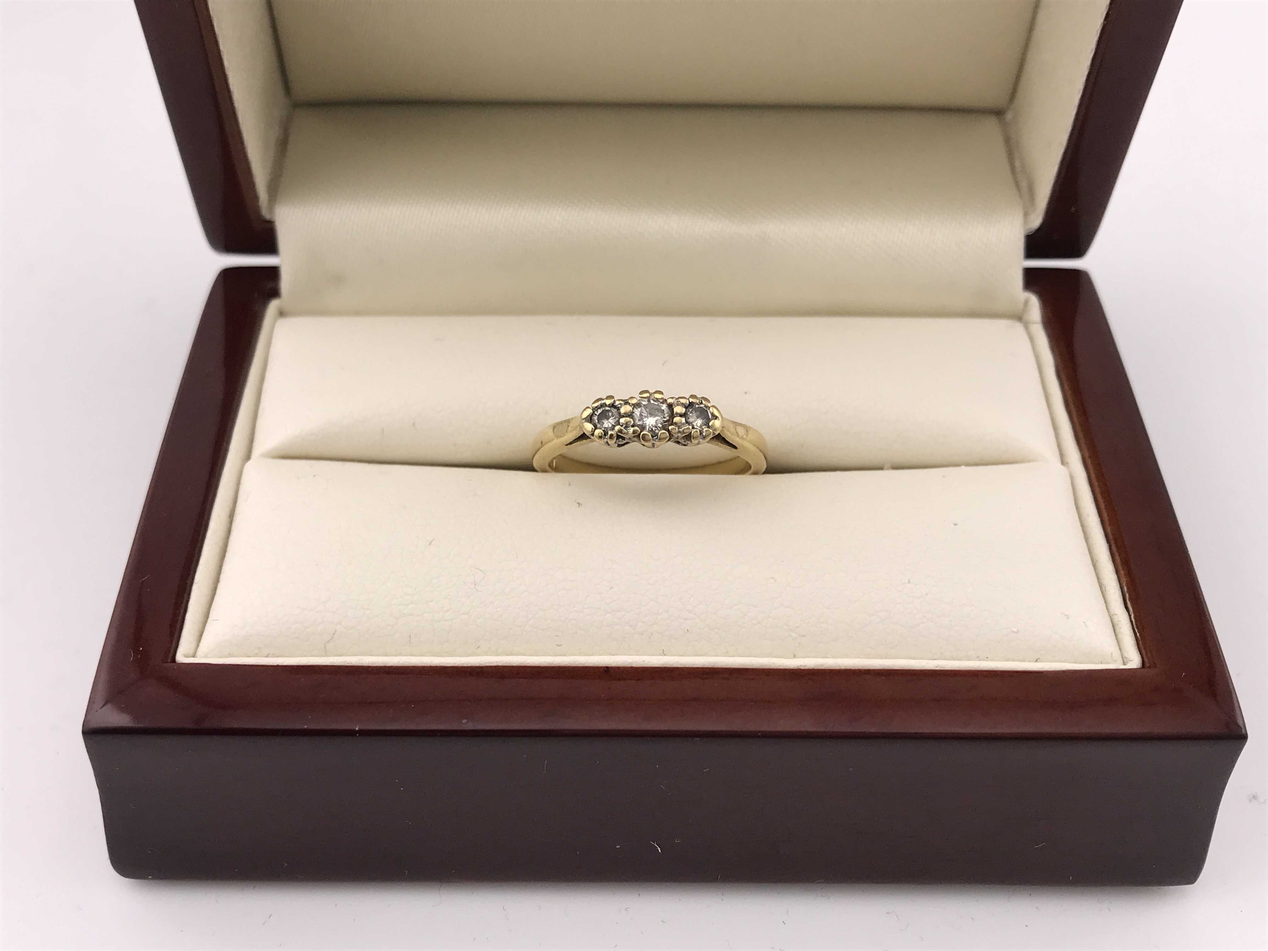 An 18ct gold 3 stone diamond ring. approx weight 3.04 grams, approx size L.