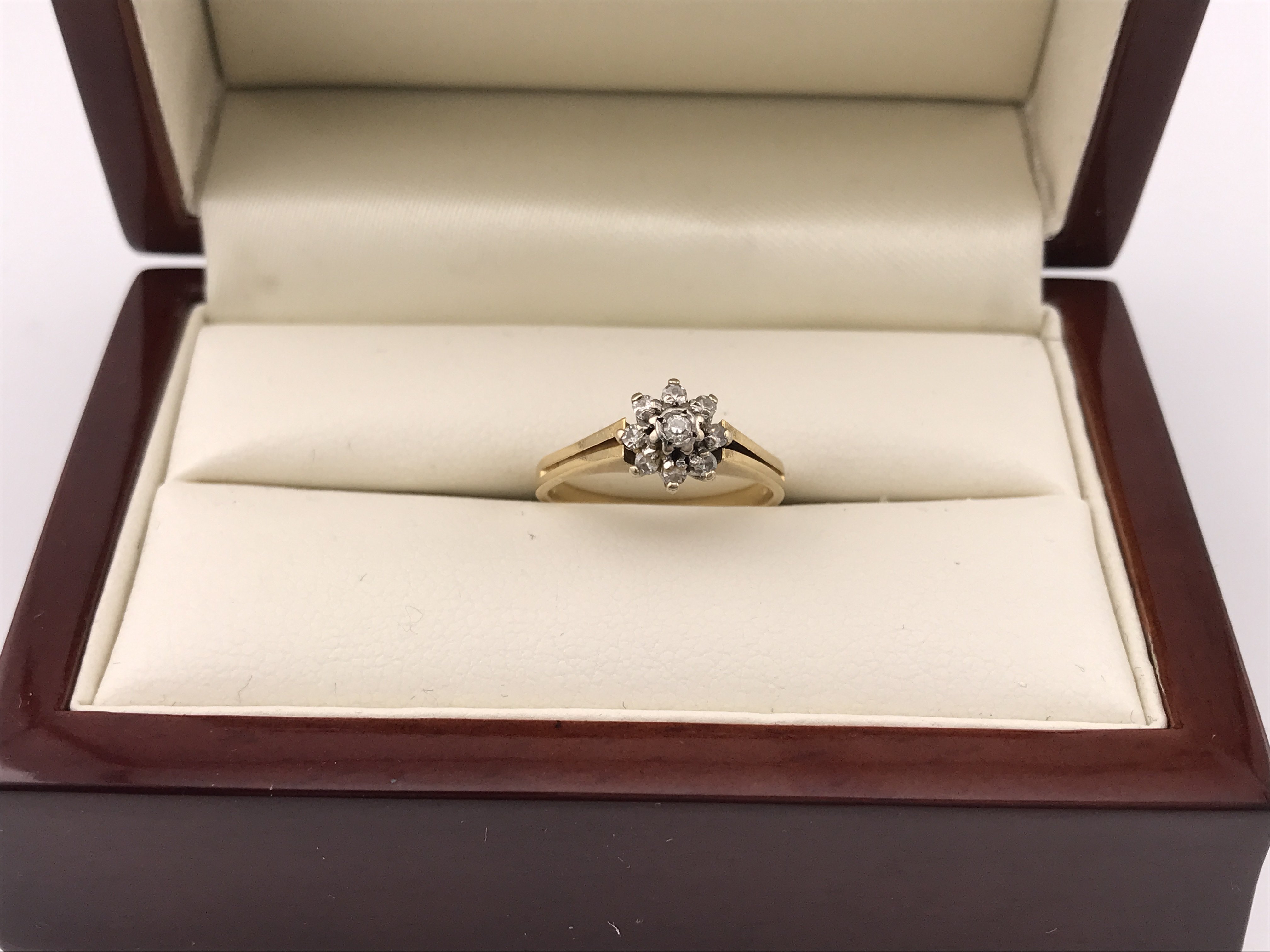 An 18ct small diamond cluster ring. Approx size K, approx weight 3 grams.