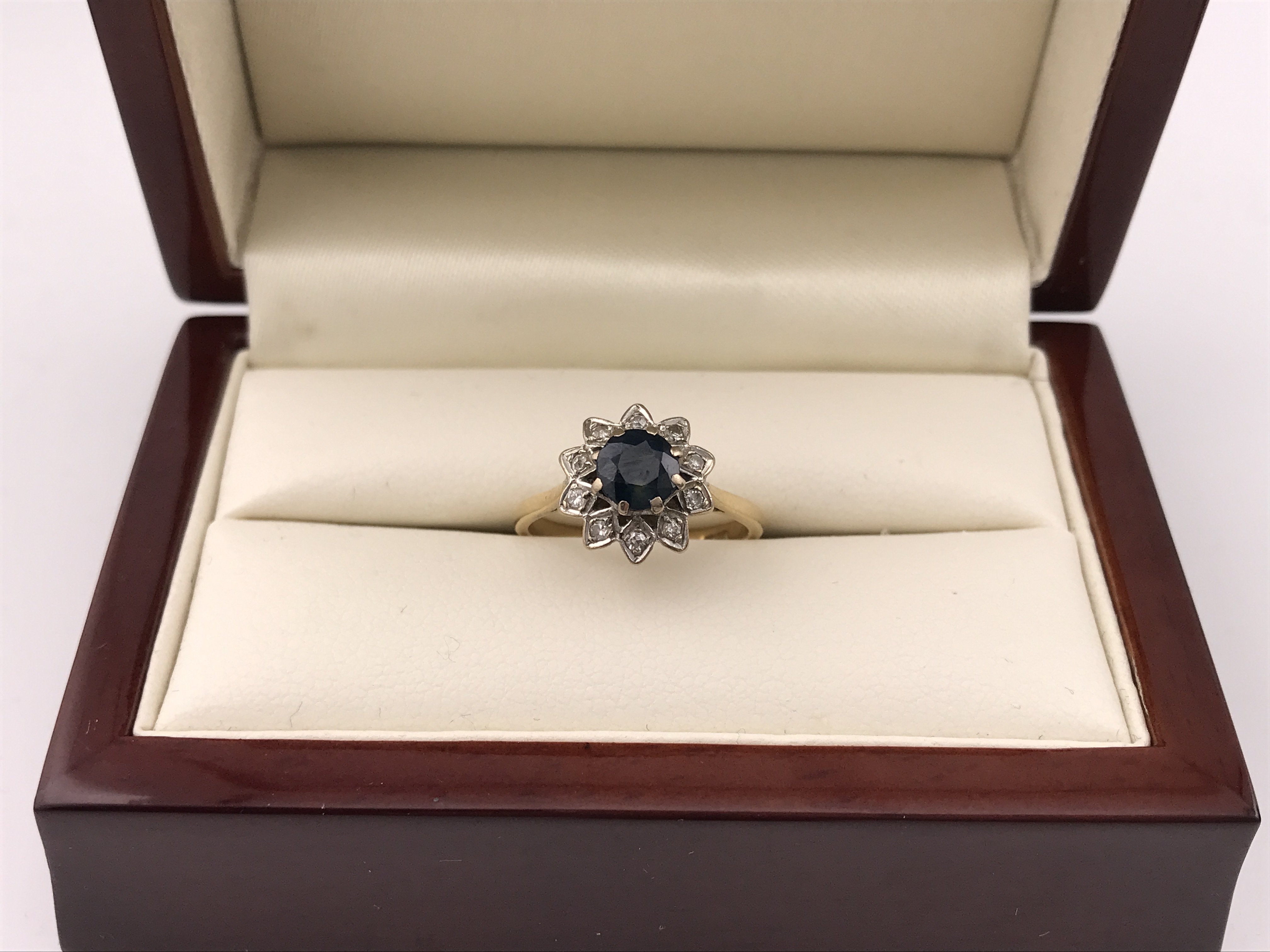 An 18ct diamond and sapphire cluster ring. Approx weight 4.07 grams, approx size N.