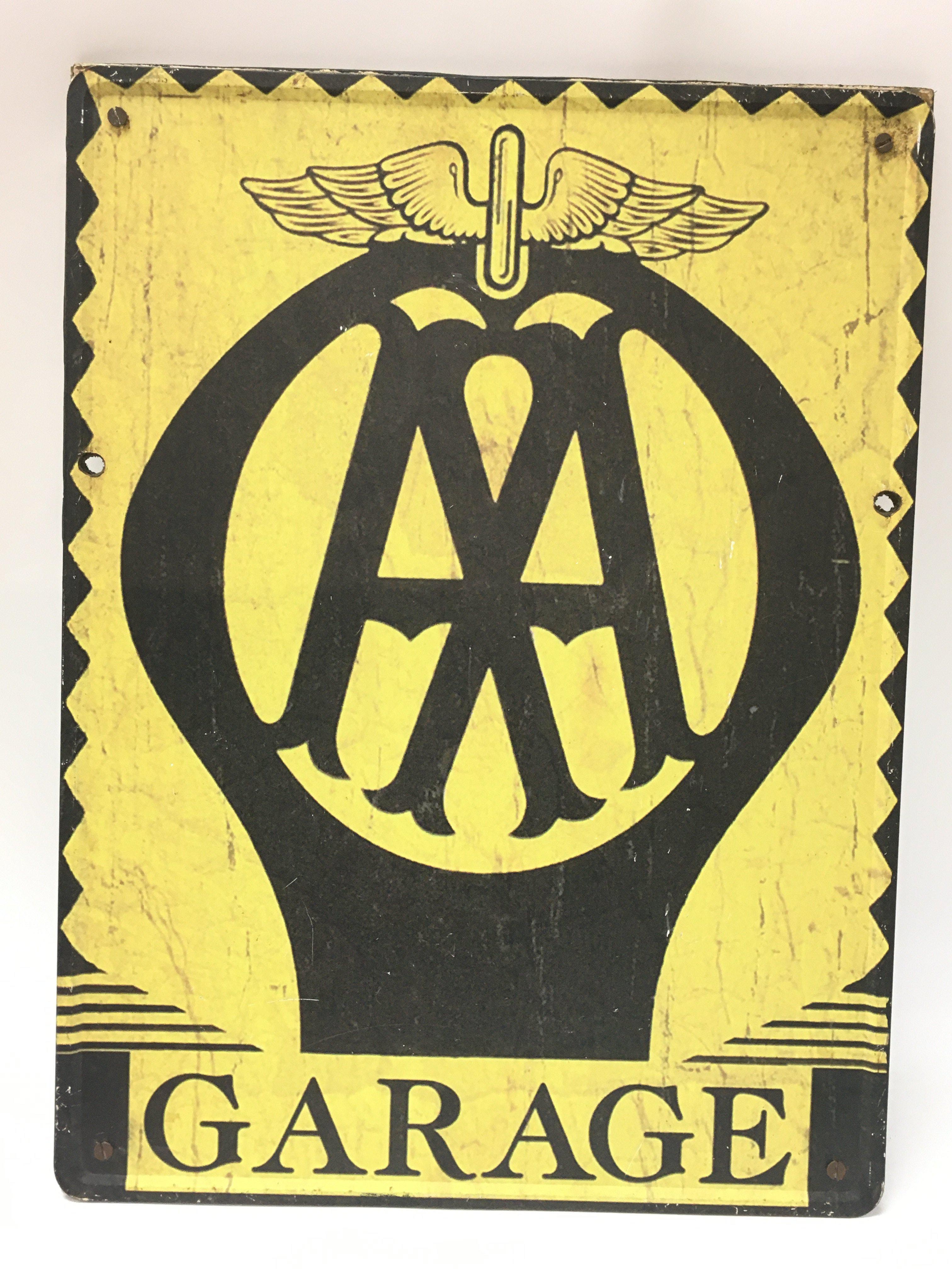 A tin AA garage sign backed on plywood dimensions 30x40cm. Postage category B