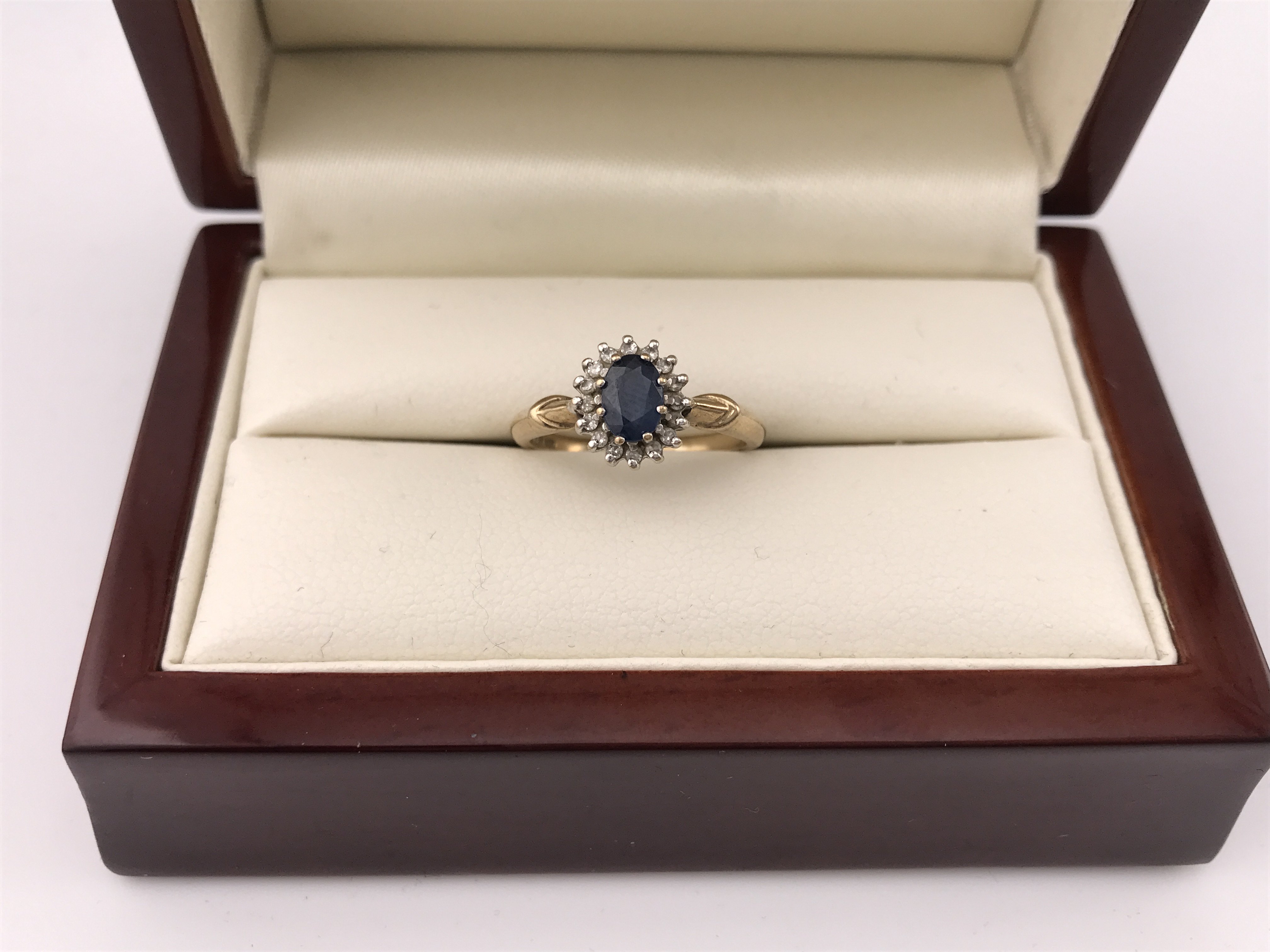 A 9ct diamond and sapphire ring. Approx weight 2.27 grams, approx size K.