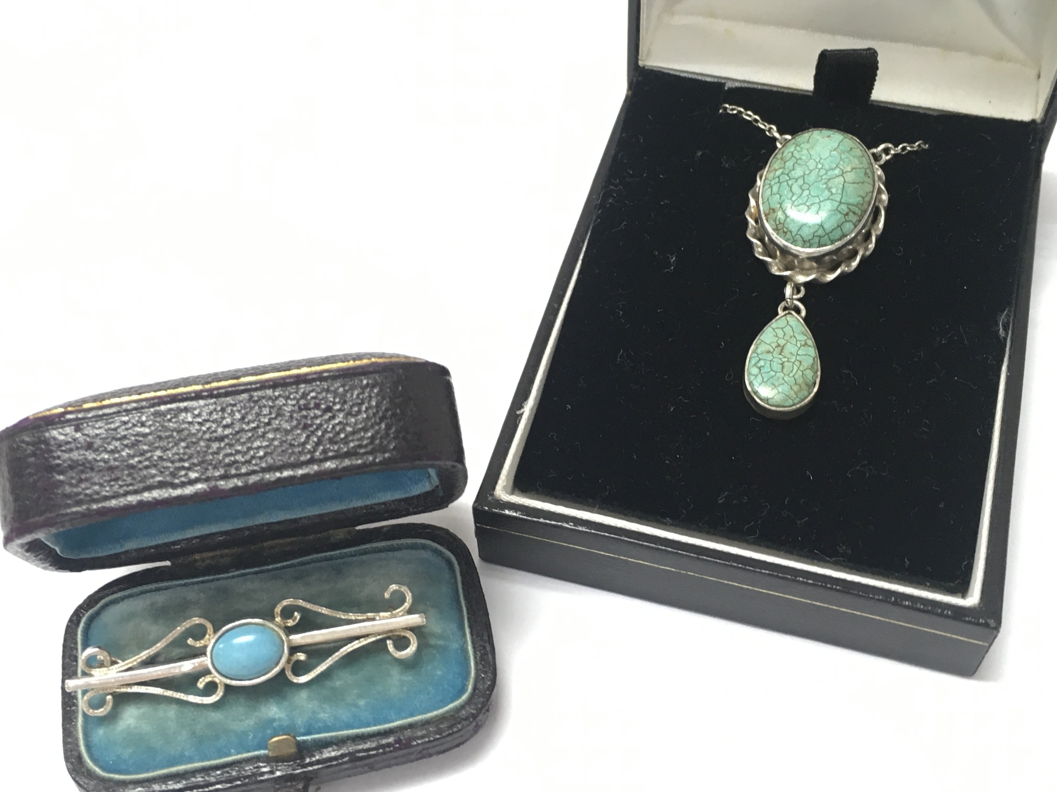 Silver Edwardian pendant and a silver Charles Horner stone pendant with a silver chain. Postage cat A