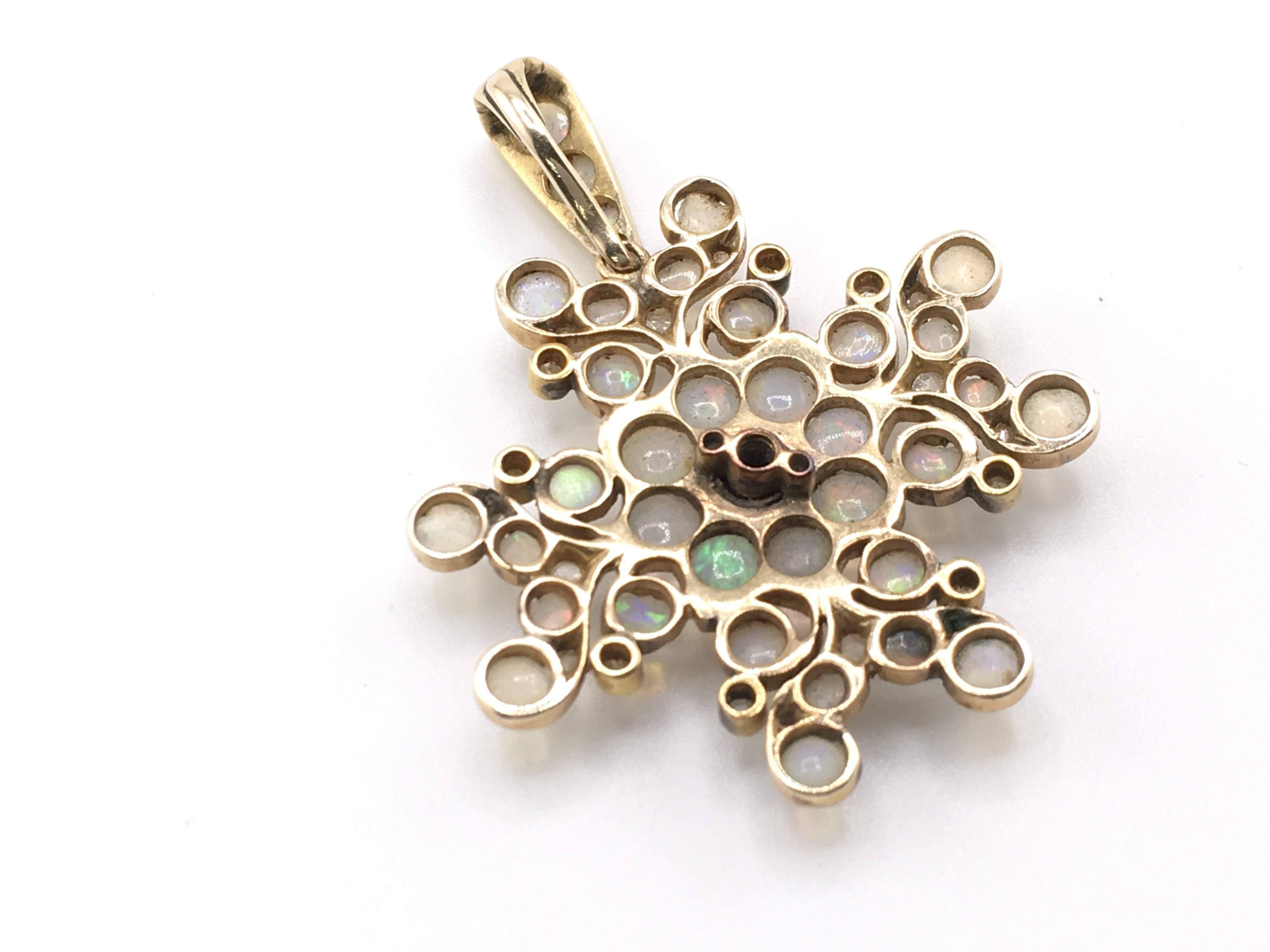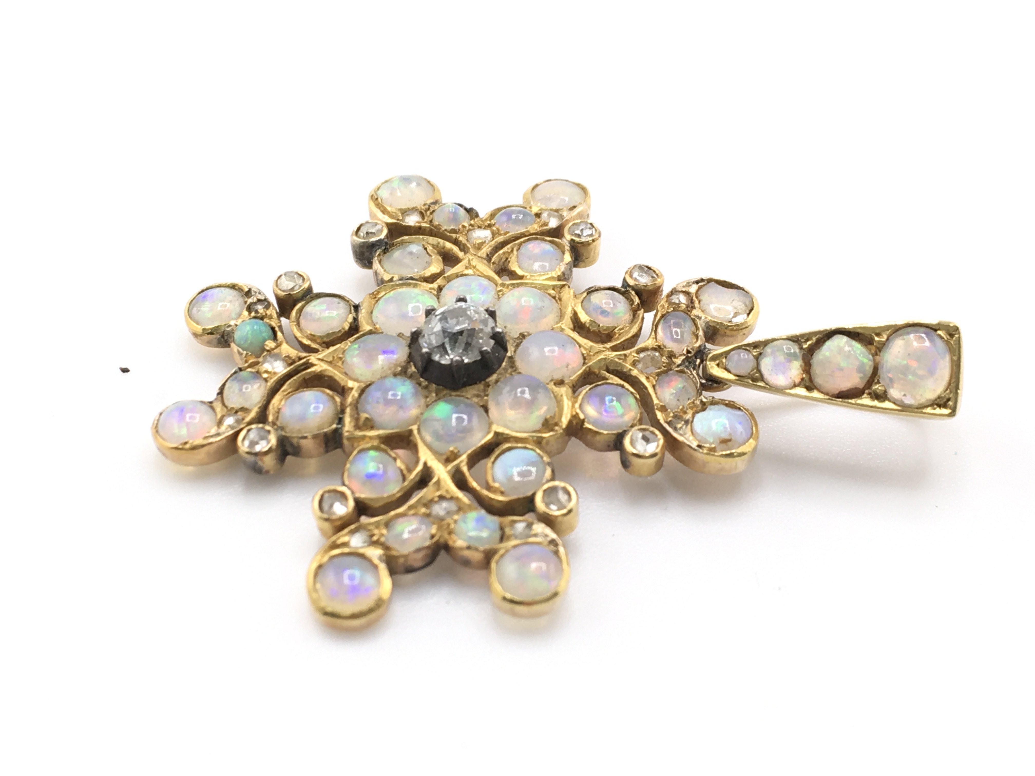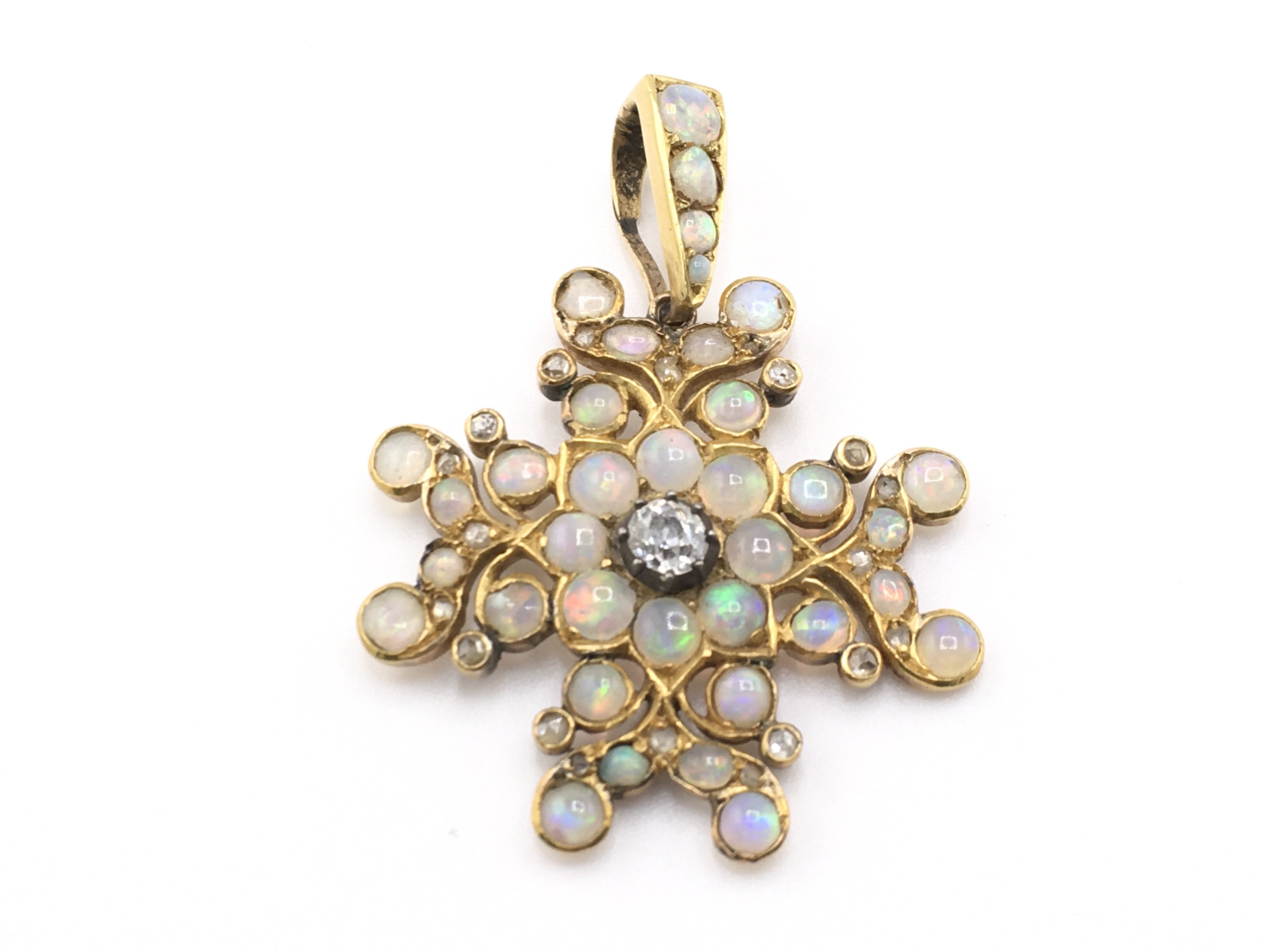 An Edwardian high carat opal star pendant set with central diamond. Approximately 0.35/0.40 ct.Postage B
