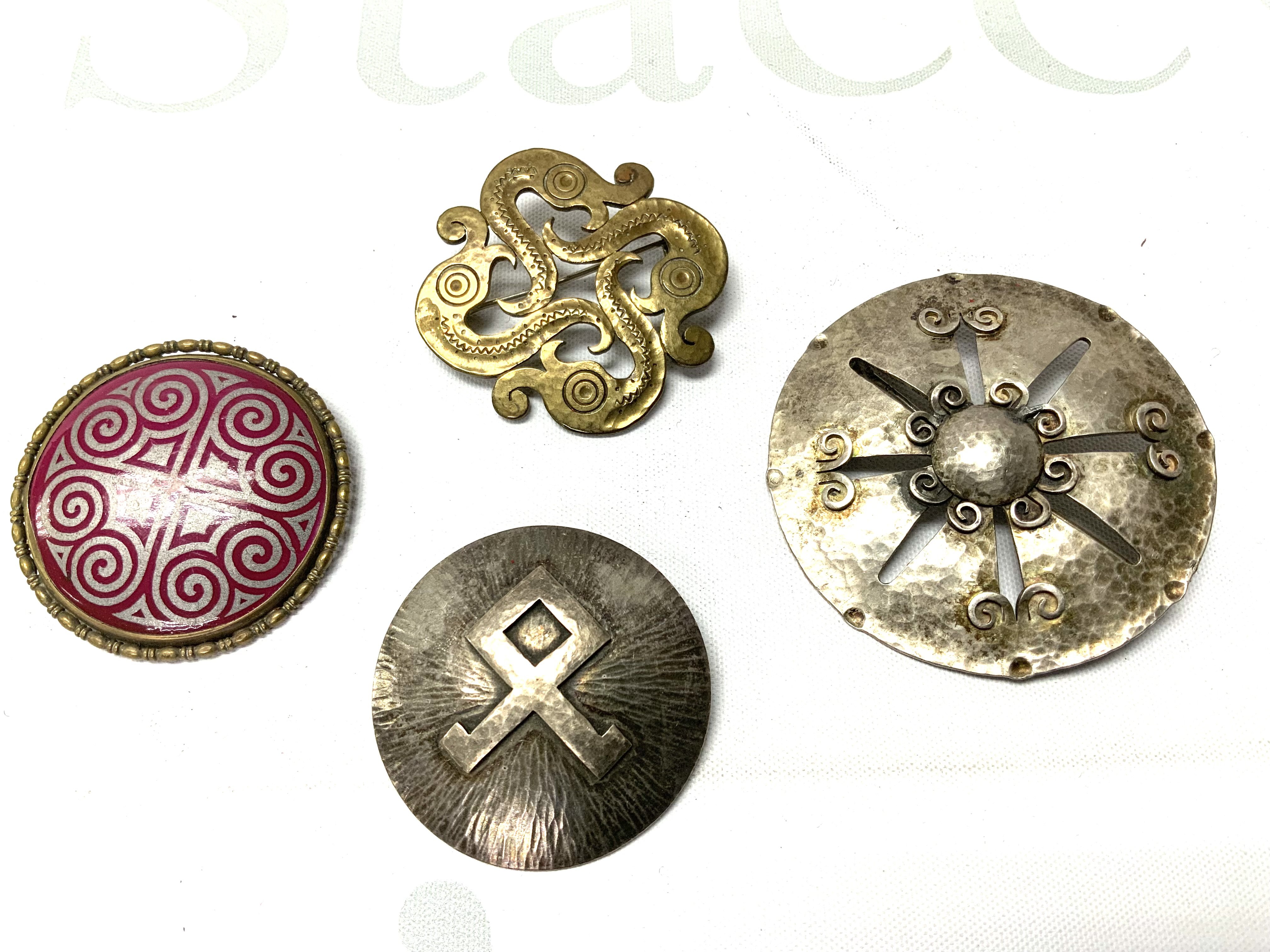 4 Vintage arts and crafts brooches including a Norwegian .800 silver example. (A). NO RESERVE