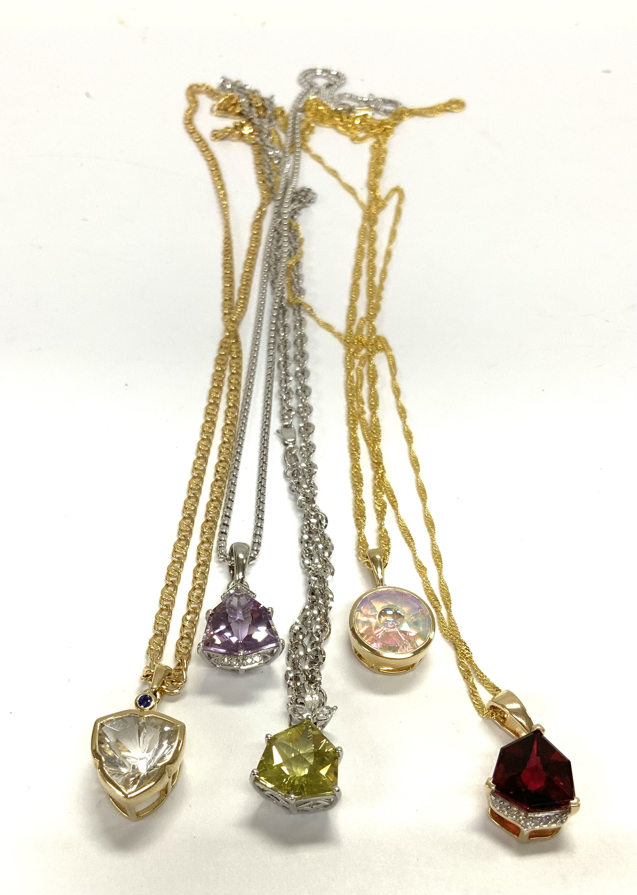 5 9ct gold and stone set pendants and chains. Total weight. 32.5g