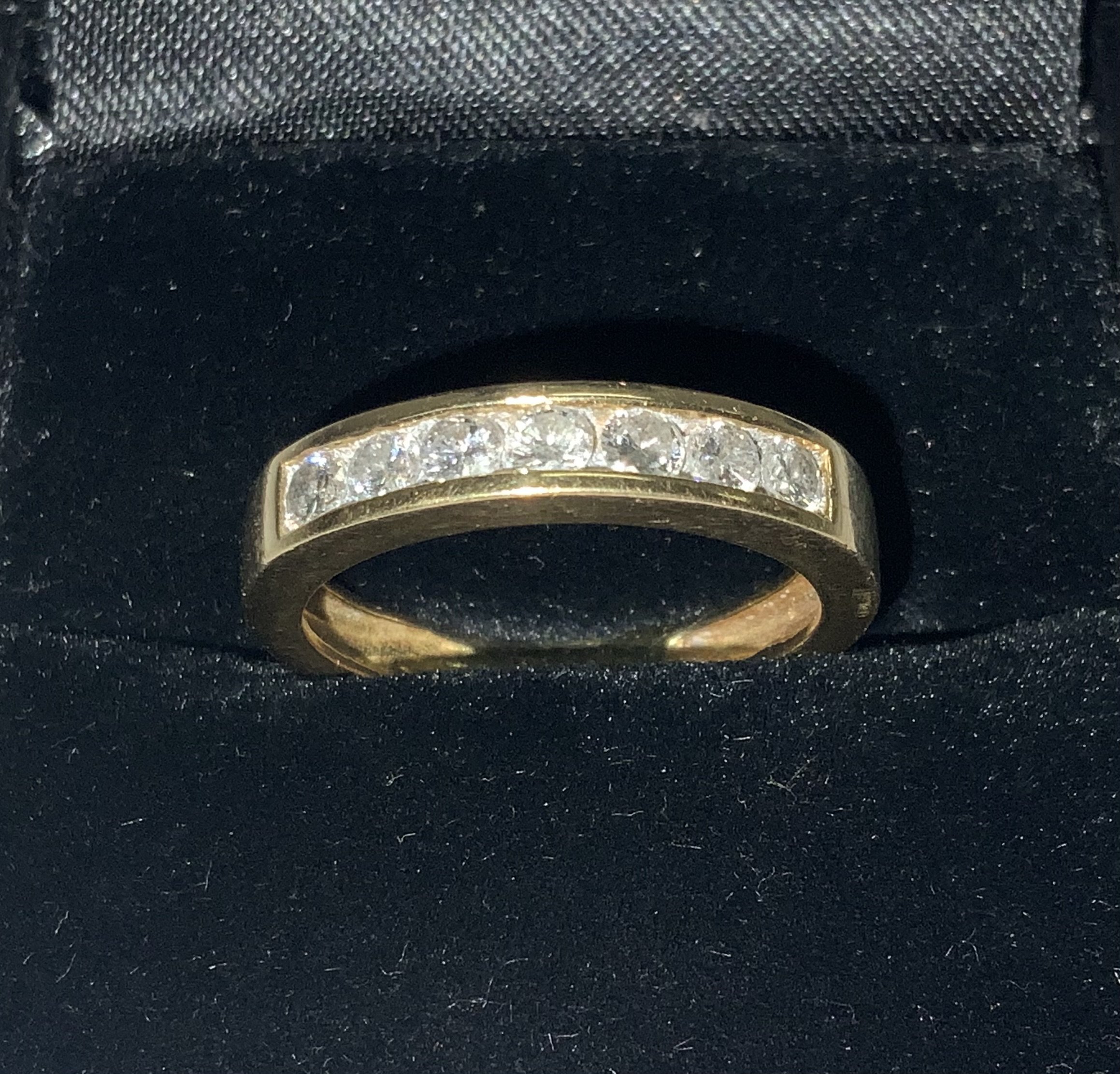 18ct gold 7 stone brilliant cut diamond ring, total 0.50ct ( A) size M.5.