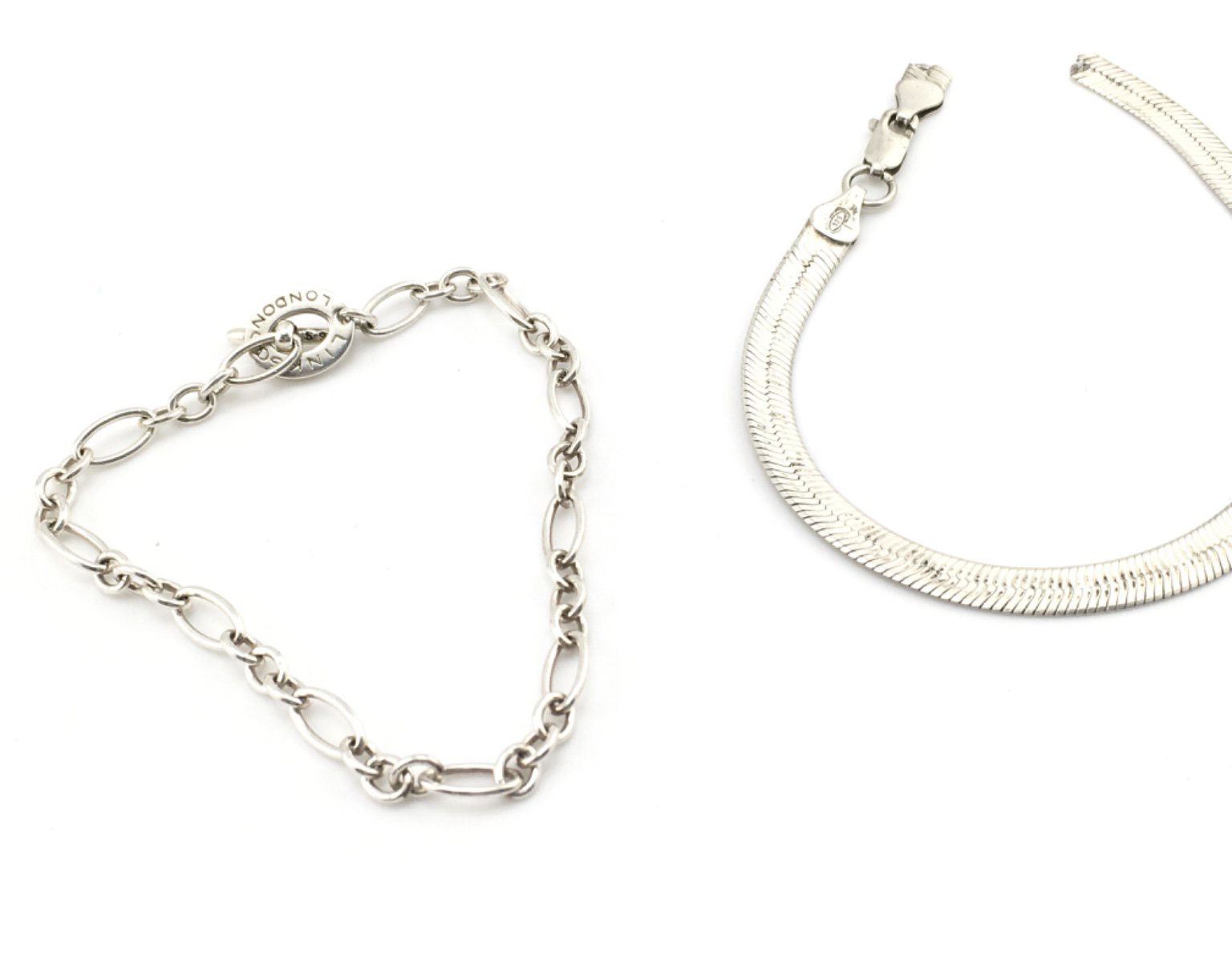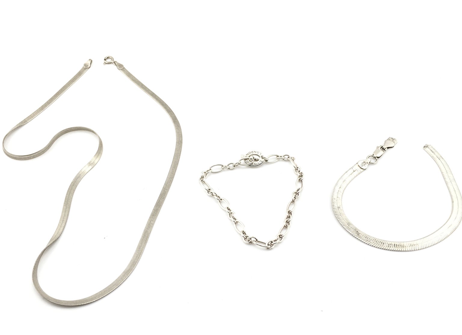 WITHDRAWN - Three silver chains including a silver links of London bracelet. Postage A. NO RESERVE