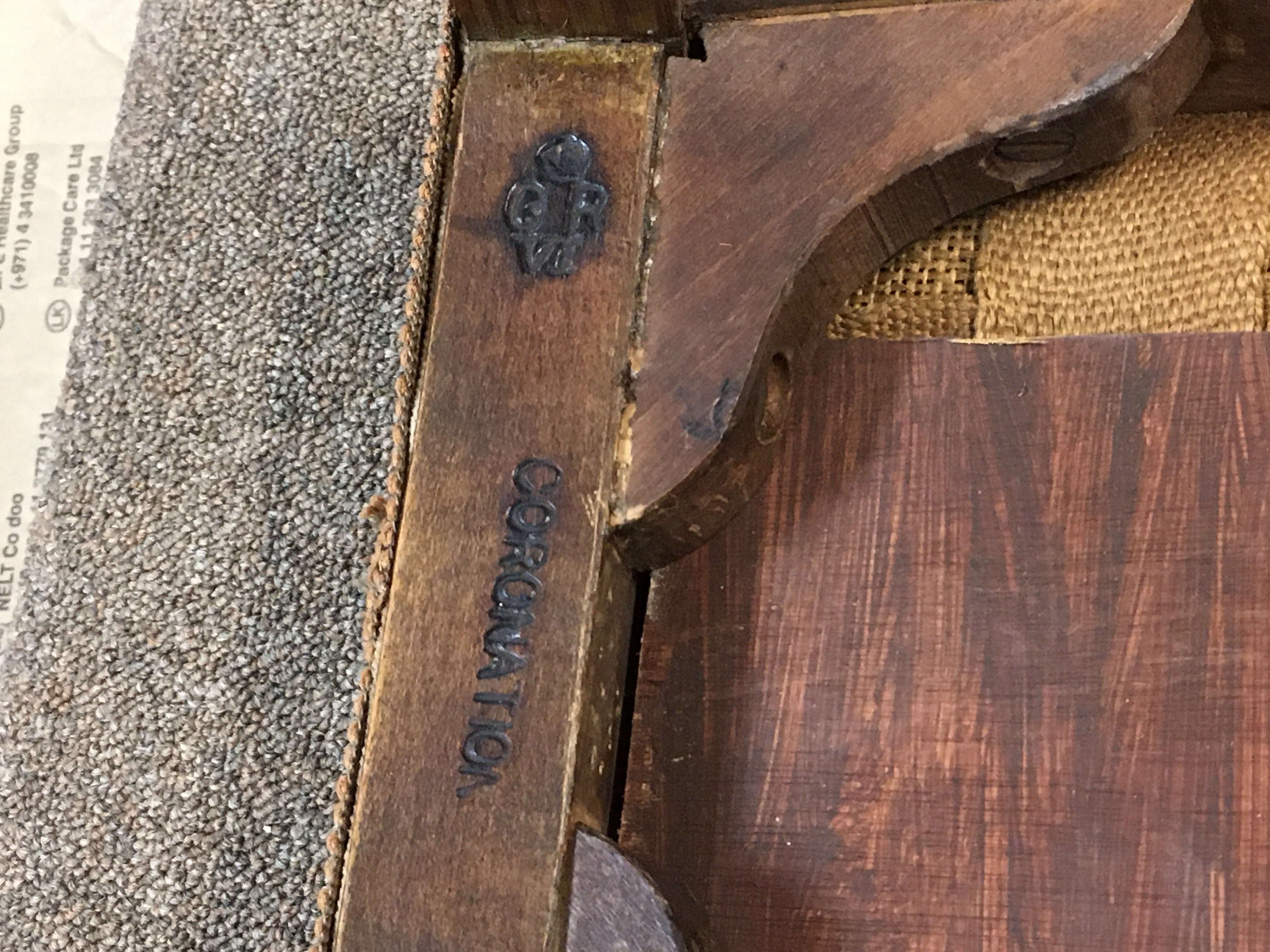 Royal interest, an Oak King George VI 1937 Coronation Stool, stamped Glenister maker Wycombe. 48cm tall.