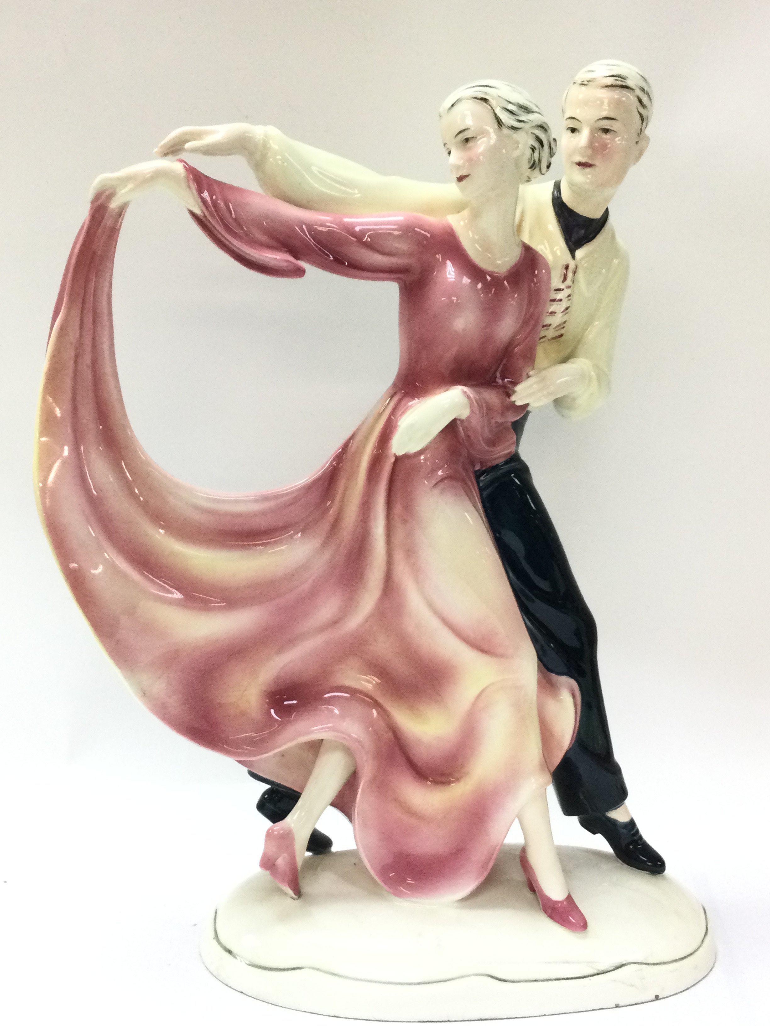 A circa 1930 Katzhutte figure group , dancing couple. 32cm tall. This lot cannot be posted