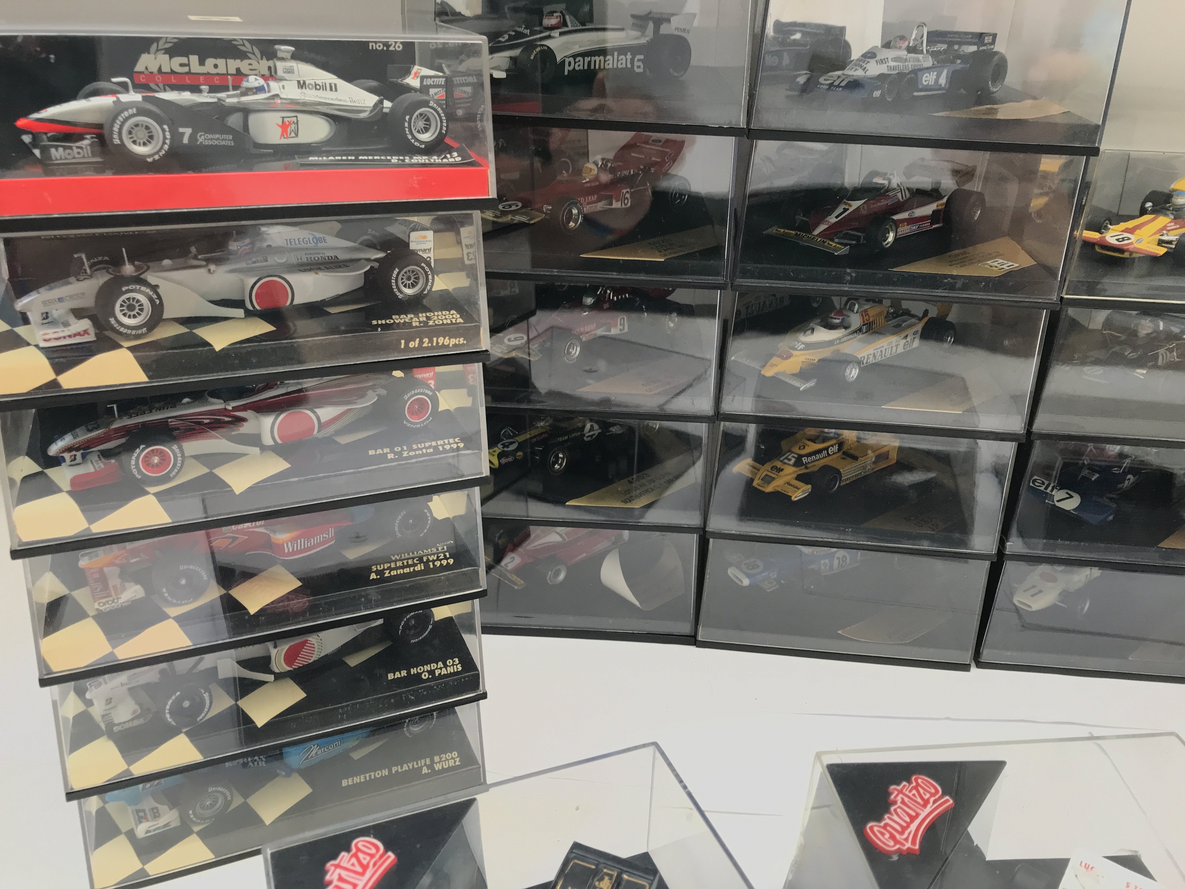 A Collection of Boxed 1/43 Scale F1 Cars including Minichamps. Onyx. Quartzo and Skid. No Reserve.