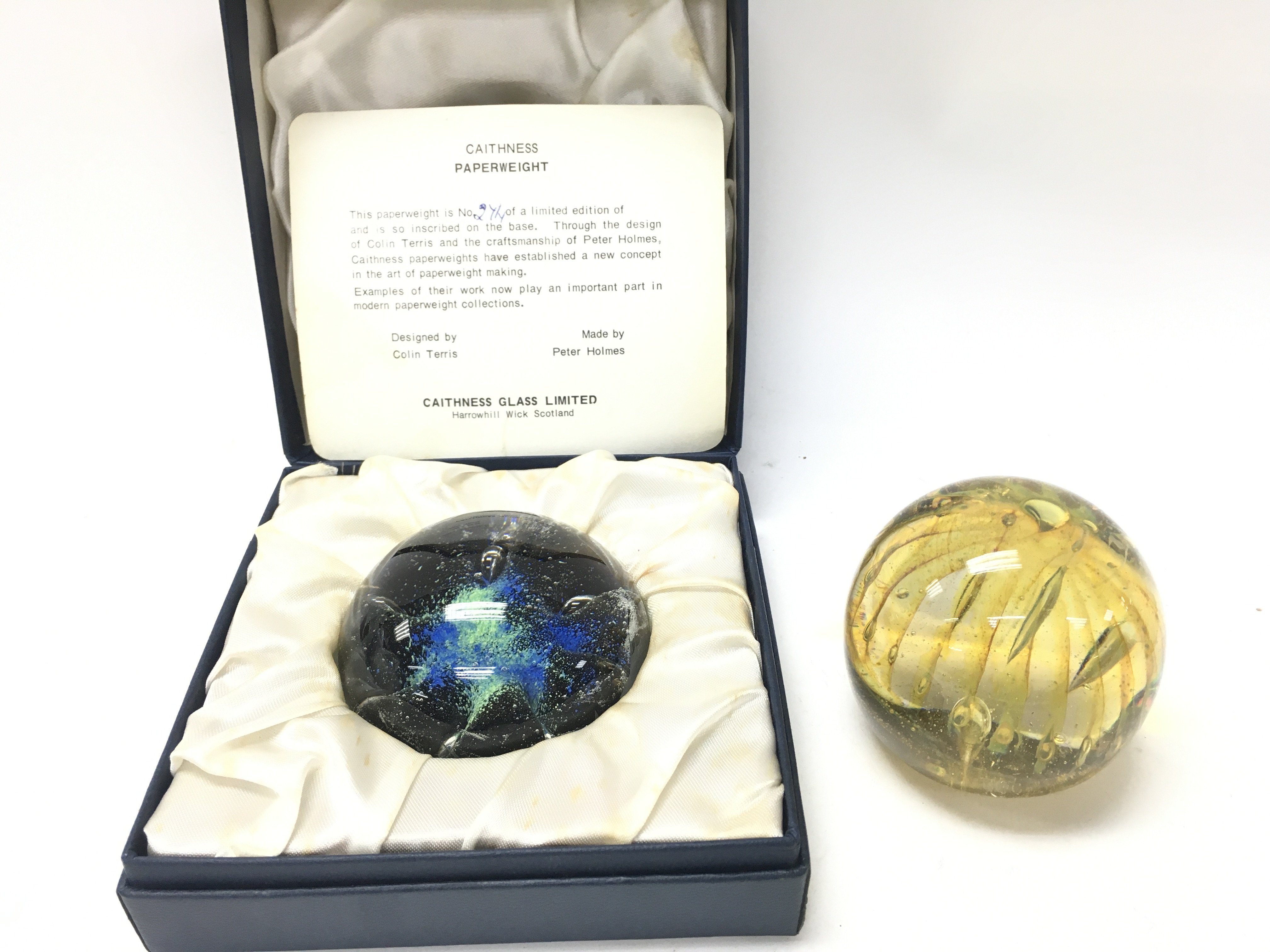 Paperweights including a limited edition boxed Caithness weight, Mdina. This lot cannot be posted