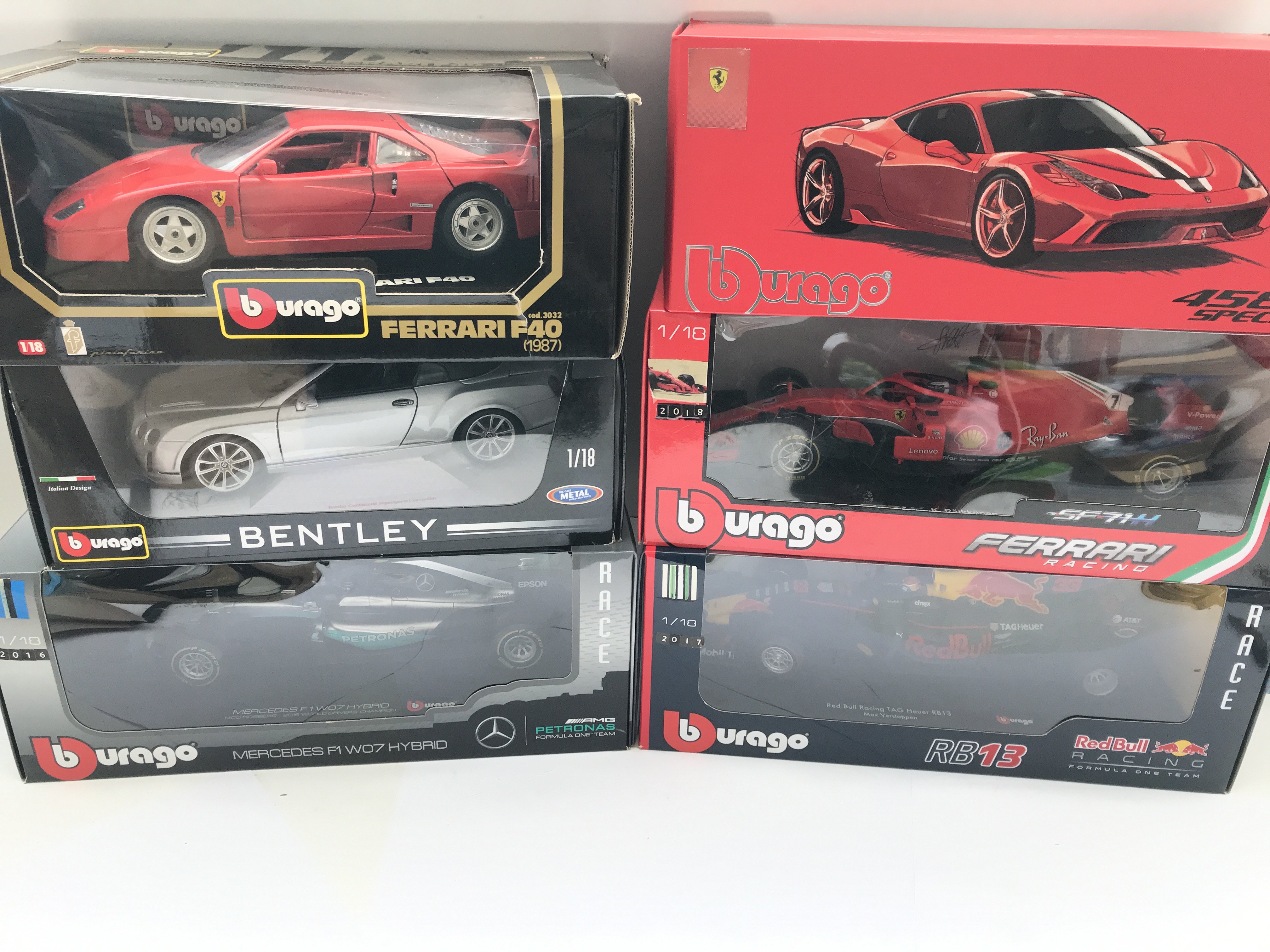 6 X Boxed 1/18 Scale Burago Diecast Vehicles. No Reserve.